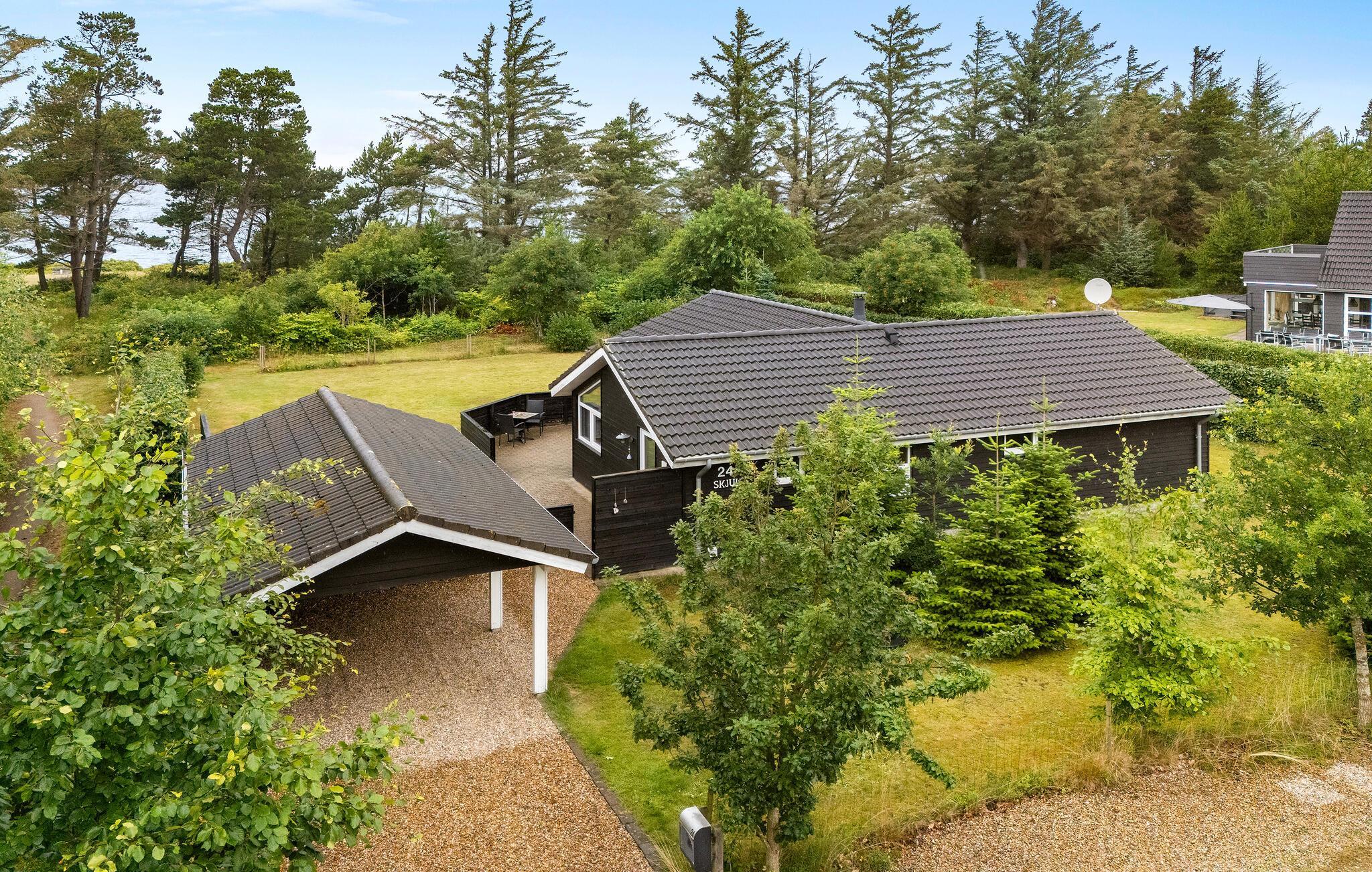 Lyst og indbydende sommerhus ved Skaven Strand med stor have, spabad og tæt på børnevenlig strand ved Ringkøbing Fjord.