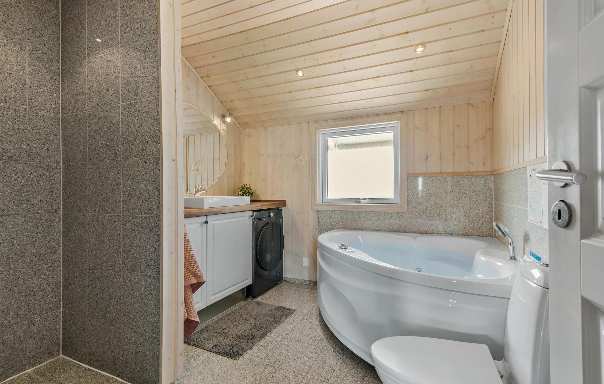 Tag den store familie eller en vennefamilie under armen og rejs til Skaven Strand, hvor I i grønne, rolige omgivelser får base i dette attraktive feriehus. Indretningen er udført med gennemtænkte planløsninger, velholdte træpaneler og store vinduespartier, der giver dejlige lysindfald til stuen og udsigt til omgivelserne. Hvis vejret viser tænder, kan I tænde op i brændeovnen og nyde godt af det åbne boligkoncept, så familiens kokke kan kræse om madlavningen, mens andre daser i stuen eller duellerer i bordfodbold eller airhockey i legerummet. Efter aftensmaden kan I sætte jer godt til rette i sofaen med snacks og en god film eller forkæle jer selv med lidt god wellness i spabadet eller saunaen.