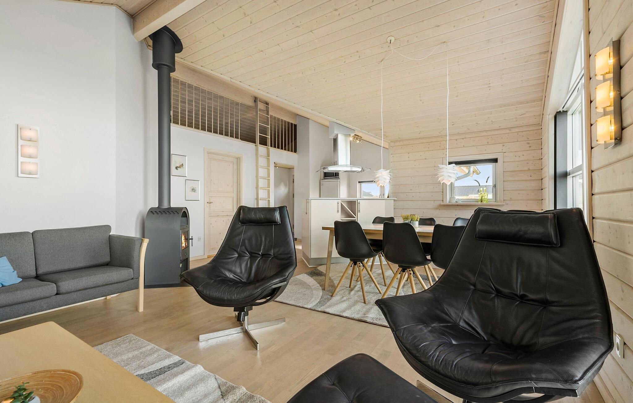 Start dagen med morgenmad i den lyse og åbne stue, hvor de store vinduer lader masser af dagslys strømme ind. Slå jer ned i de komfortable lænestole eller på sofaen, og nyd udsigten til haven eller roen fra pejsen. Det åbne køkken er som skabt til hyggelige madlavningsaftener med familien. I kan også slappe af i boblebadet og nyde den behagelige varme i den private sauna.