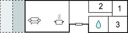 Badeværelse (nr. 1) - WC. Varmt og koldt vand. Bruser