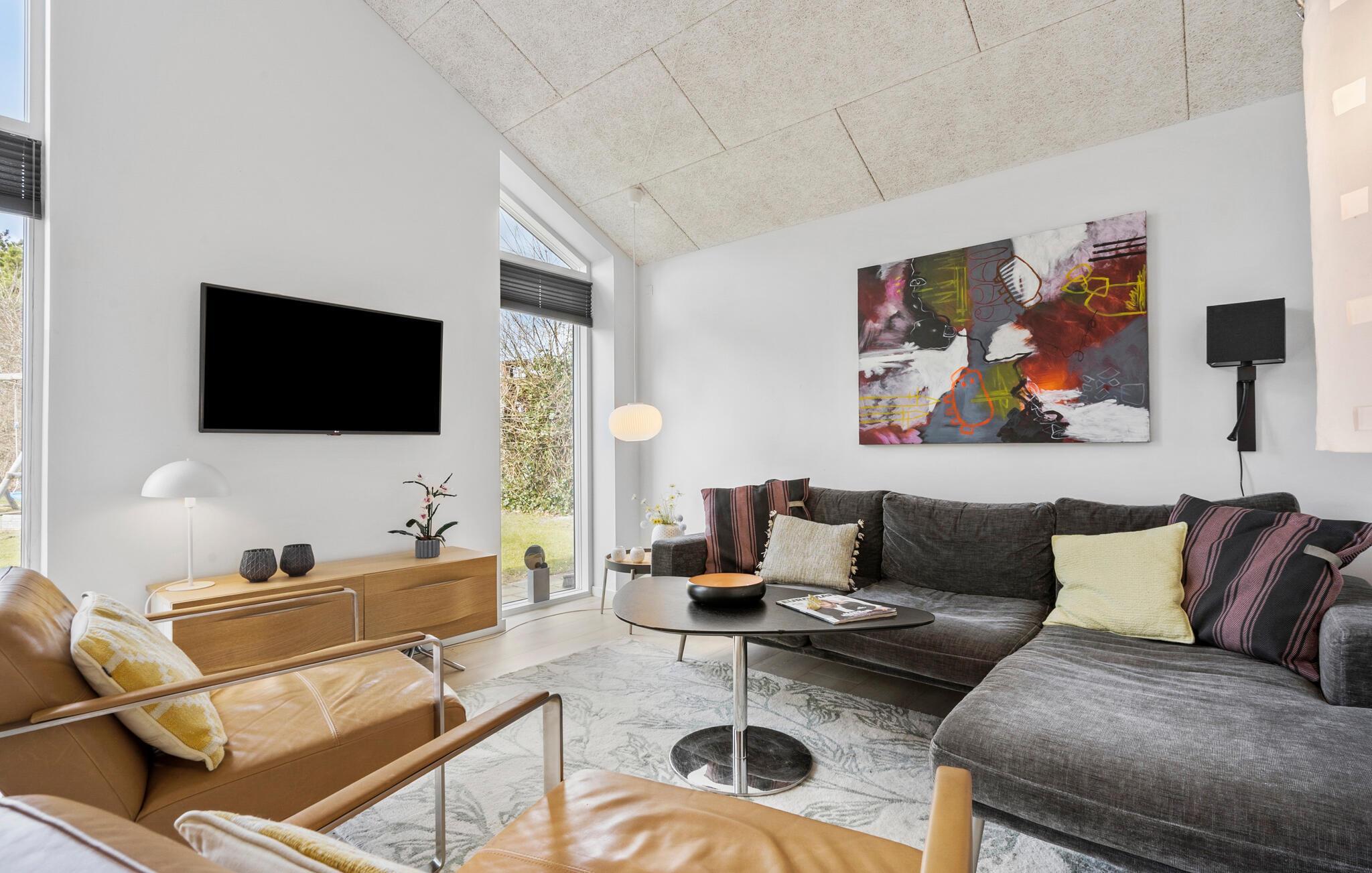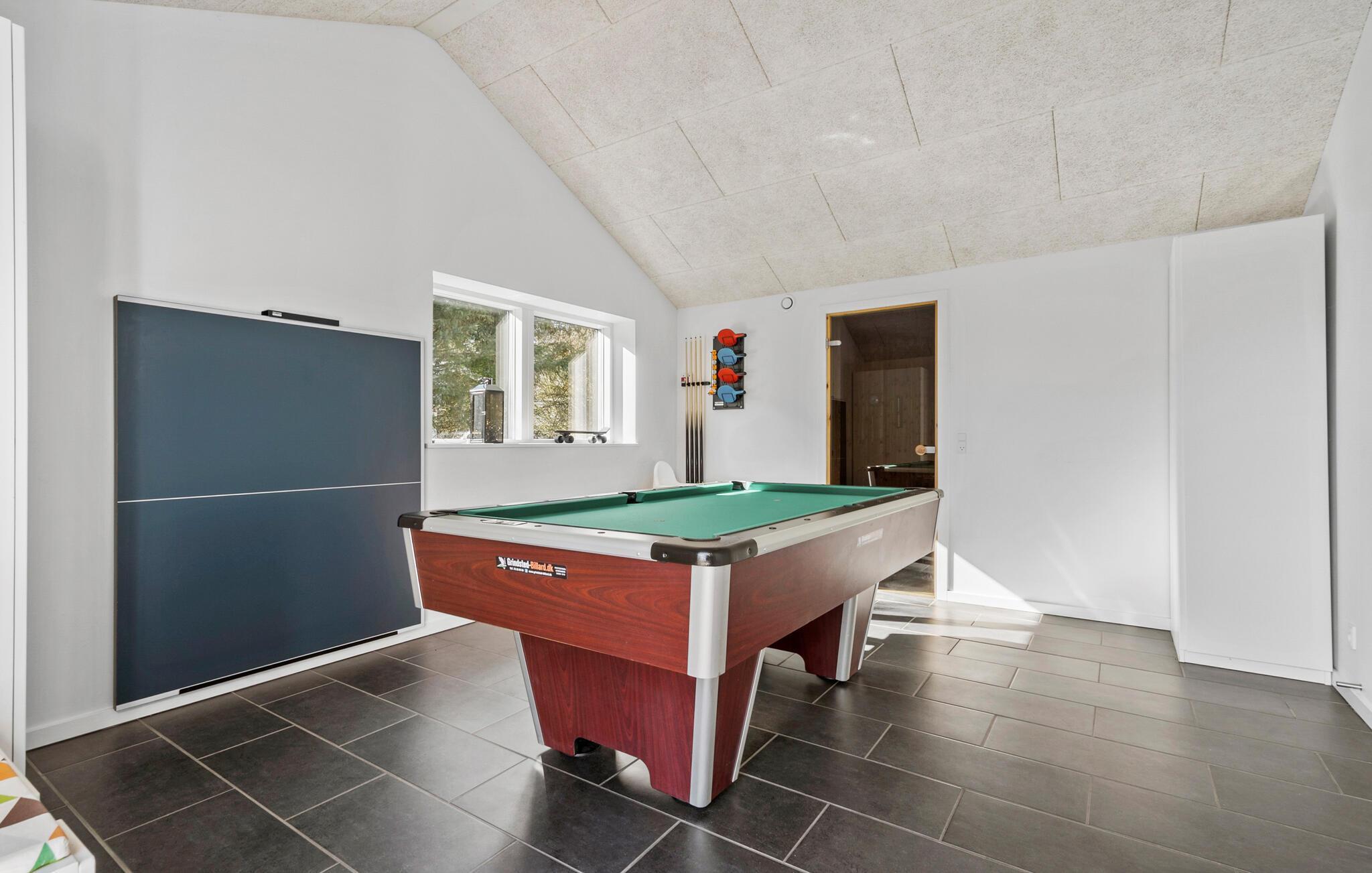 Glæd jer til et afslappende ophold i dette stilfulde sommerhus, som er ideelt til nogle afslappende dage. Brug tiden sammen på at lave mad i det åbne køkken og tilbered lækre retter, som I kan nyde rundt om spisebordet i den lyse opholdsstue. De store vinduesfronter skaber en lys atmosfære og giver en smuk udsigt over haven. Find jer godt til rette i sofahjørnet og slut dagen med afslapning. Eller snup et spil pool på forhånd. Saunaen og spabadet på badeværelset lover ren afslapning.