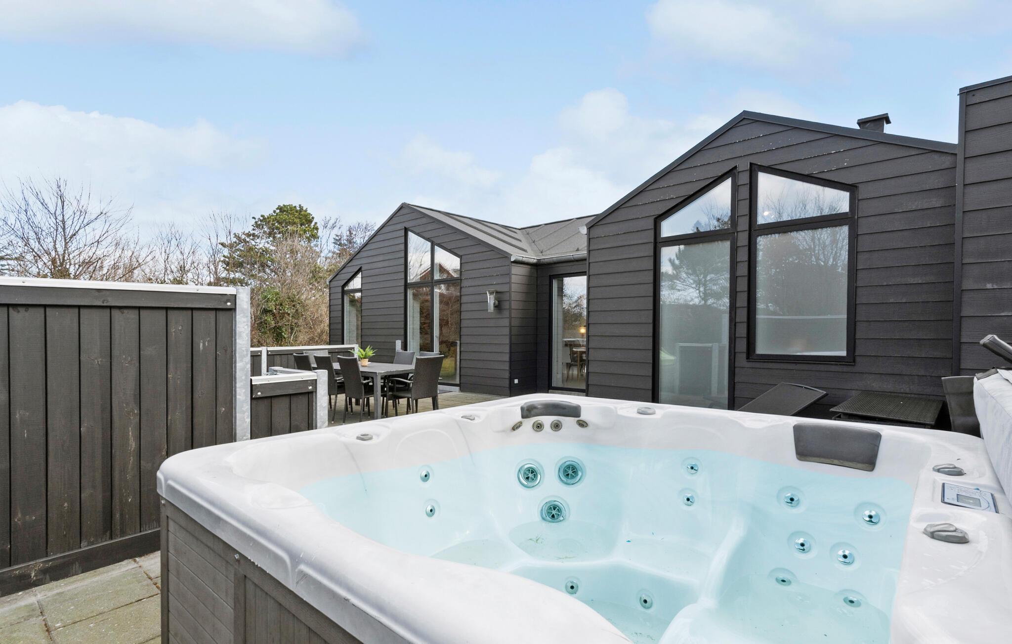 Oplev et stilfuldt sommerhus ved Skaven Strand med spa, sauna og smuk natur tæt på fjorden.