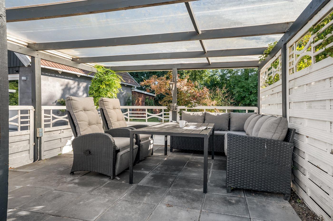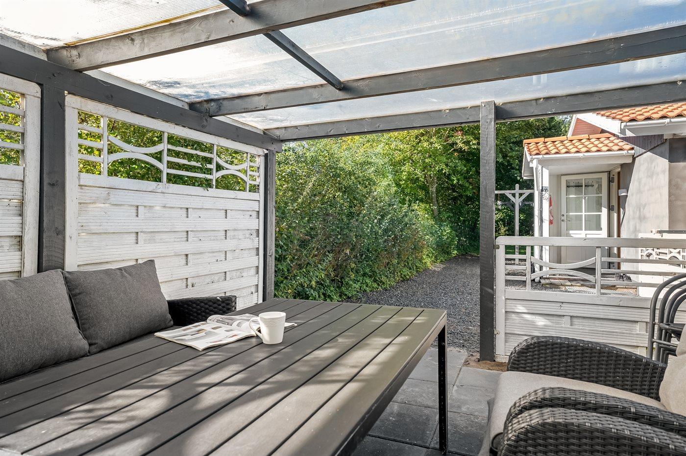 Hyggeligt sommerhus i 2. række ved Skaverup strand med stor have og overdækket terrasse.
