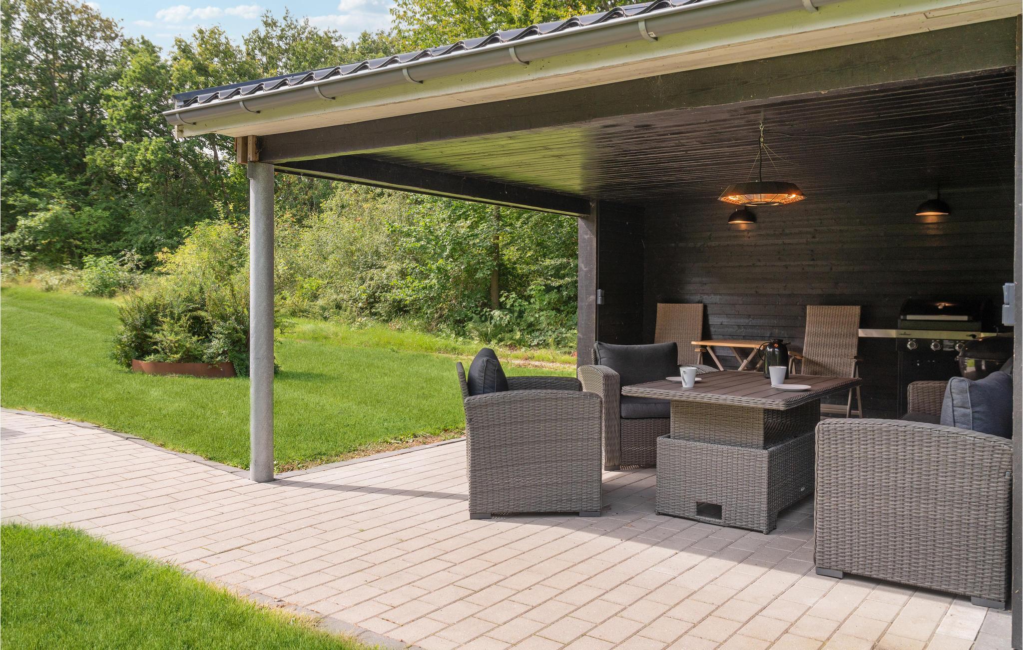 Træd ud på den delvist overdækkede terrasse og mærk roen sænke sig. Her kan I være helt tæt på naturen mens I nyder morgenkaffen og en god bog, eller I kan samle familien til hyggelige grillmiddage på de lune sommeraftener.