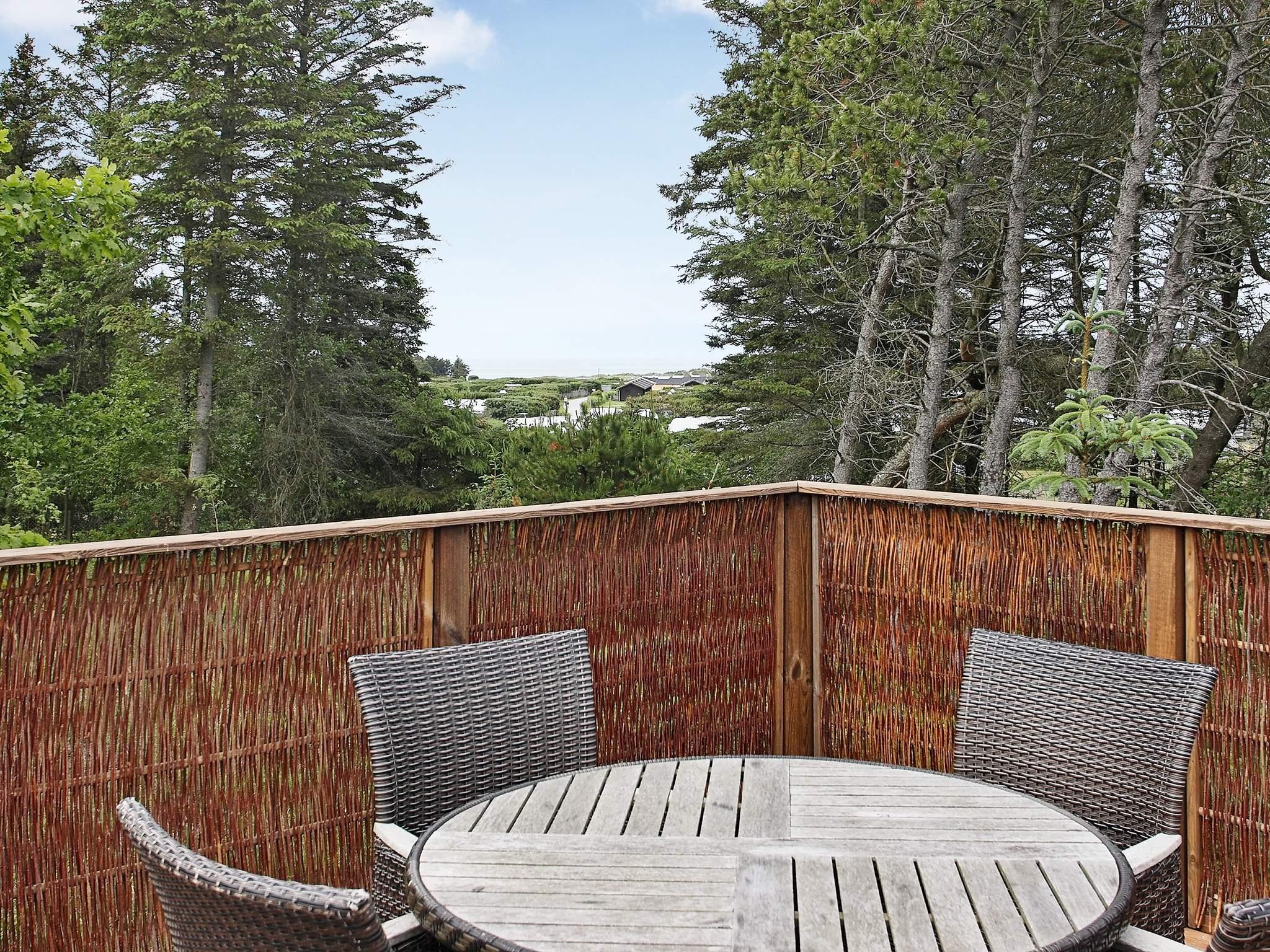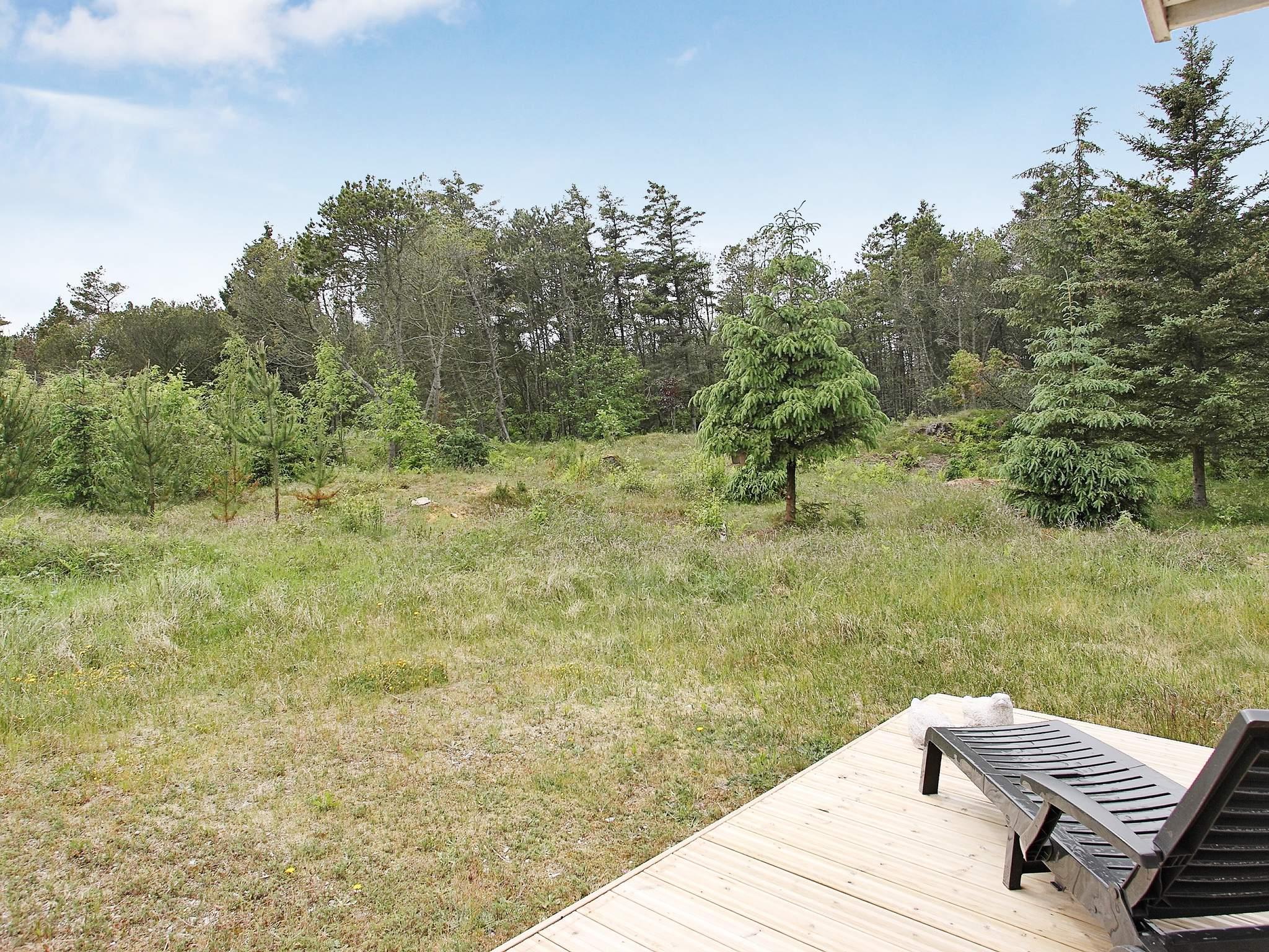 Midt på en stor, ugenert naturgrund for enden af en blind vej finder I dette unikke sommerhus. Ude på grunden går en lille trappe op til en terrasse hvor I kan sidde og nyde havudsigten over Vesterhavet. Terrasse rundt om huset sådan I kan følge solen dagen lang, evt. på en af husets 4 solvogne. God ruminddeling med værelser (2 med lille havkig) i hver ende og 2 badeværelser med wc. Køkken/alrum med stor opholdsstue og udsigt til naturen. Der er varmepumpe/aircondition. For enden af grunden er der 8500 m² fælles areal med sti til stranden. Der er carport og 3 P-pladser. På campingpladsen i nærheden er der swimmingpool, legeplads, keglespil, fodbold og fitnesscenter. I vinterhalvåret er der 10 km til restaurant og købmand. I sommerhalvåret er der ca. 400 m til købmand og restaurant.