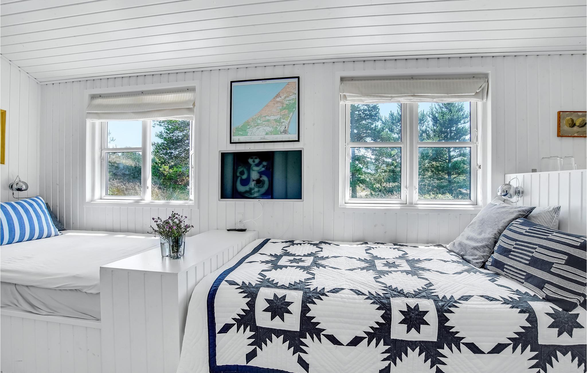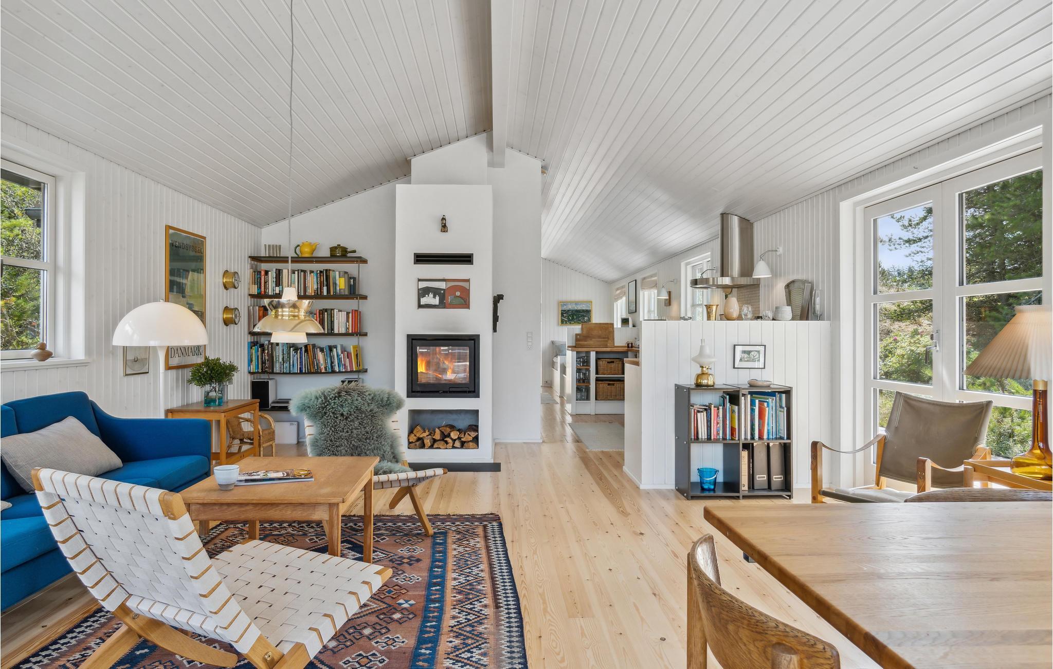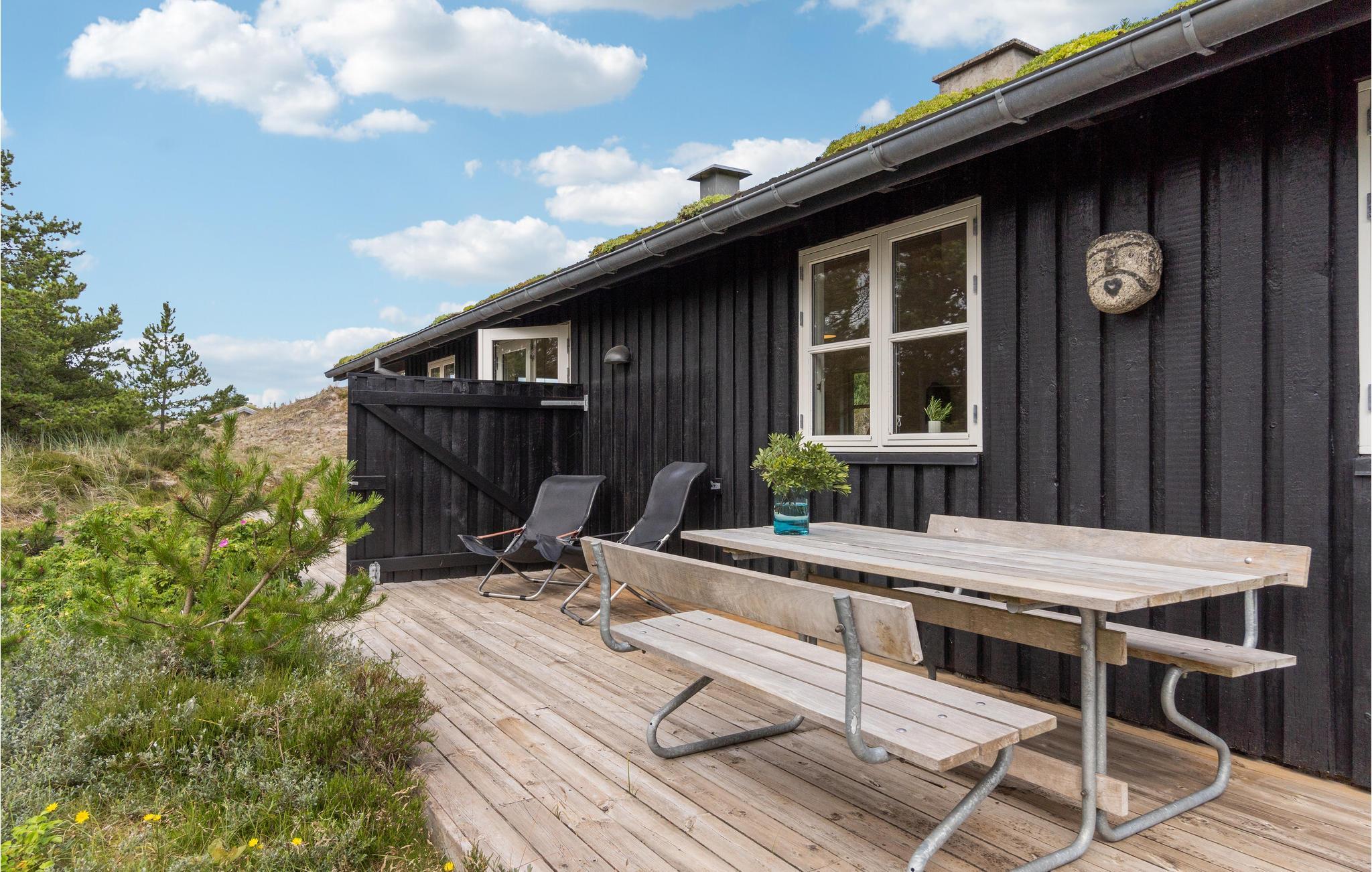 Dette arkitekttegnede sommerhus er gennemrenoveret og udbygget. Det ligger ugenert på en fantastisk klitgrund i Skiverens ældste udstykning. Rundt om huset findes der terrasser med gode læ- og solkroge. Gå op på en af klittoppene på grunden og nyd den storslåede udsigt over Vesterhavet. Sommerhuset har en dejlig stor og lys stue med brændeovn/pejs, lamper og møbler i godt dansk design. Den øvrige del af huset er ligeledes smagfuldt indrettet. Huset har smart TV og Boxer TV med de danske samt en norsk, en svendk og tysk ZDF kanal. Den fantastiske sandstrand indbyder på alle årstider til afslappende gåture langs det altid fascinerende Vesterhav.
