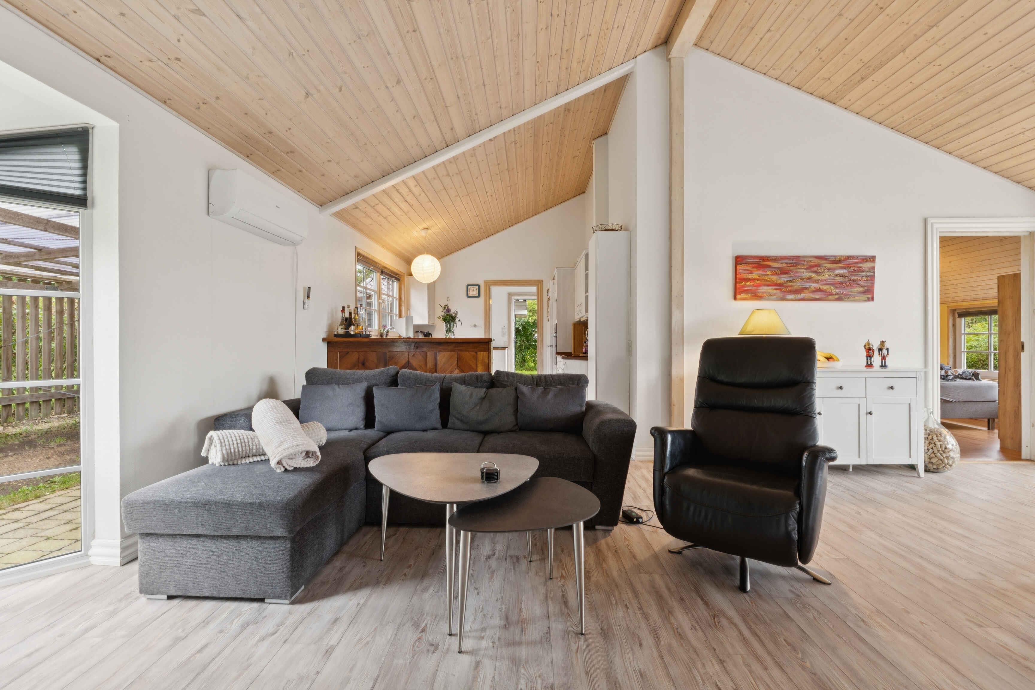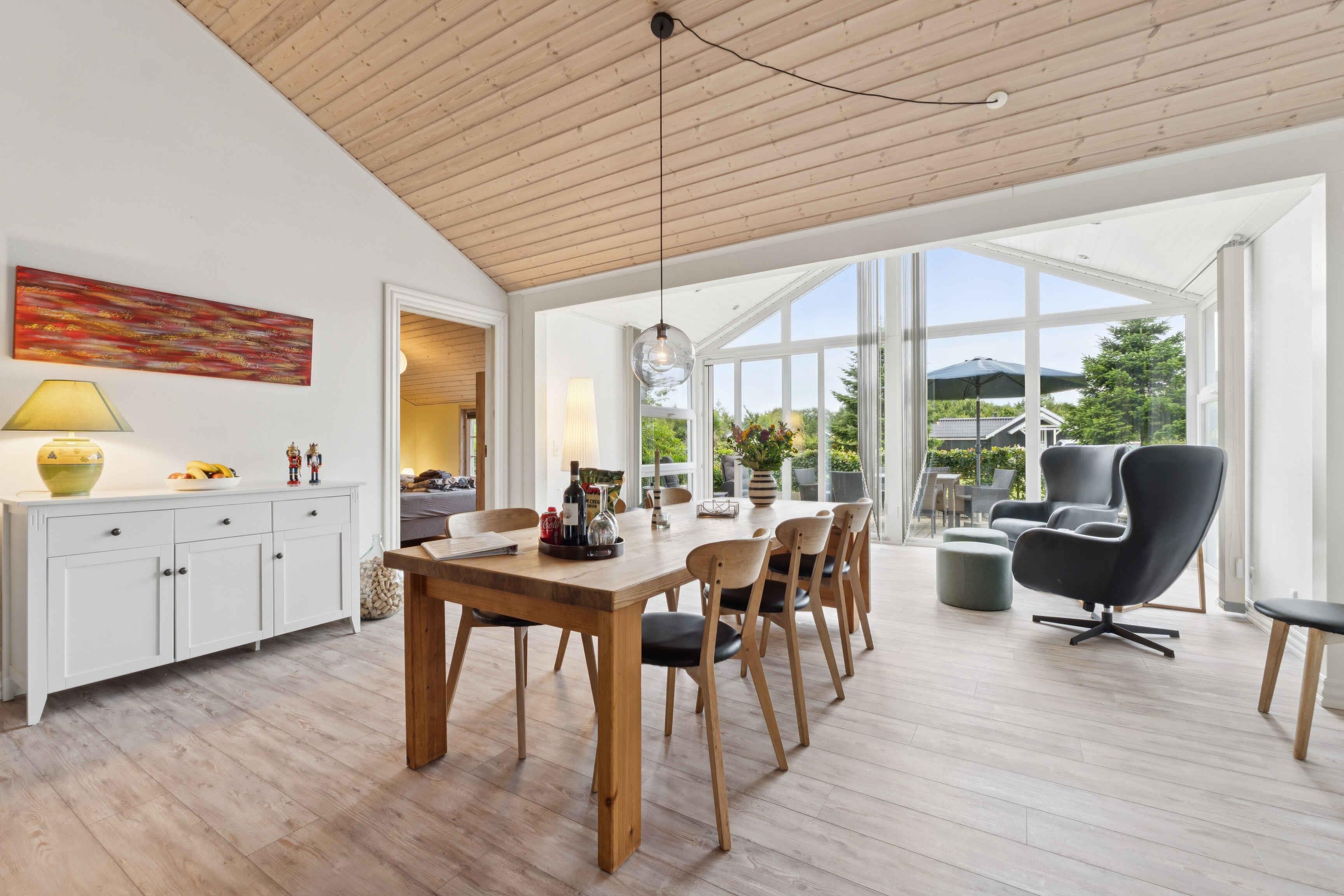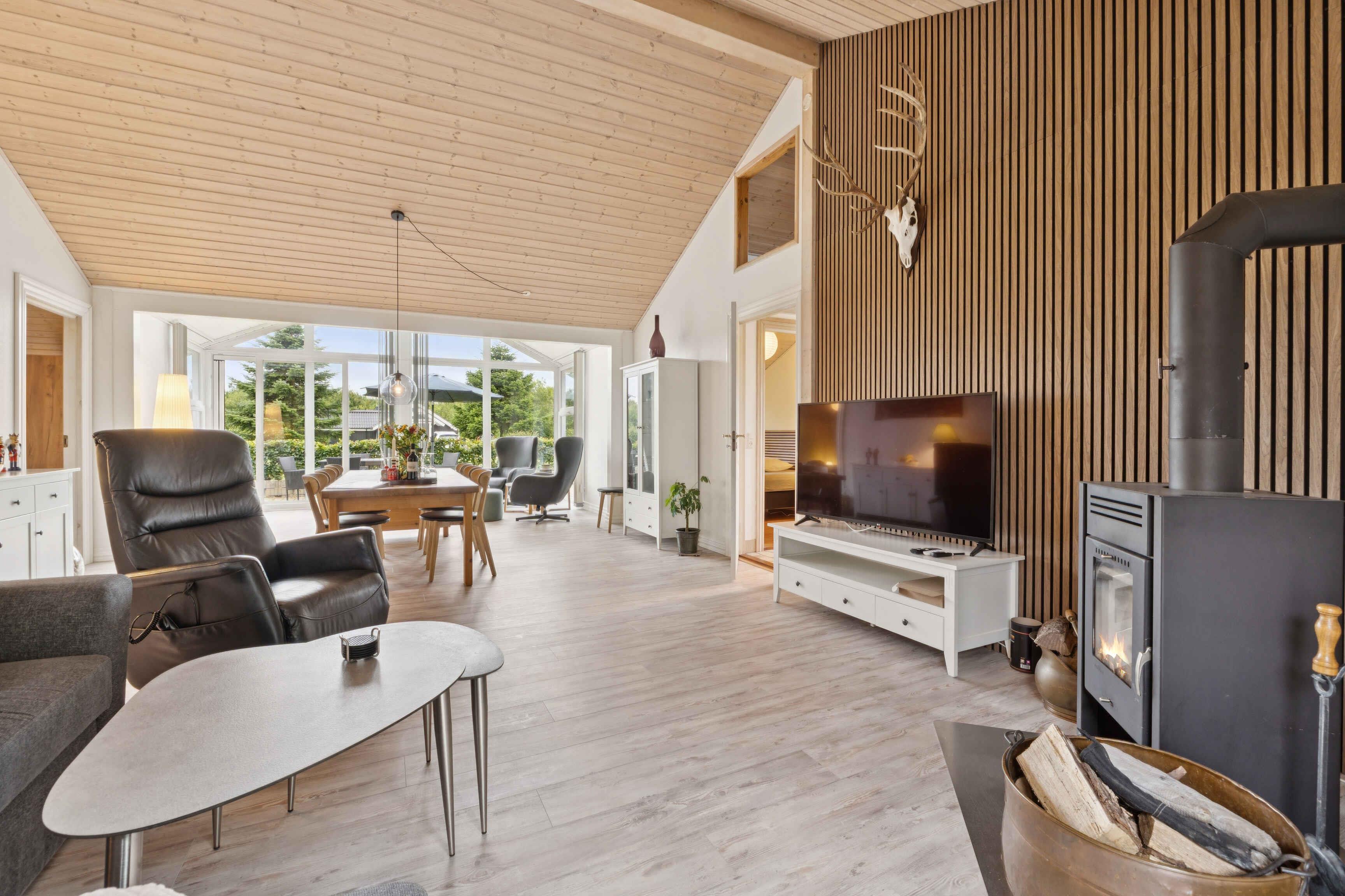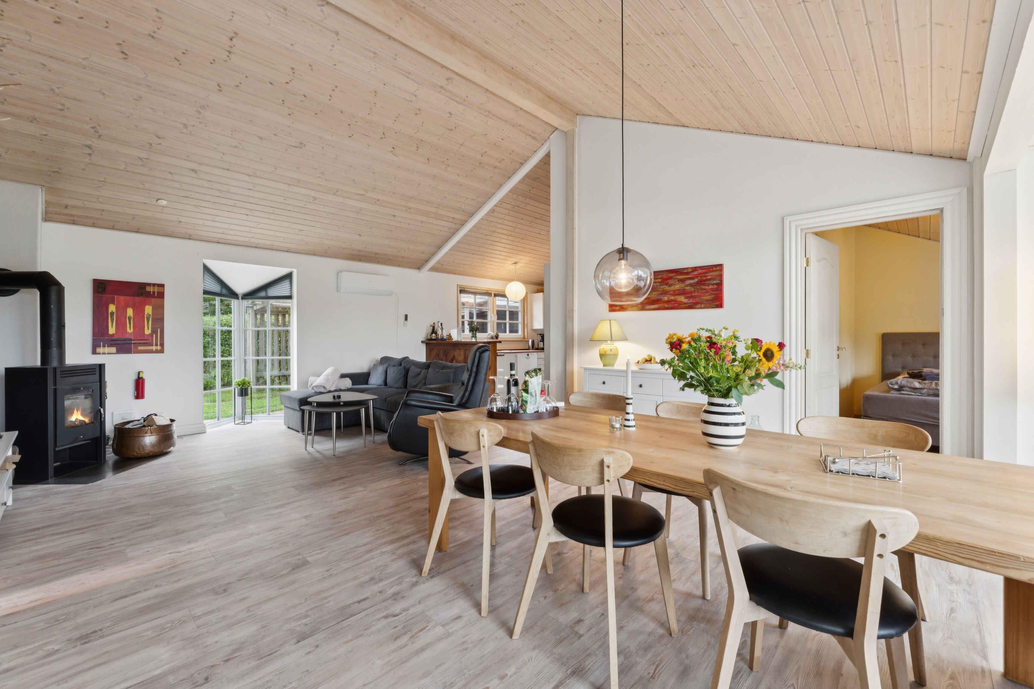 Indbydende feriehus med spabad Tæt på Ringkøbing Fjord ligger dette dejlige træhus, som byder jer velkommen til en skøn ferie. Interiøret er lyst med mange vinduer og smukke detaljer af træ, som skaber en hyggelig stemning indenfor. Værelserne gør et godt indtryk og indbyder til mange afslappende eller selskabelige timer. Tilbring hyggelige aftener med brætspil og tænd op i brændeovnen efter en kølig dag med en gåtur i den friske vind. På terrassen står havemøbler og en grill klar til de lange sommeraftener. Lad børnene og jeres kære, firbenede venner boltre sig på grunden, mens I tilbereder et sommermåltid i det fri. Ringkøbing Fjord byder på gode muligheder for badning og hyggelige vandreture langs vandet. Lystfiskere finder også gode muligheder her eller kan tage en tur til den populære Skjern Å. I Stauning finder I butikker, restauranter og et destilleri. Ringkøbing ligger i nærheden og inviterer med sine hyggelige gader, caféer og restauranter og sit gode udvalg af butikker op til et besøg. En tur ud til det brusende, smukke Vesterhav er også helt oplagt. Glæd jer til en skøn ferie tæt på vandet!