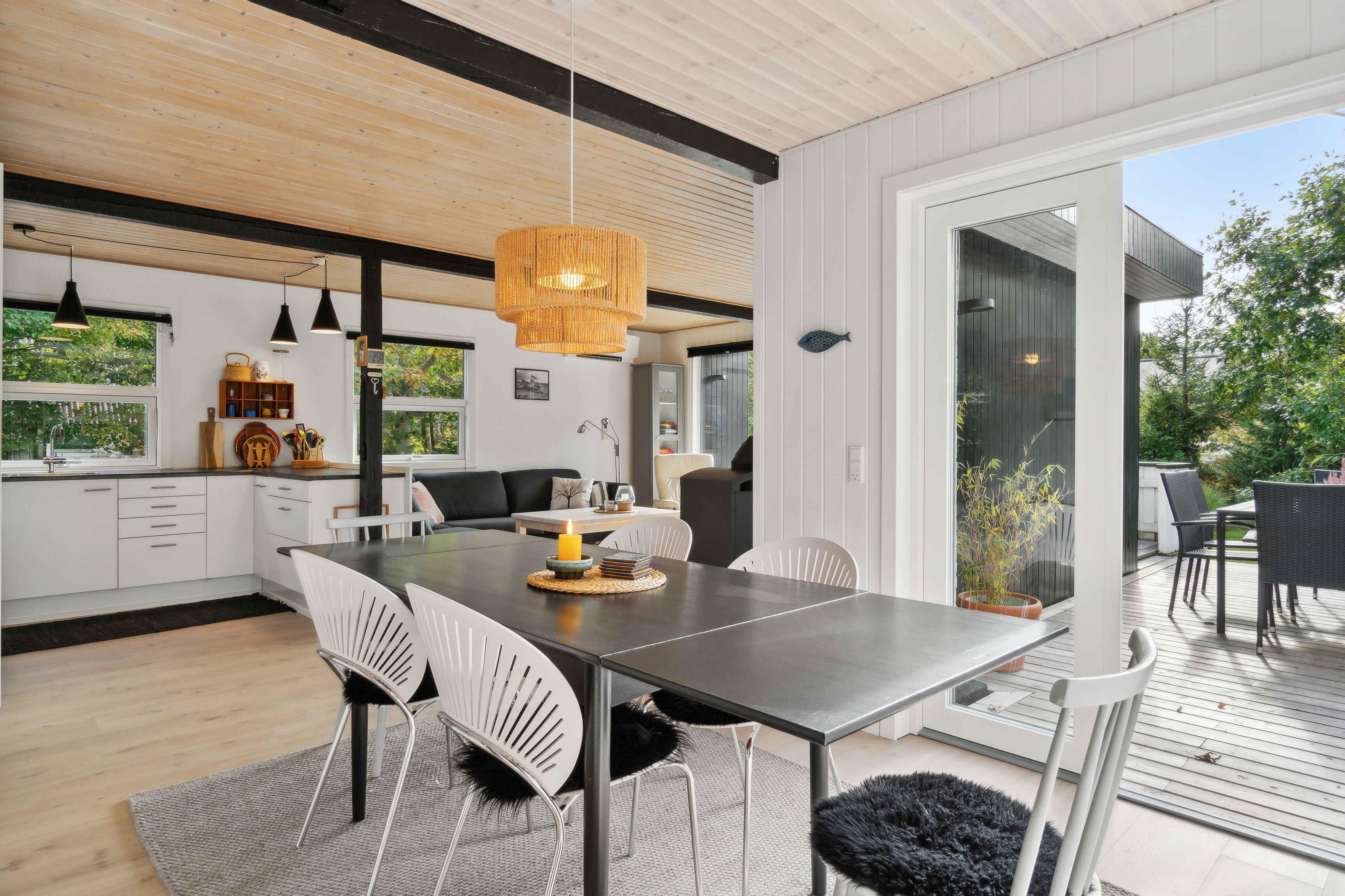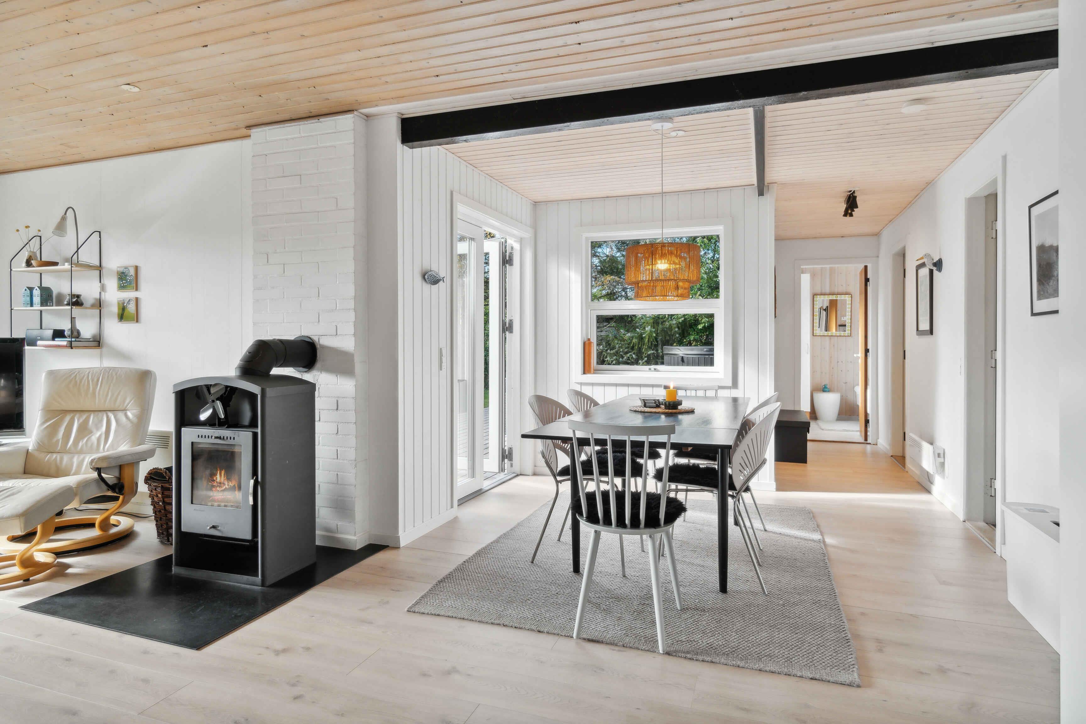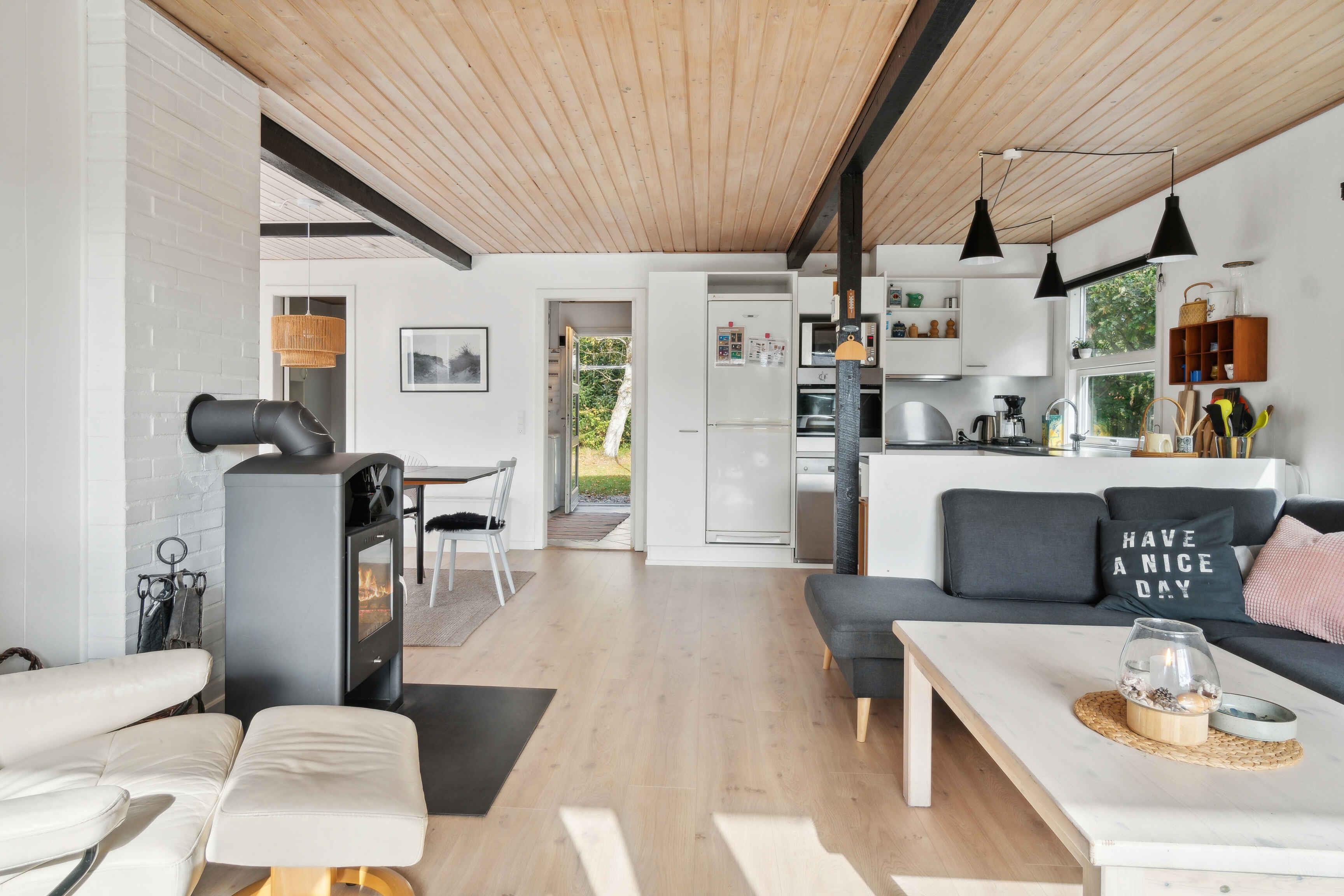 Nyd ferien i et charmerende sommerhus kun 200 meter fra Ringkøbing Fjord. Huset er gennemrenoveret og indrettet med moderne kvalitetsmaterialer, der giver en behagelig atmosfære under hele opholdet. Sommerhuset har tre soveværelser med dobbeltsenge og skabsplads, samt en weekendseng, hvilket gør det perfekt til familier eller venner, der ønsker en afslappende ferie. Opholdsstuen er udstyret med brændeovn, stereoanlæg, Chromecast og Apple TV, hvilket giver gode muligheder for afslapning foran skærmen eller ved ilden. I køkkenet finder I alt, hvad I behøver: el-komfur, opvaskemaskine, kaffemaskine og mere. Det åbne køkken-alrum skaber en social atmosfære, ideel til fælles madlavning. Badeværelset byder på gulvvarme, bruser og håndvask, så komforten er i top efter en dag i naturen. Der er også en praktisk vaskemaskine i bryggerset. Udendørs kan I nyde solen på den rummelige træterrasse, udstyret med havemøbler og kulgrill. Grunden er på over 1000 m², hvilket giver plads til leg og afslapning i de grønne omgivelser. Området omkring huset byder på skønne naturoplevelser med nærhed til fjorden, der er oplagt til vandsport eller afslappede gåture langs kysten. Stauning og Ringkøbing Fjord er kendt for deres rolige atmosfære og er ideelle til cykel- og vandreture. Dette sommerhus er det perfekte valg til en ferie fyldt med både afslapning og oplevelser i naturen.