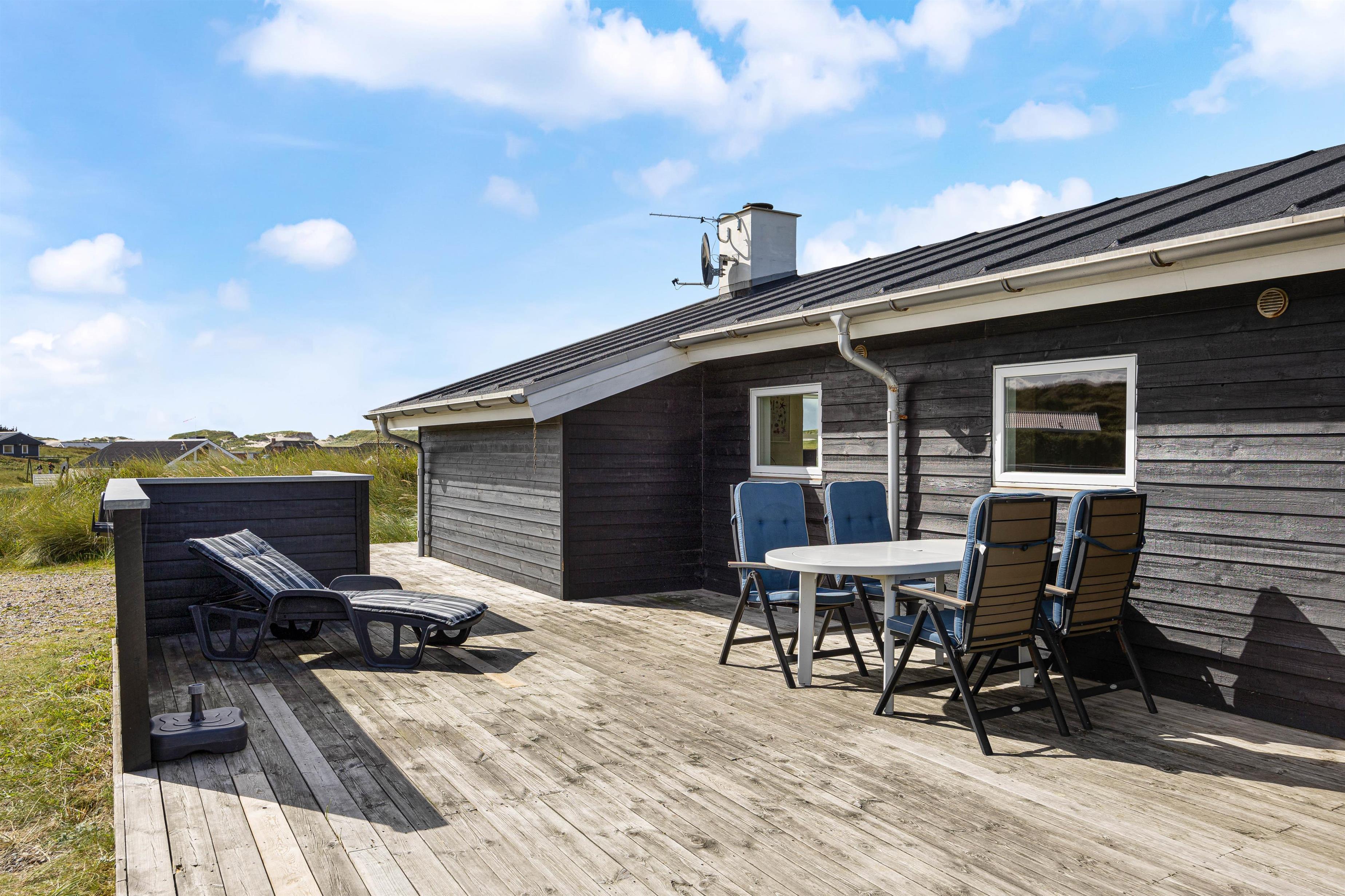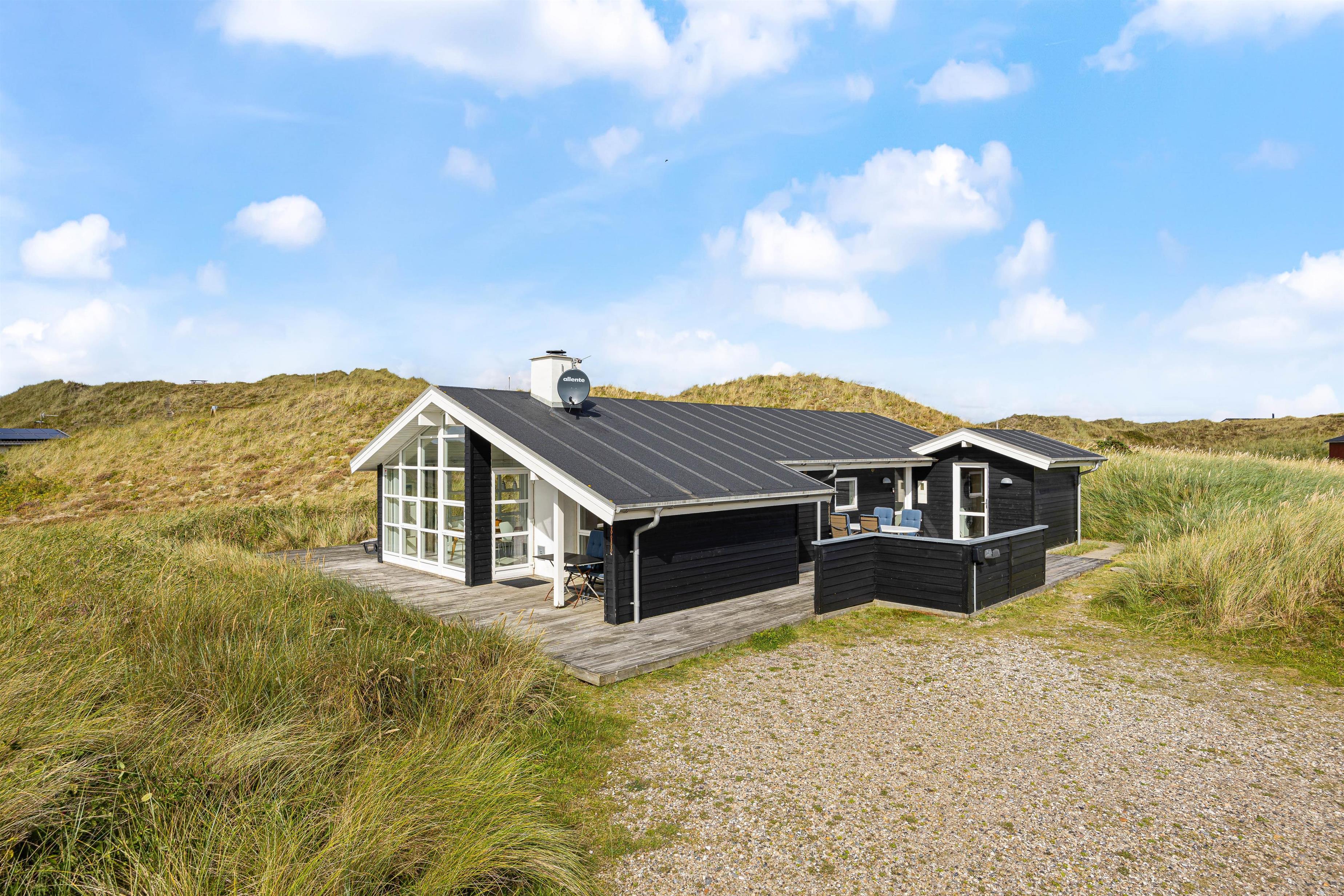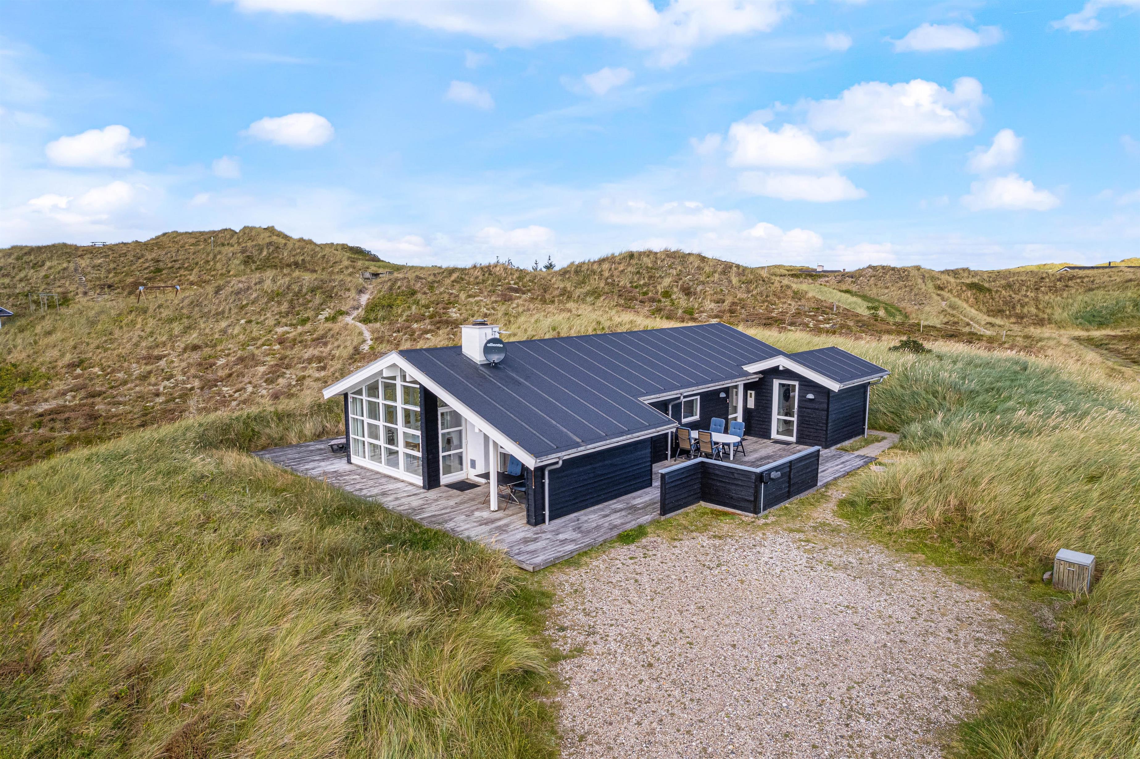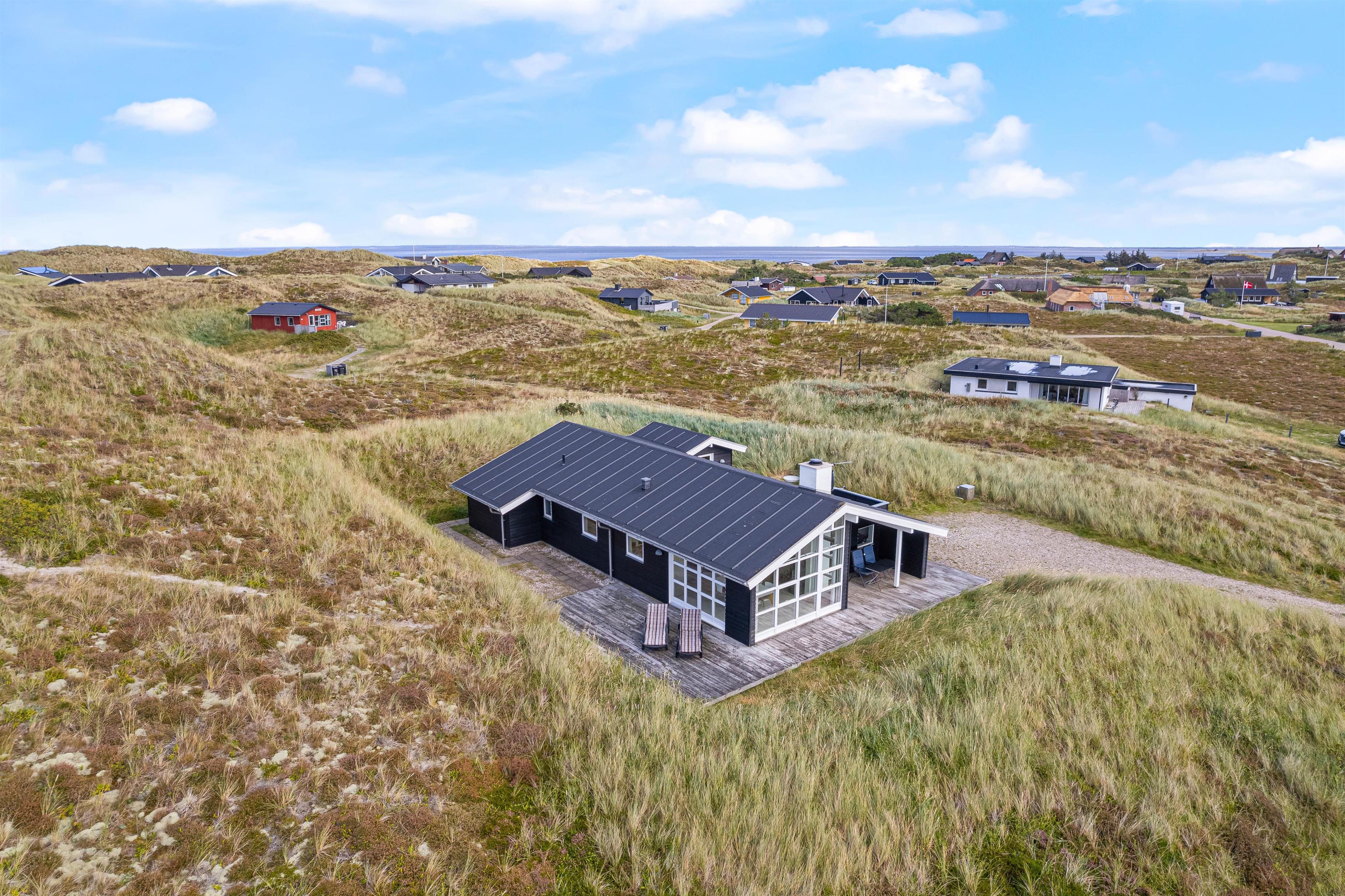 Sommerhuset ligger kun 400 meter fra Vesterhavet, hvilket giver jer nem adgang til skønne stranddage. Med panoramaudsigt over det omkringliggende landskab, vil I føle jer helt tæt på naturen. Den store grund på godt 2700 m2 giver god plads til udendørs aktiviteter og hyggelige stunder med familien. Om aftenen kan I samles ved grillen og nyde et måltid på den overdækkede terrasse.