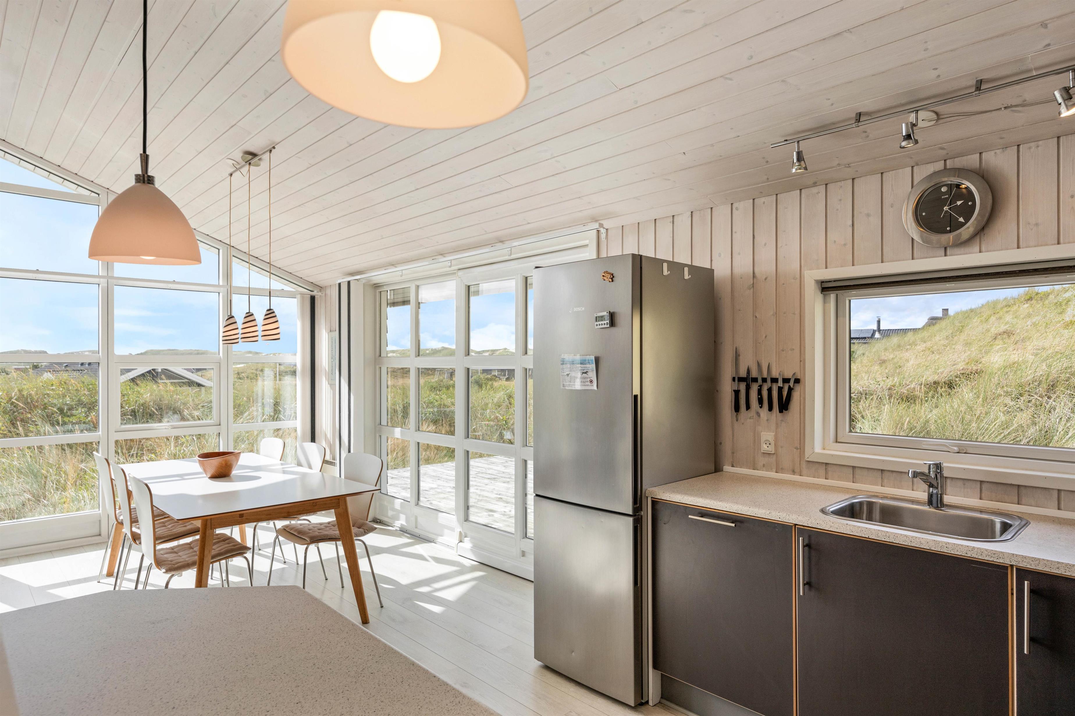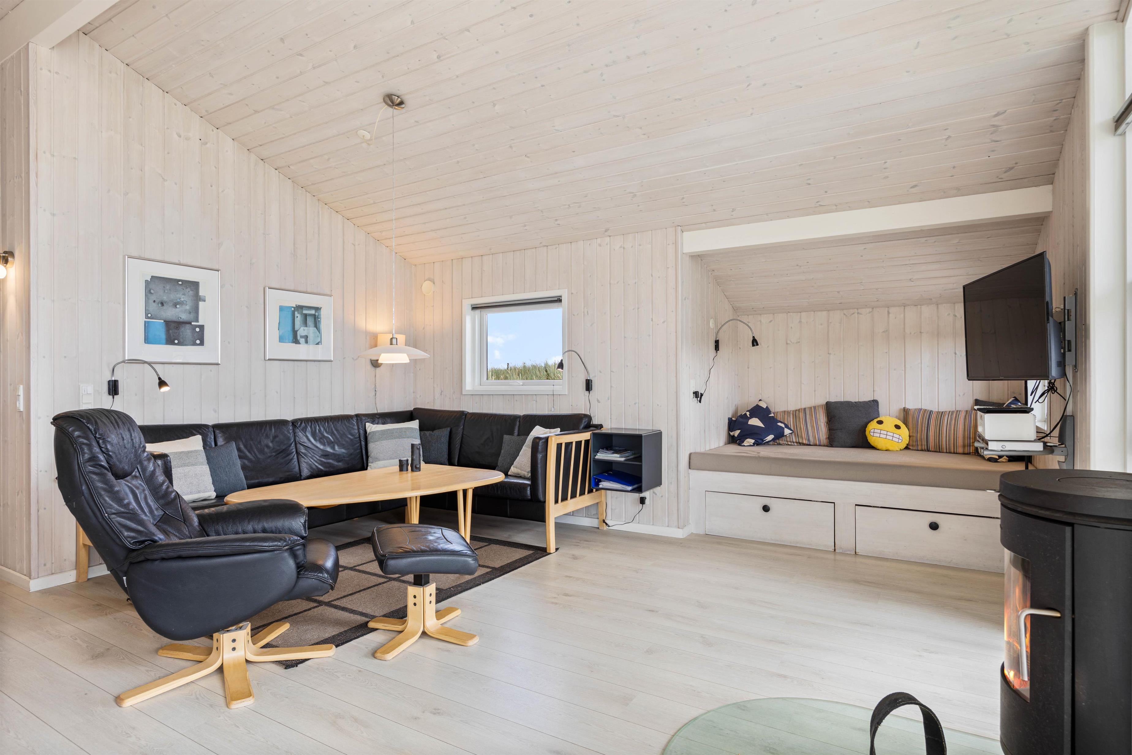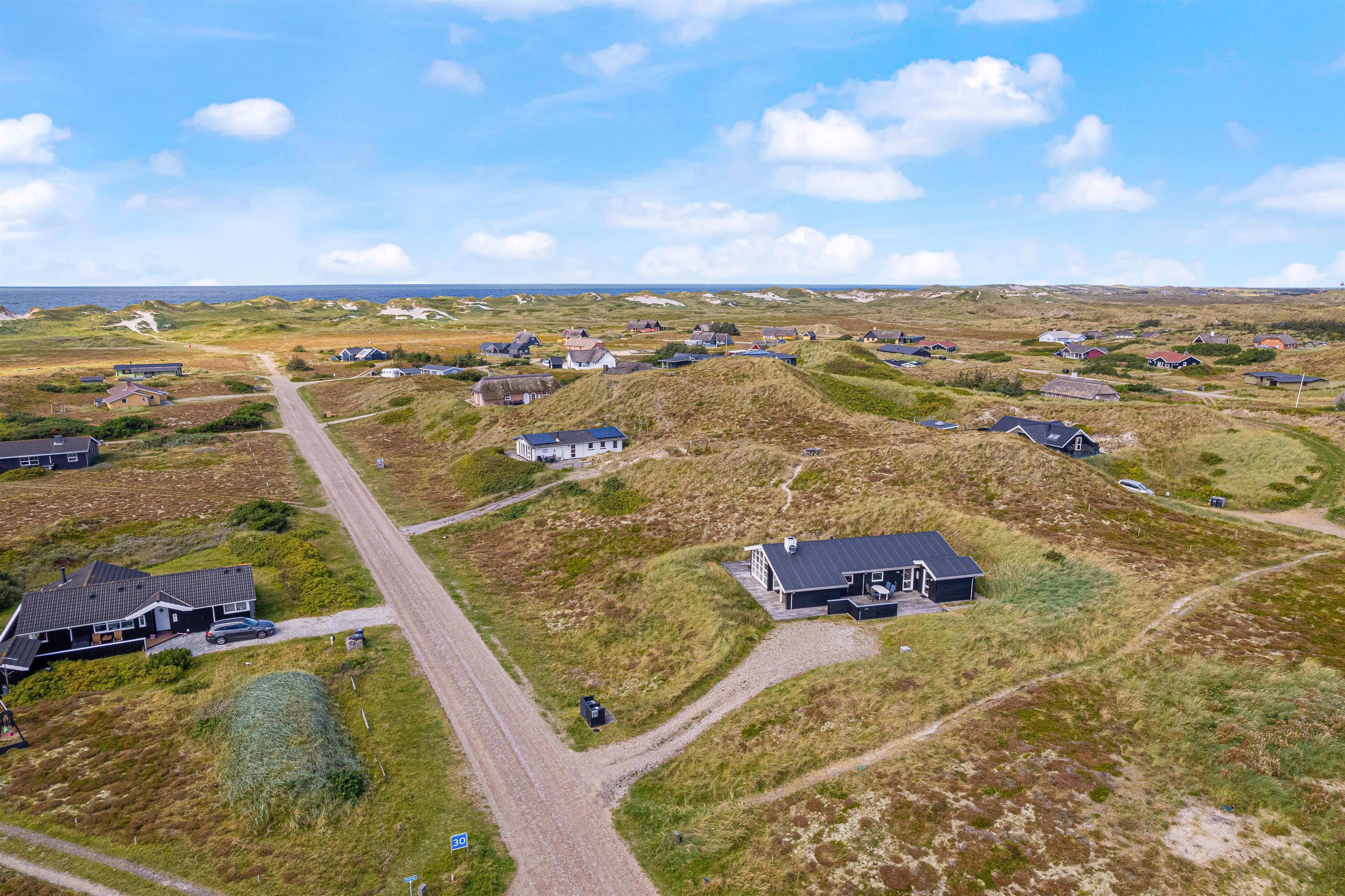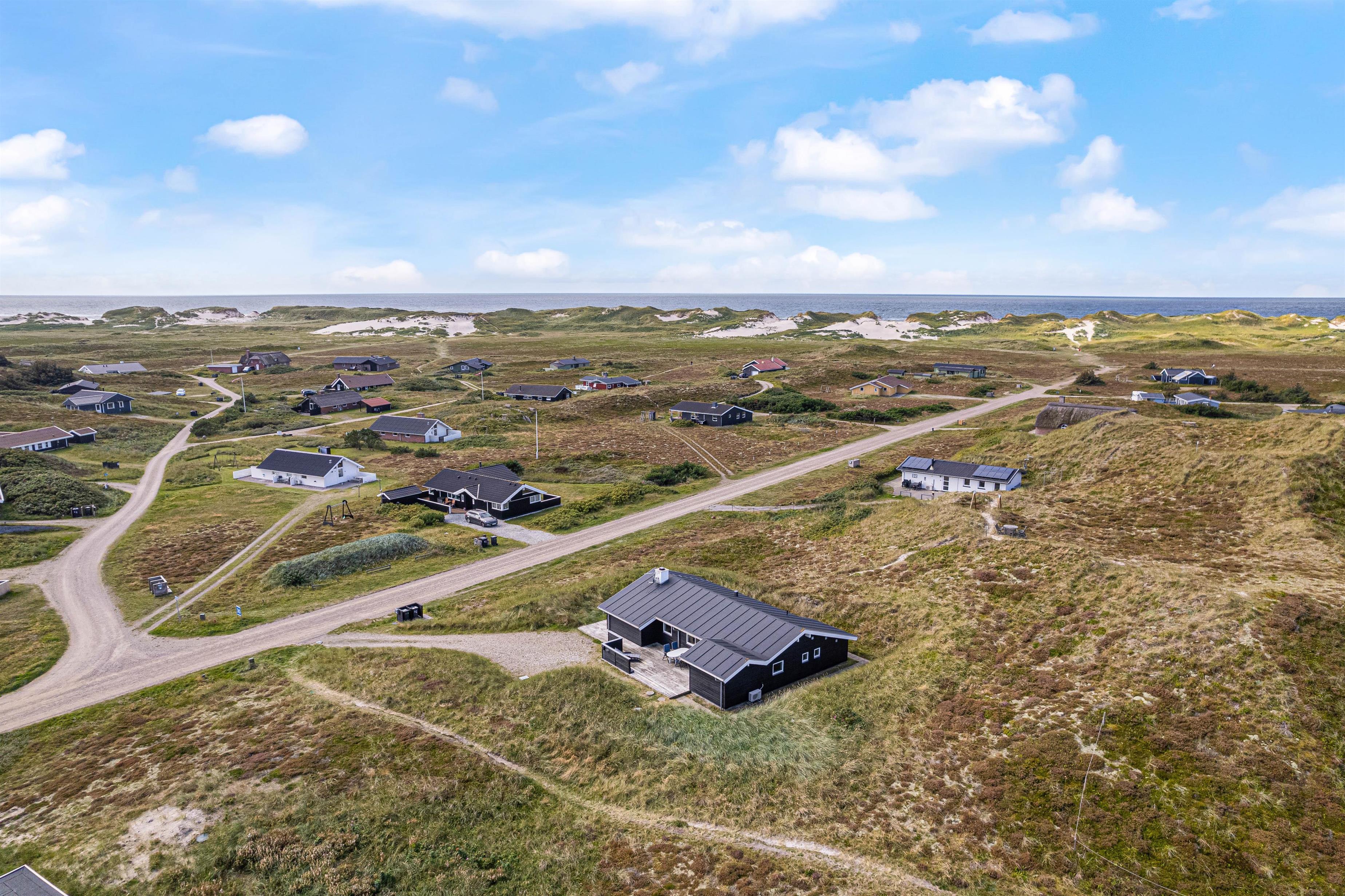 Sommerhuset ligger kun 400 meter fra Vesterhavet, hvilket giver jer nem adgang til skønne stranddage. Med panoramaudsigt over det omkringliggende landskab, vil I føle jer helt tæt på naturen. Den store grund på godt 2700 m2 giver god plads til udendørs aktiviteter og hyggelige stunder med familien. Om aftenen kan I samles ved grillen og nyde et måltid på den overdækkede terrasse.
