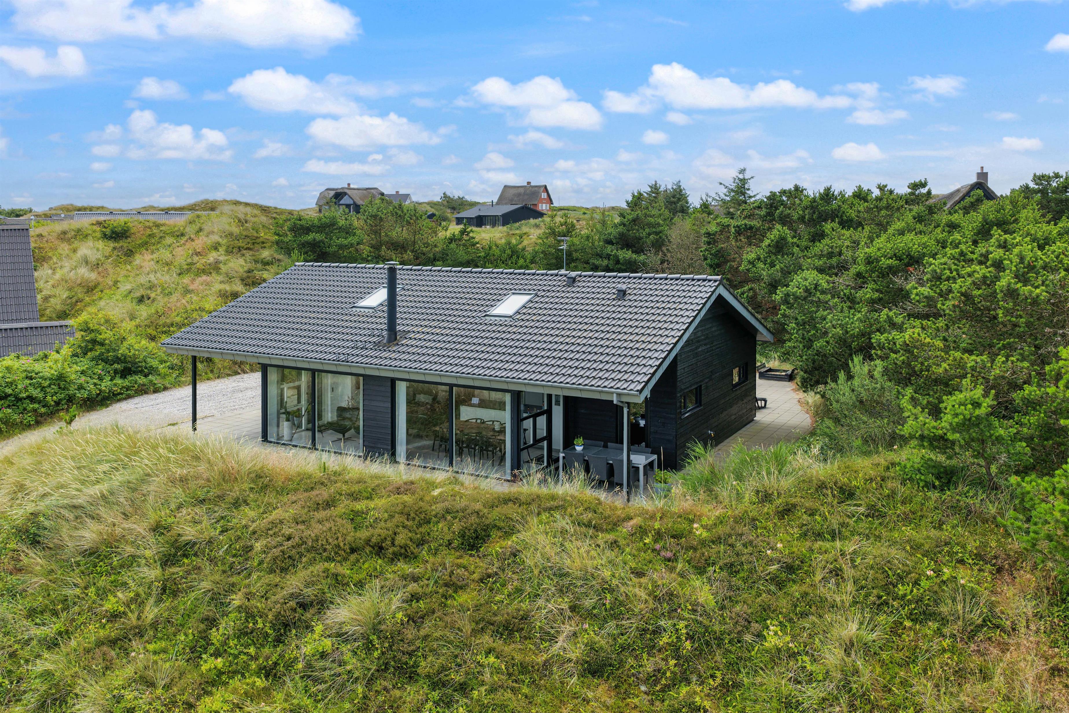 Dette lækre feriehus i Skodbjerge fortjener i den grad alle sine fem stjerner. Her er alt i top, lige fra beliggenheden til den stilfulde indretning med moderne interiør, skarpe kontraster og masser af lys og rummelighed.