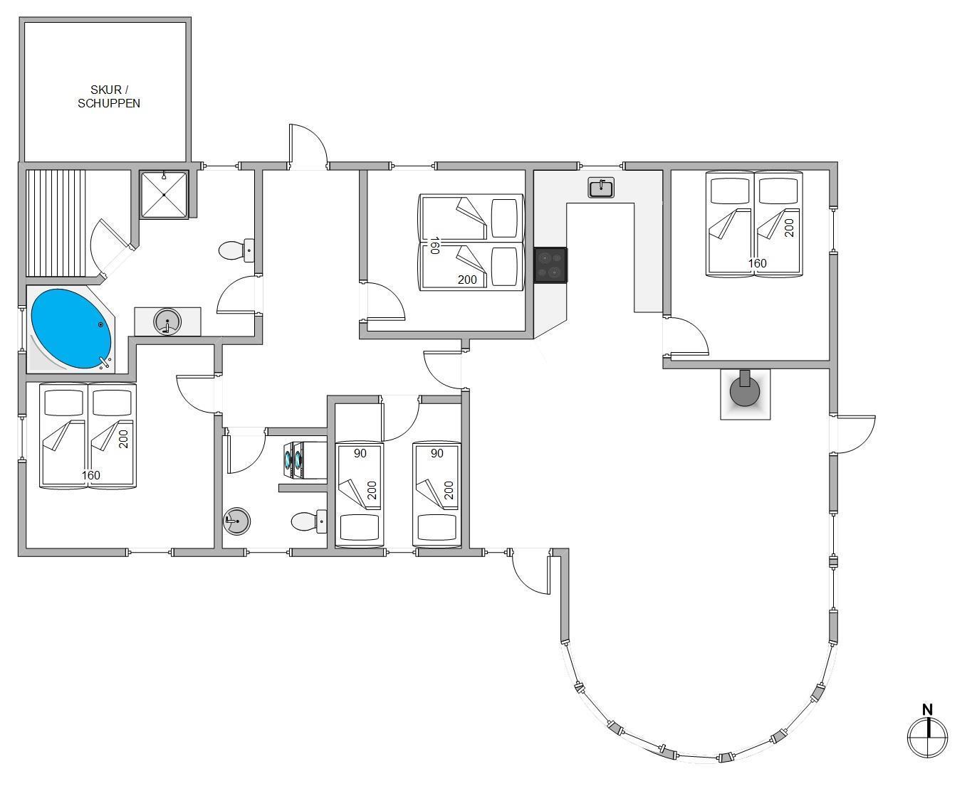Sommerhuset er lyst og rummeligt og er særdeles velegnet til både én enkelt familie, men også et godt bud, hvis man vil holde ferie med et hold venner. Her venter jer 4 gode soveværelser, der alle har gulvvarme og loft til kip. 3 af værelserne er med dobbeltsenge, mens det sidste er indrettet med 2 enkeltmandssenge. Her kan I få en god nattesøvn, så I er klar dagens strabadser.