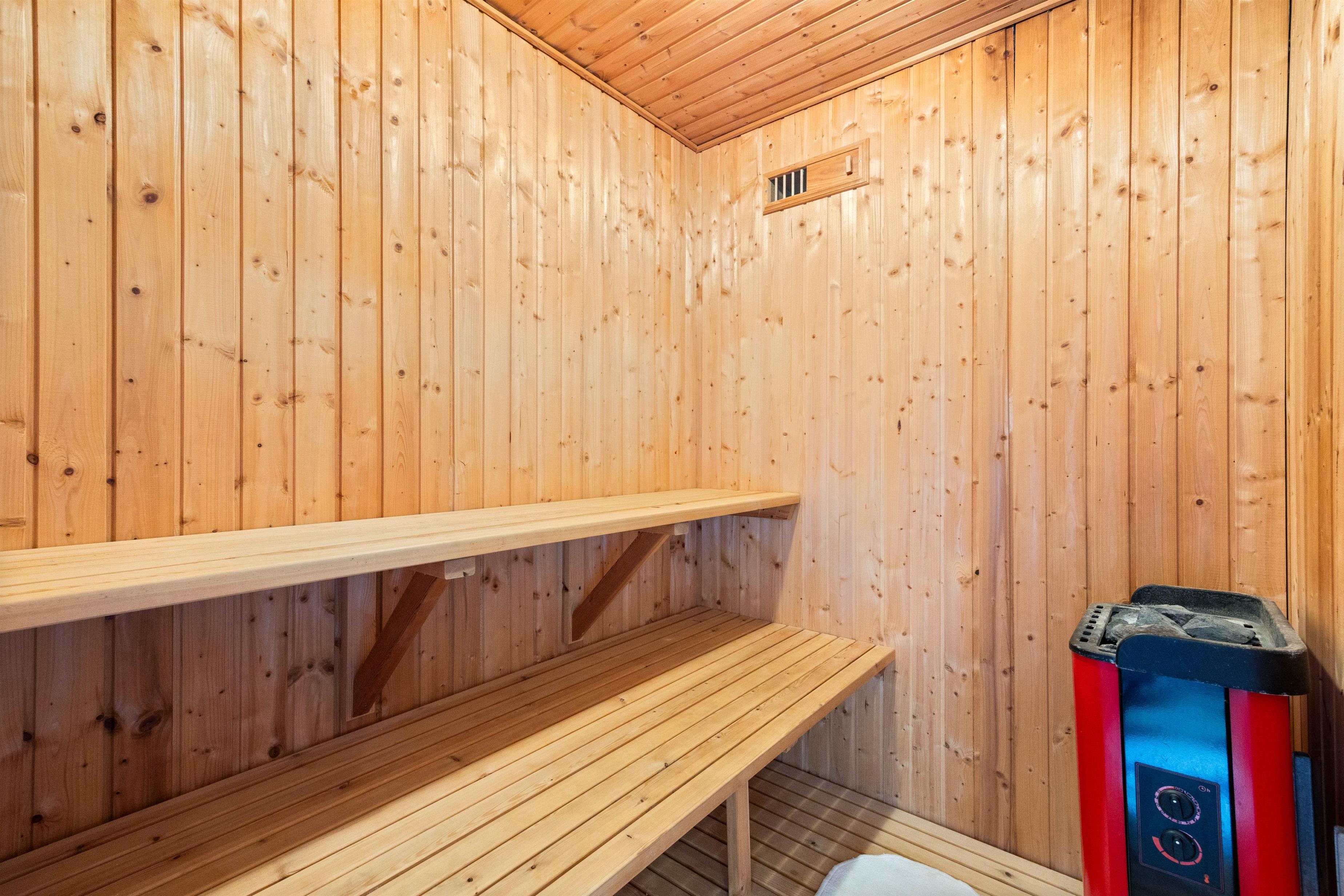 Har I brug for at blive varmet ekstra igennem, kan I tænde for spaens boblende vand eller gøre brug af saunaen – ren afslapning langt fra hverdagen. Begge dele finder I på det store badeværelse, mens det lille toilet også har en vaskesølje med vaskemaskine og tørretumbler installeret – sært praktisk for børnefamilien eller hvis strandhåndklæderne skal vaskes undervejs.