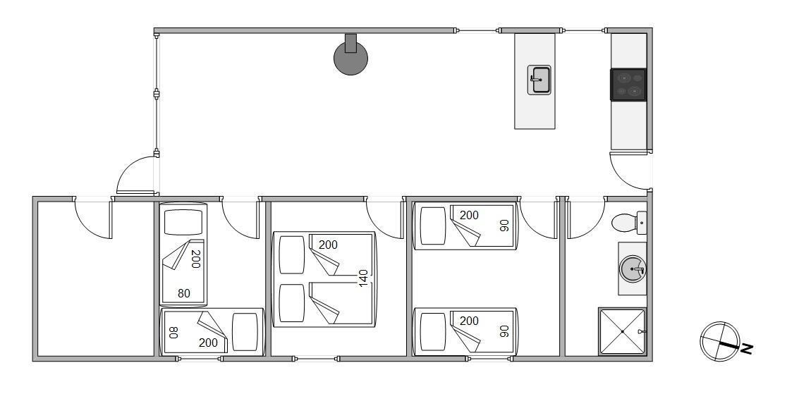 I de 3 rummelige soveværelser er der plads til, at 6 personer kan blive godt udhvilede i den friske vesterhavsluft. De 2 soveværelser har dobbeltsenge, og i det tredje er 2 enkeltsenge.