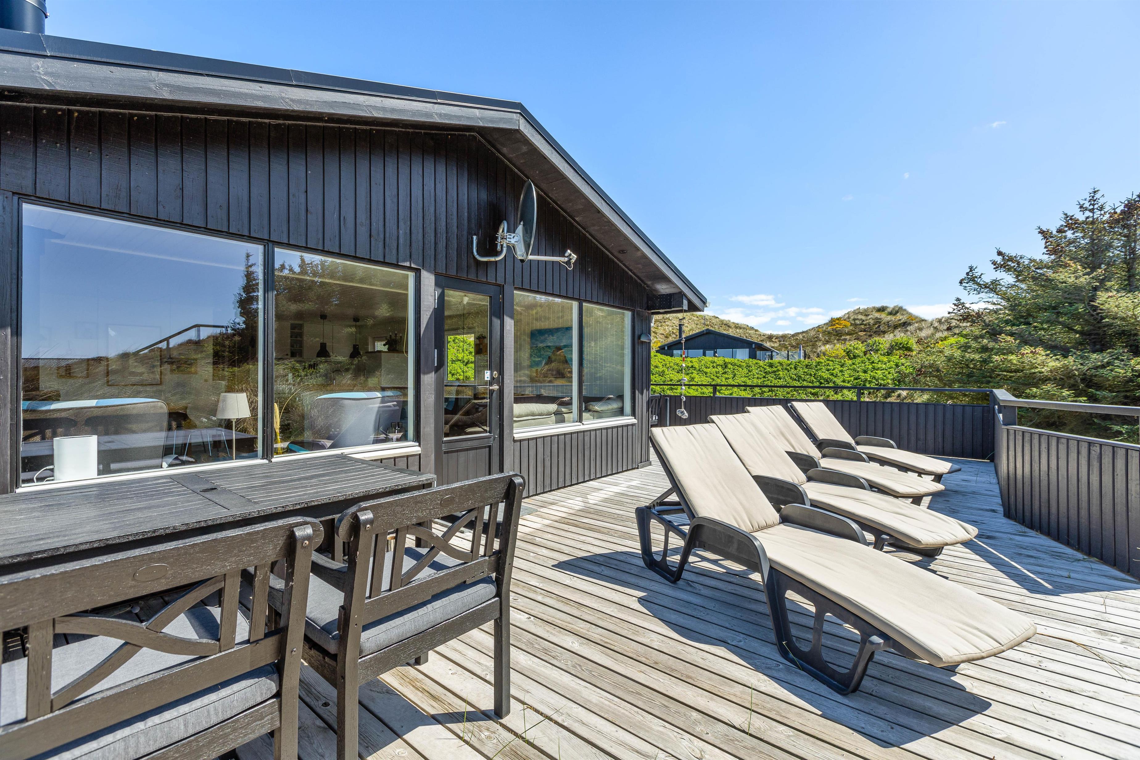 Et highlight ved dette feriehus er den store, delvist afskærmede terrasse. Her kan du nyde morgenkaffen i fred og ro eller tilberede måltider på grillen, mens du sidder i havemøblerne og lytter til havets bølger i det fjerne. Terrassen giver mulighed for afslapning i det gode sommervejr, hvor I kan sidde i læ for en lille vind.