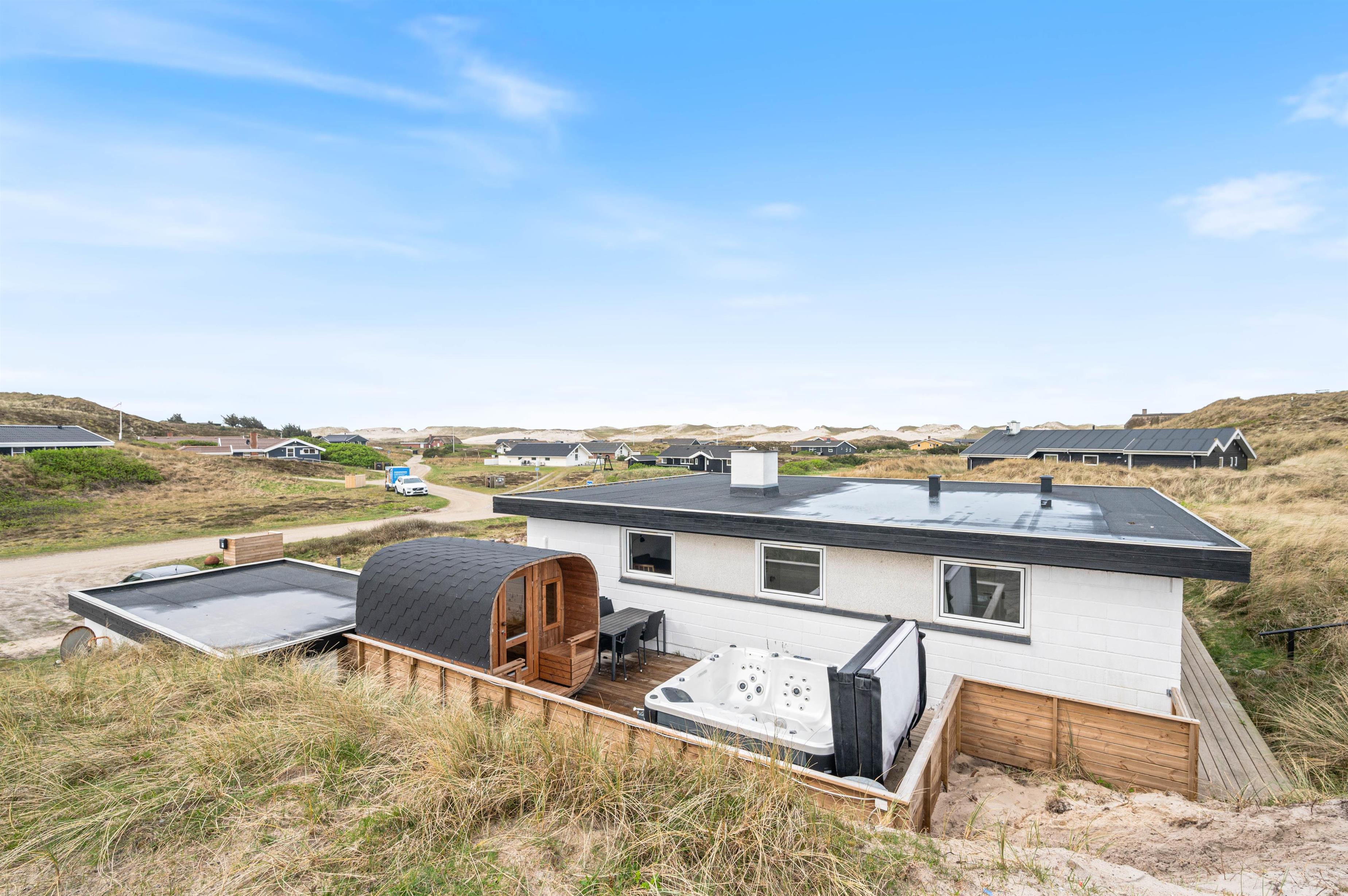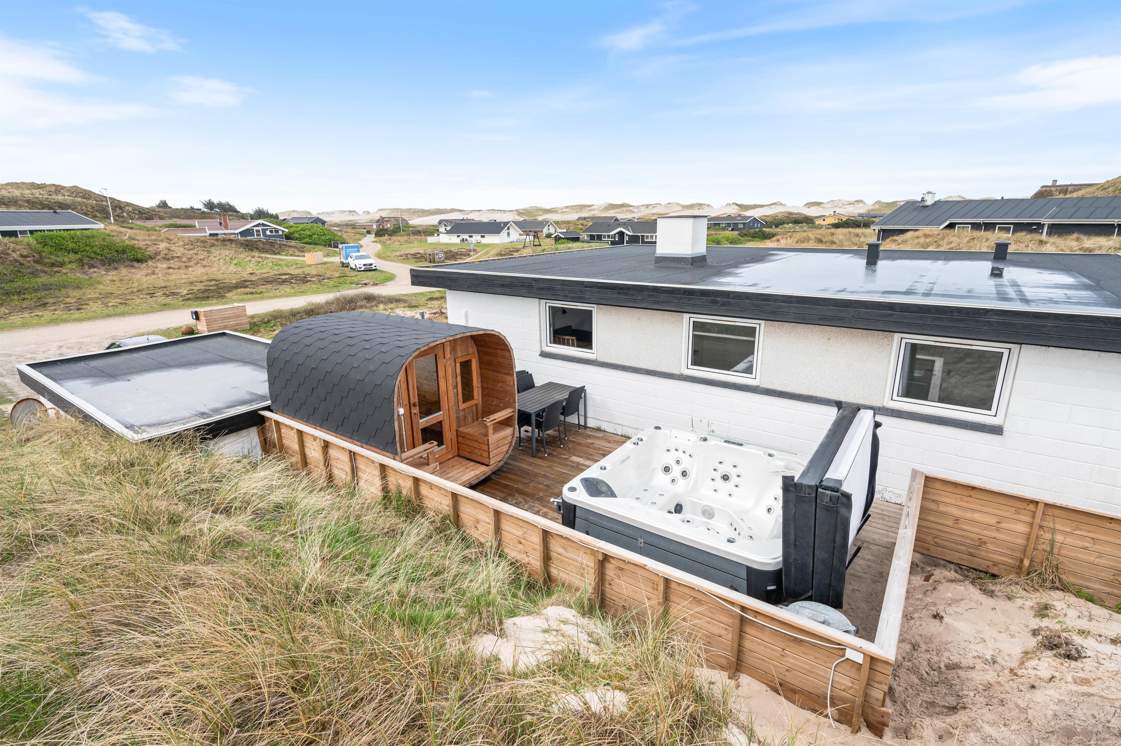 På Skodbjergevej 36 finder I dette 5-personers sommerhus, som råder over flere terrasser, hvor I kan nyde solen og udsigten. Stranden ligger blot 450 meter fra feriehuset, hvor I kan nyde en skøn gåtur i den friske havluft med familien og jeres hund. Sommerhuset har en udespa, der indbyder til mange afslappende stunder i det varme vand.