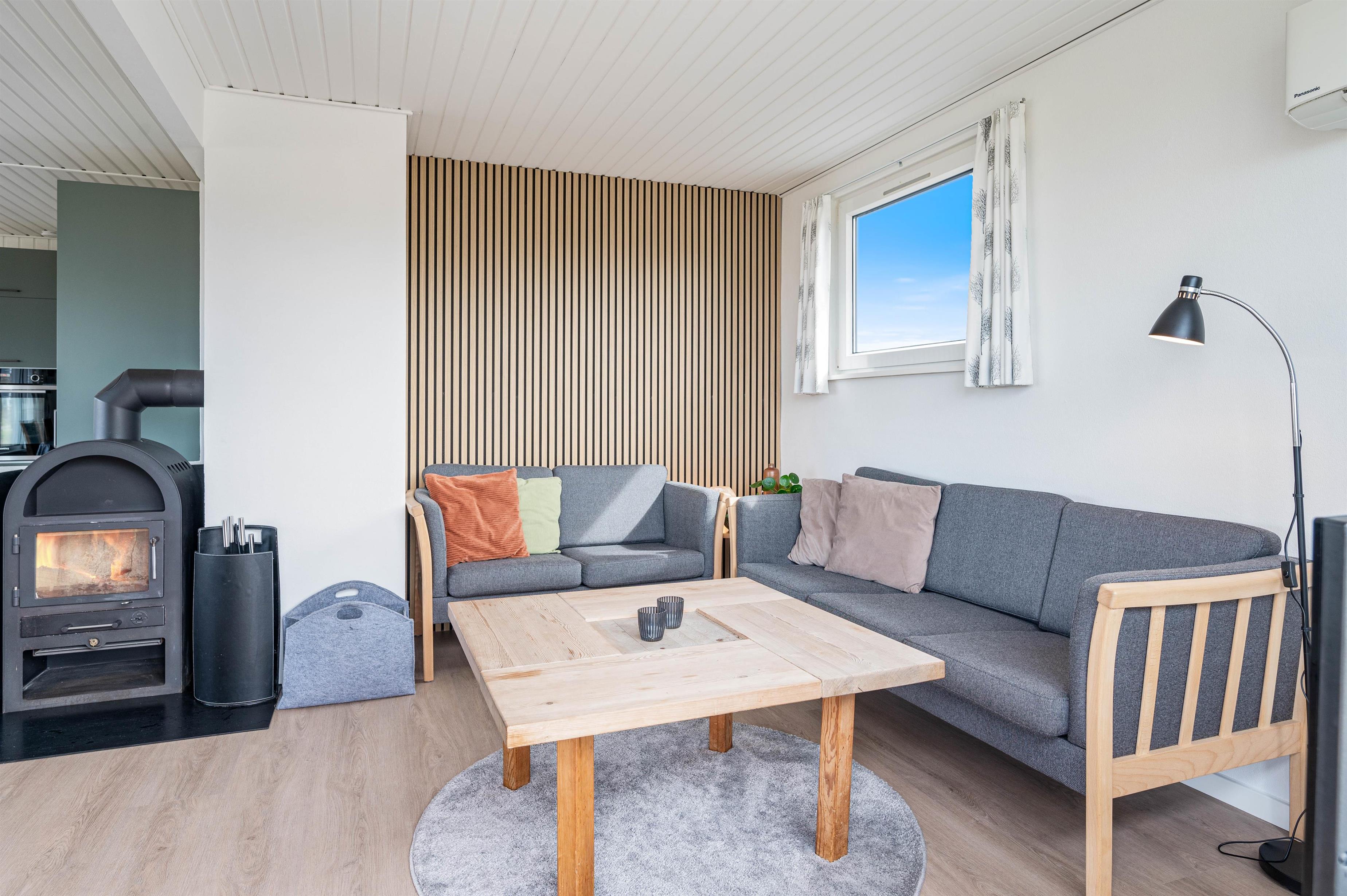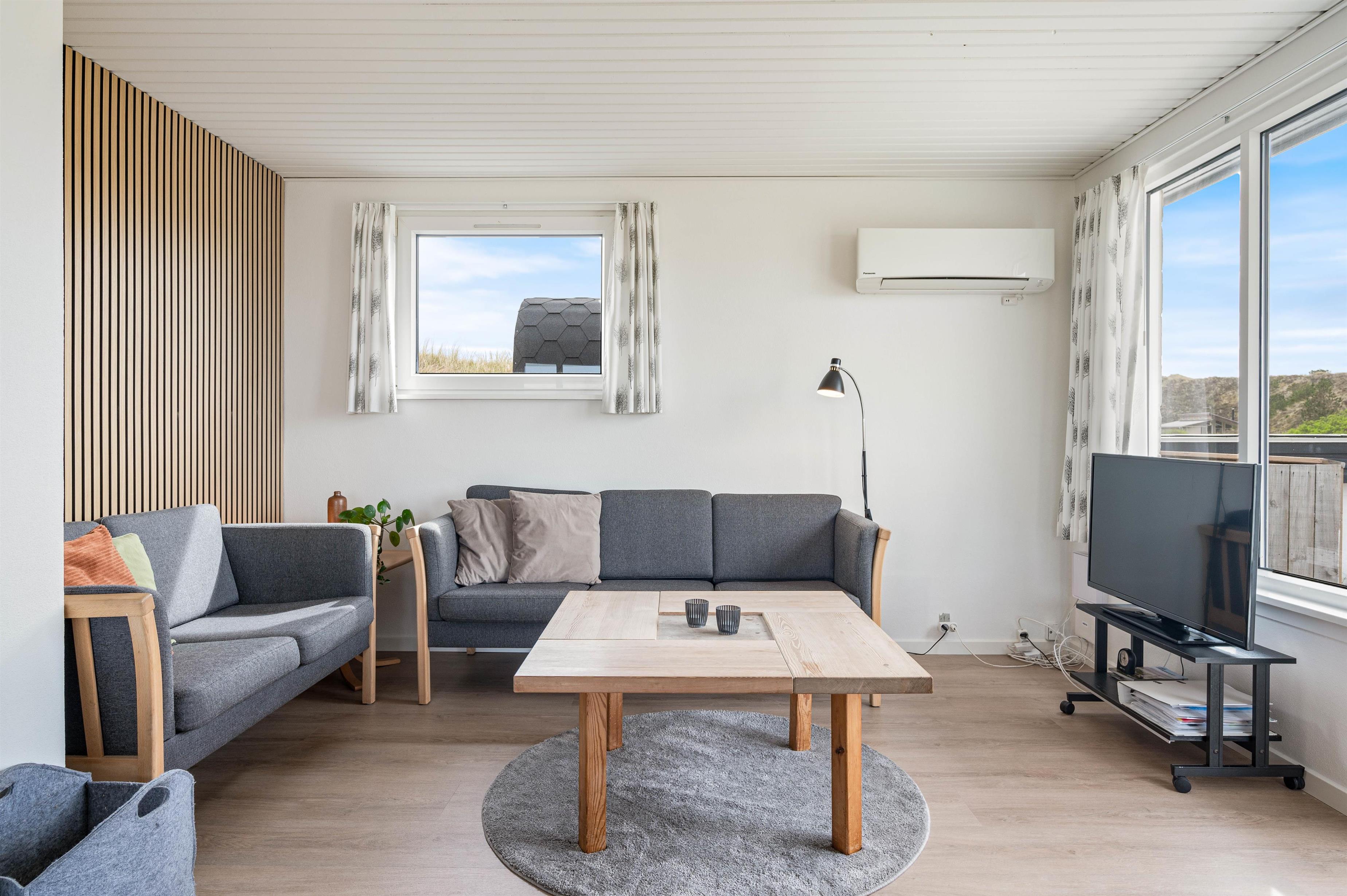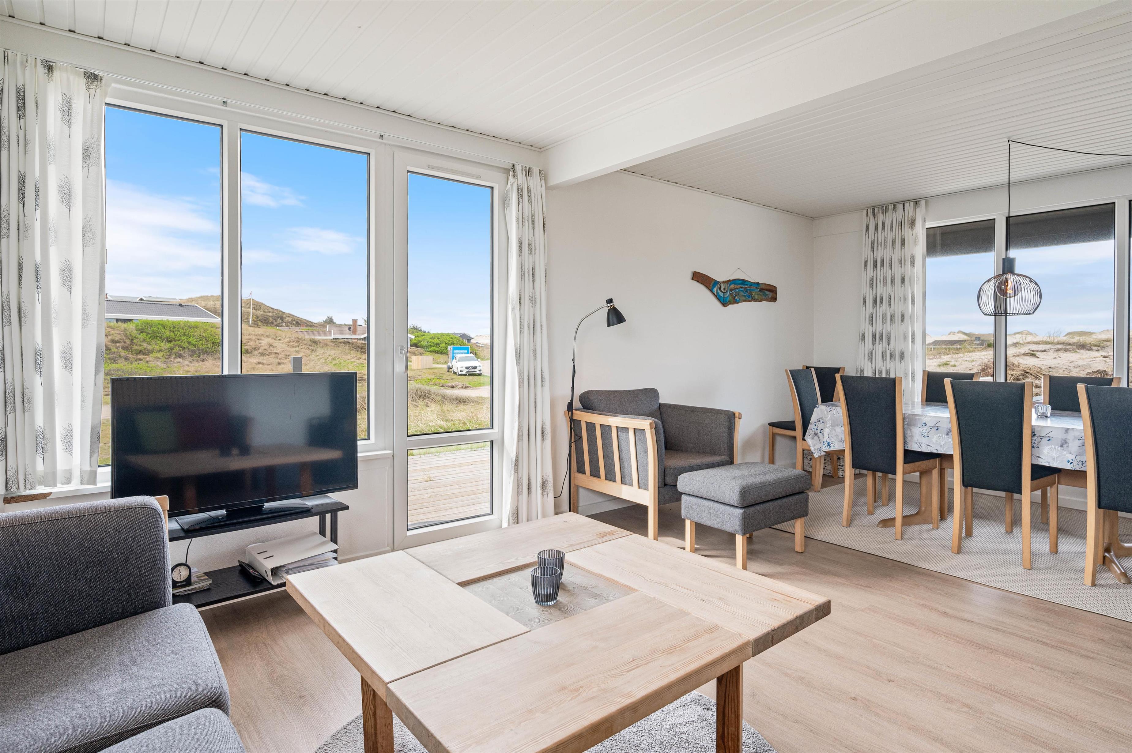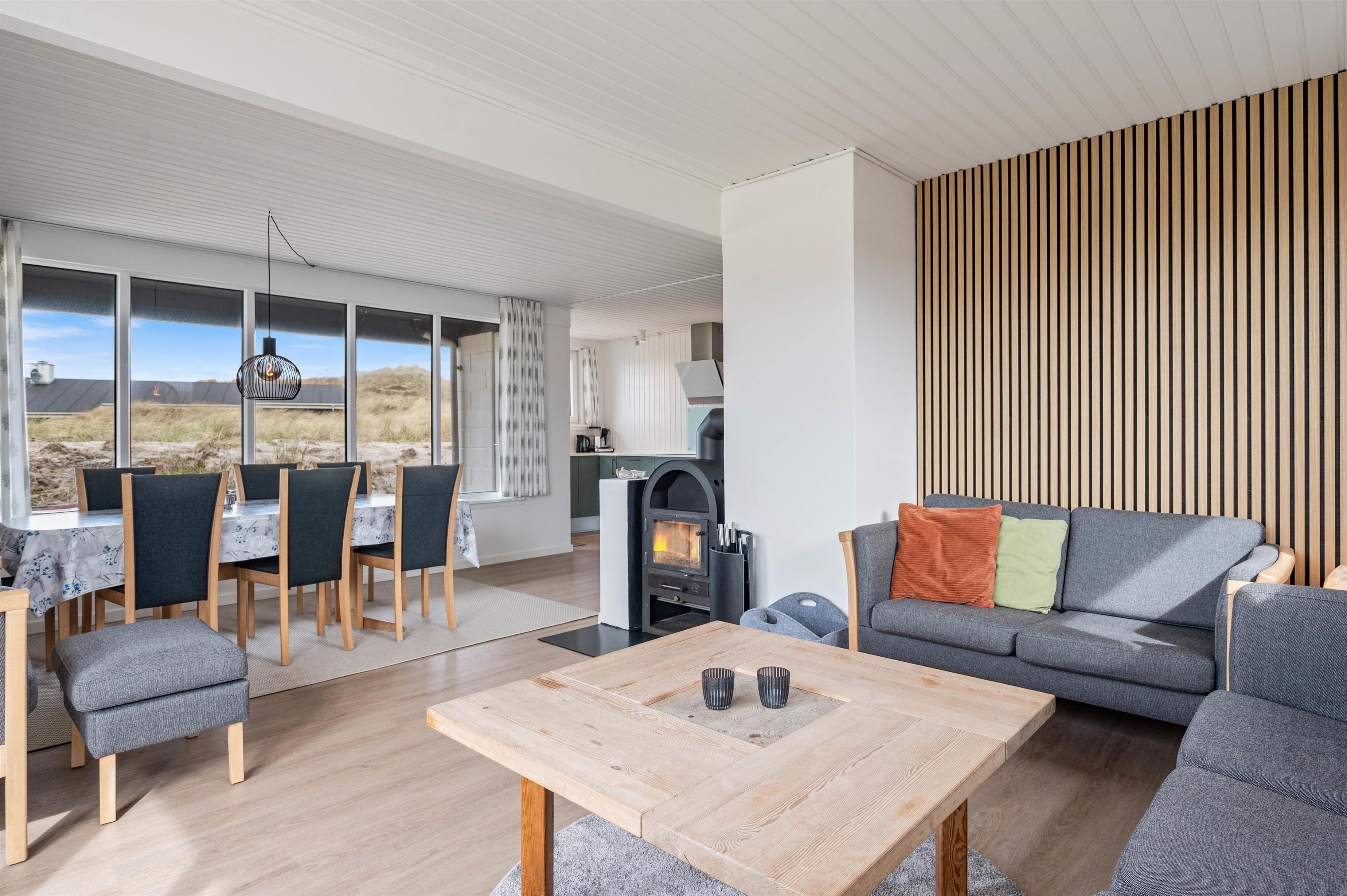 De mange, store vinduer i stuen slipper masser af lys ind i rummet og giver jer samtidig en rigtig flot udsigt ud over det unikke klitlandskab. Skulle vejret være dårligt, kan I tænde op i brændeovnen og læne jer tilbage på sofaen.