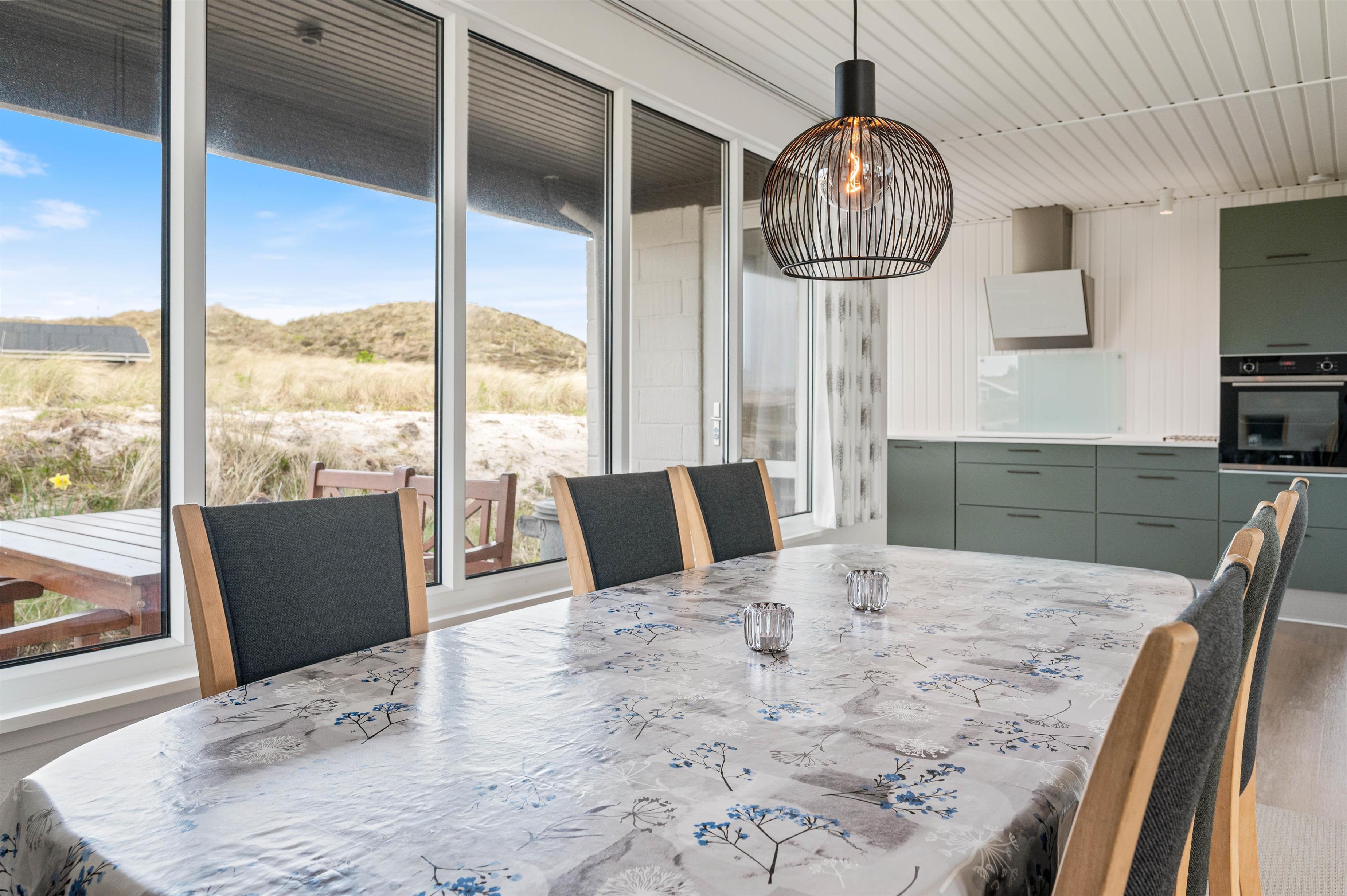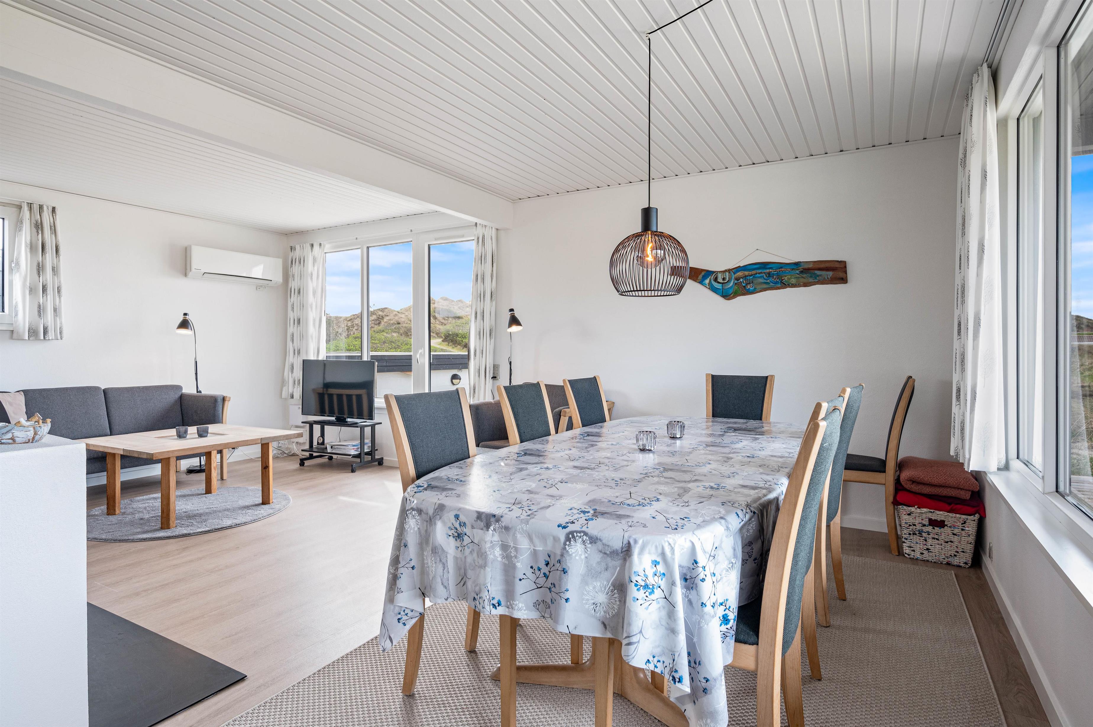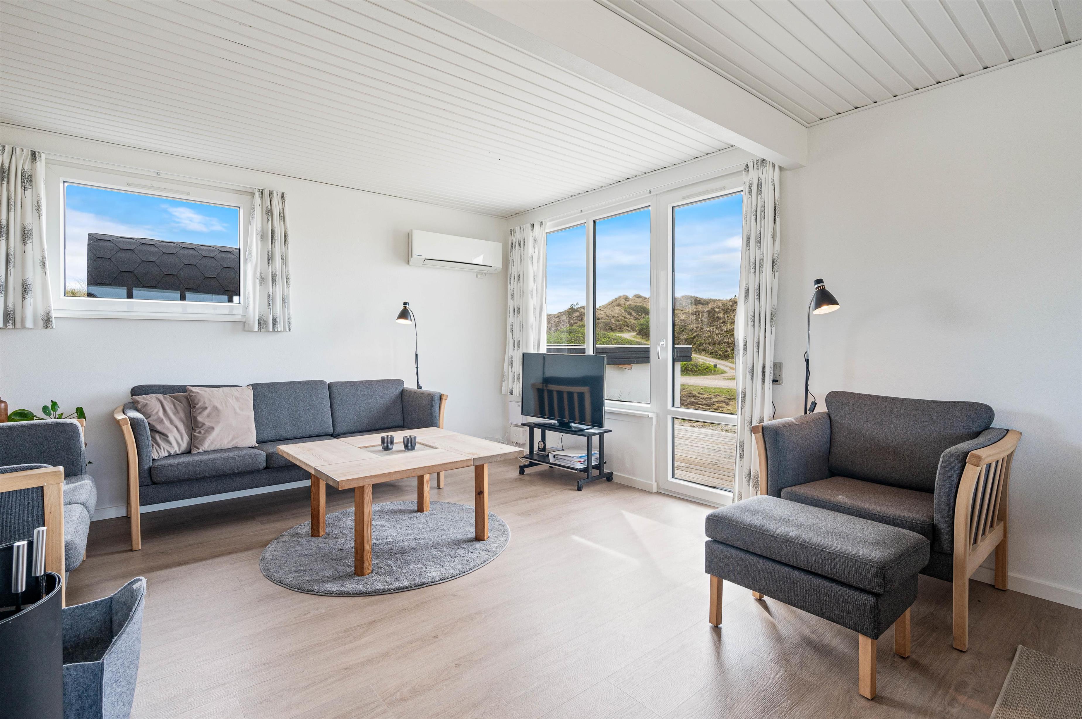 De mange, store vinduer i stuen slipper masser af lys ind i rummet og giver jer samtidig en rigtig flot udsigt ud over det unikke klitlandskab. Skulle vejret være dårligt, kan I tænde op i brændeovnen og læne jer tilbage på sofaen.
