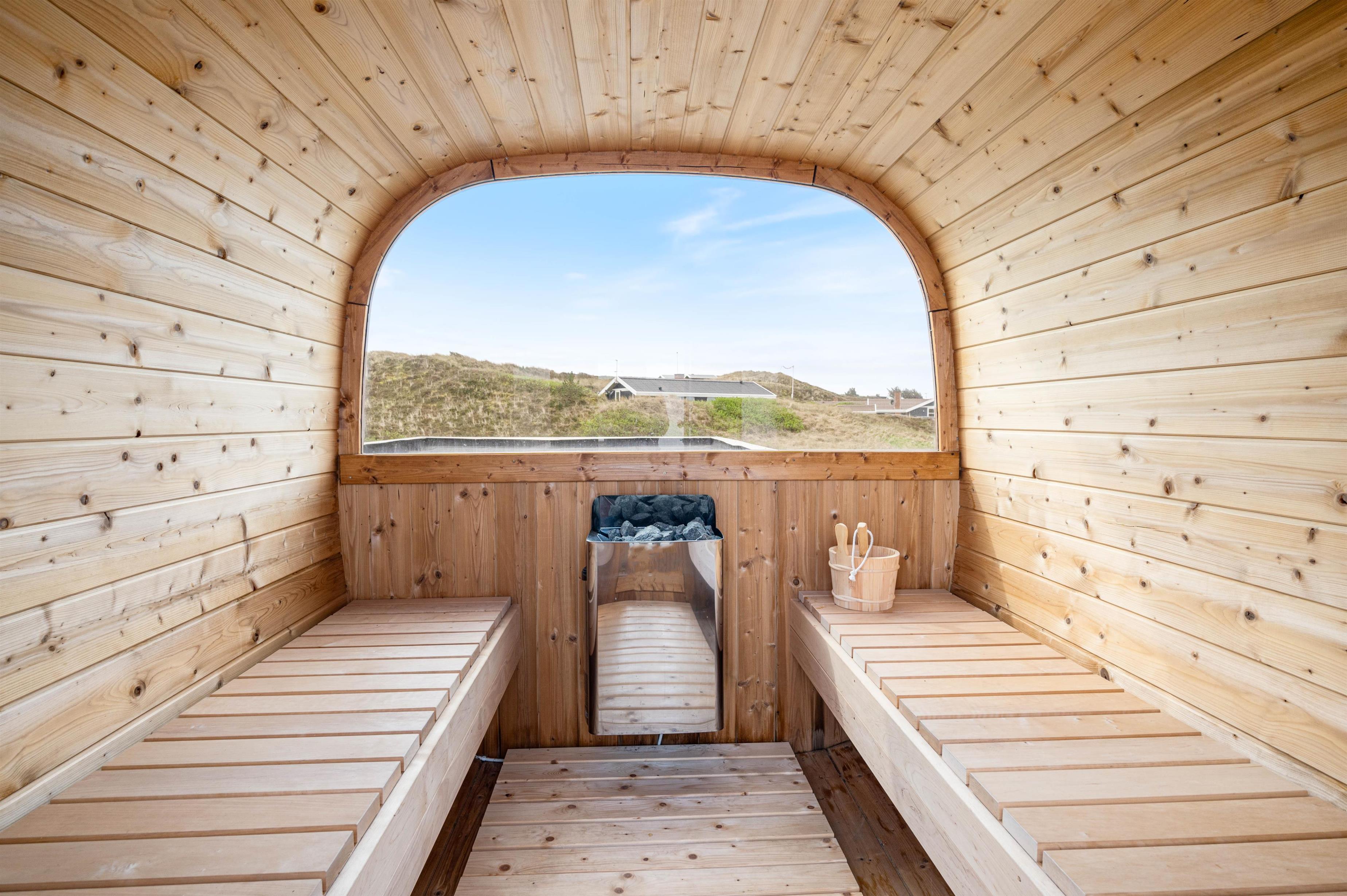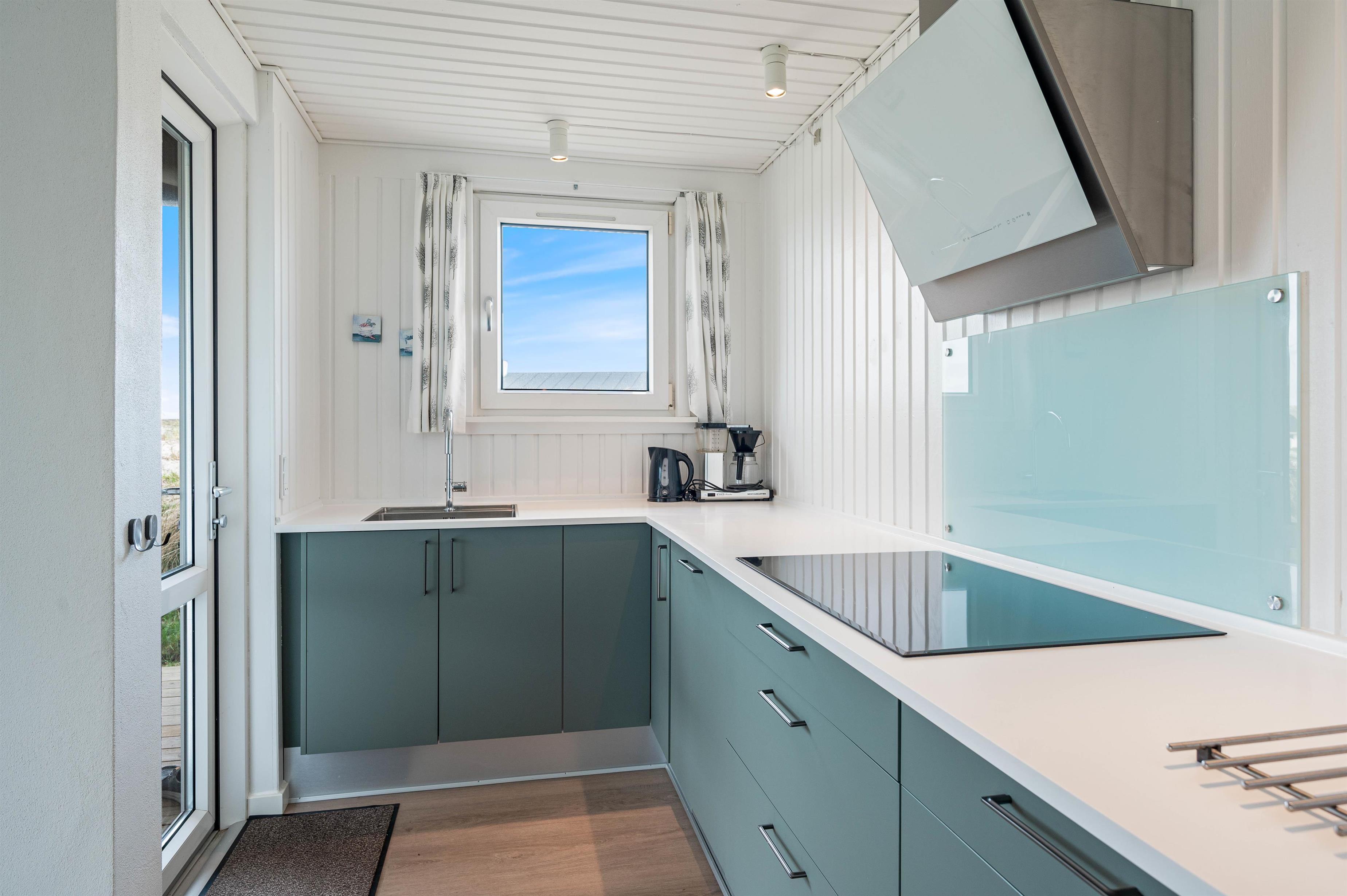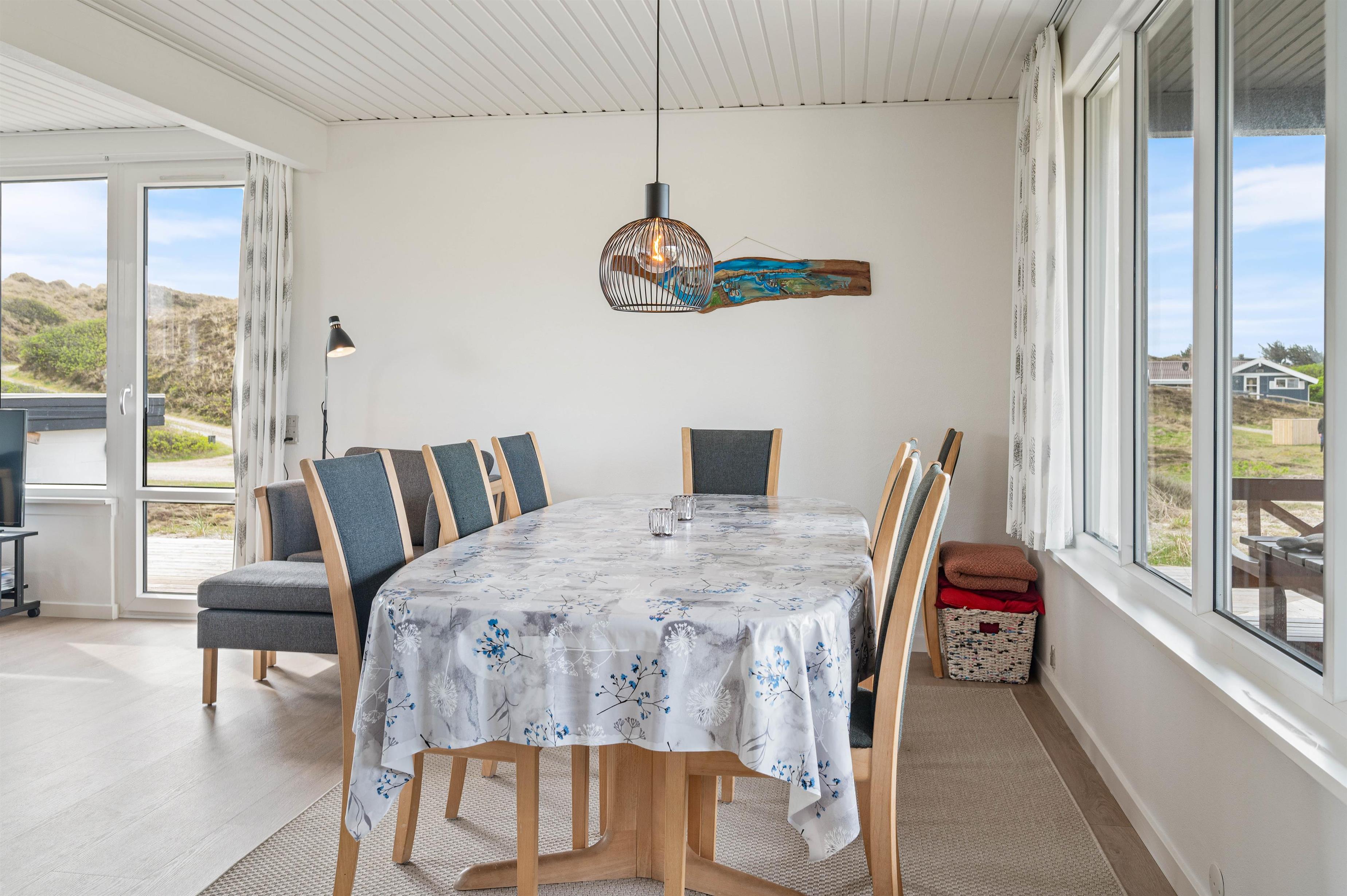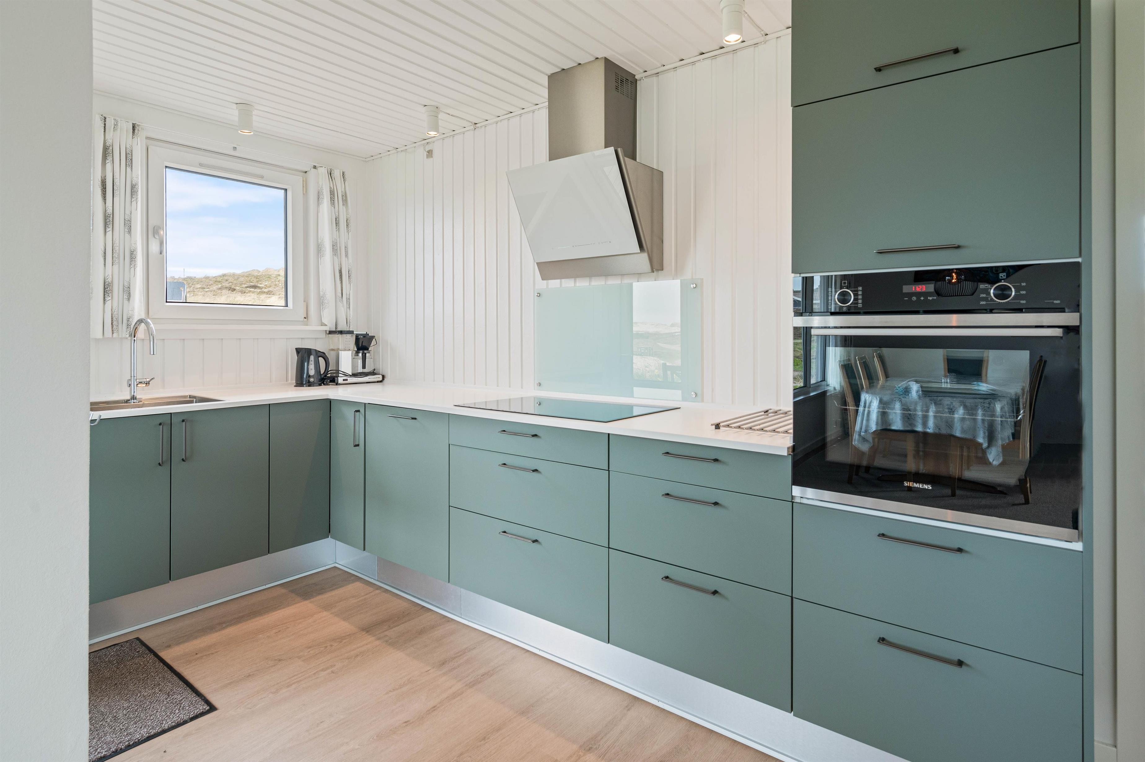 De mange, store vinduer i stuen slipper masser af lys ind i rummet og giver jer samtidig en rigtig flot udsigt ud over det unikke klitlandskab. Skulle vejret være dårligt, kan I tænde op i brændeovnen og læne jer tilbage på sofaen.