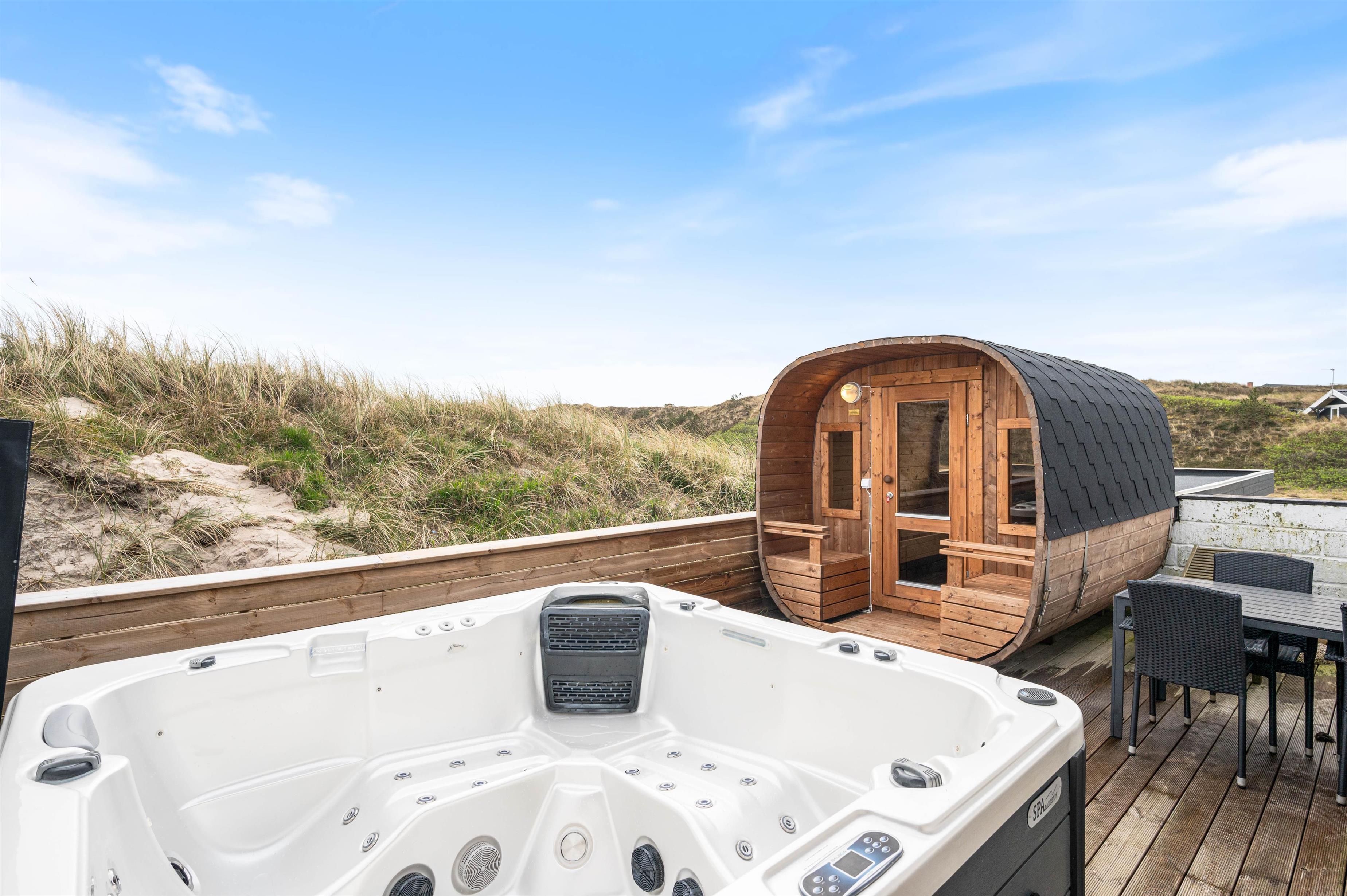 Efter en lang dag på stranden eller terrassen, står grillen klar til jer, så I kan lave en dejlig middag på terrassen og lade dagens sidste timer rinde ud på bedste vis - naturligvis med en tur i udespaen.