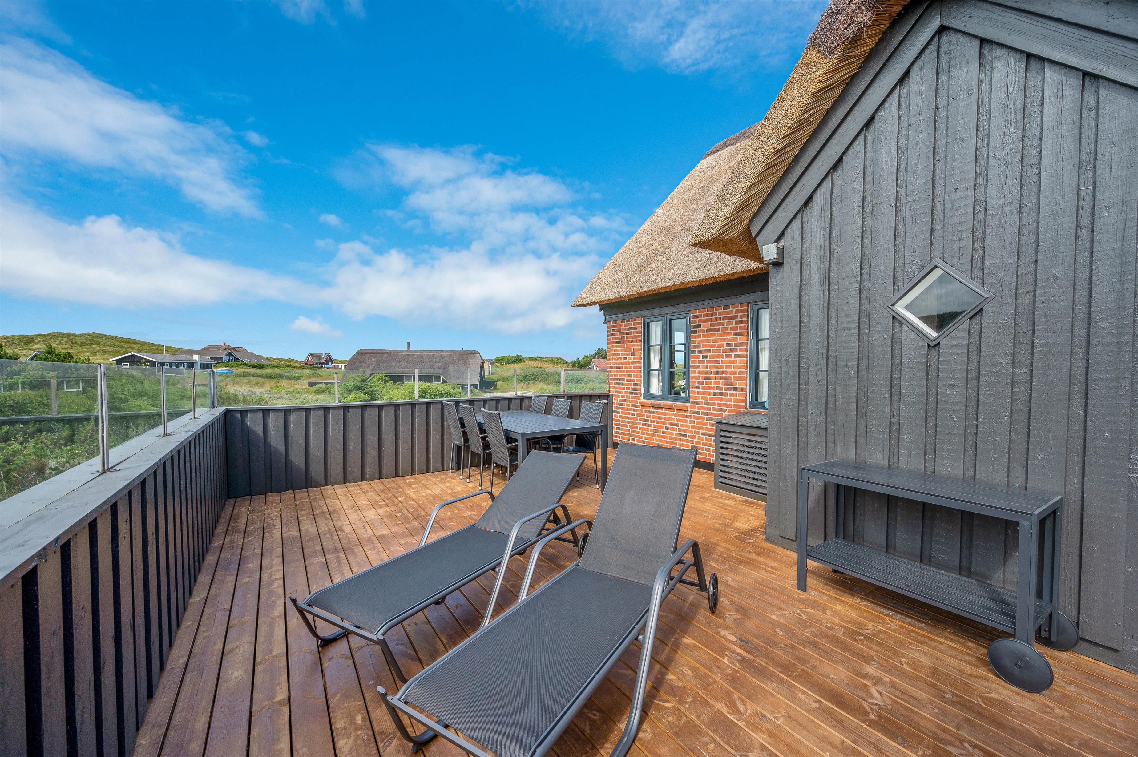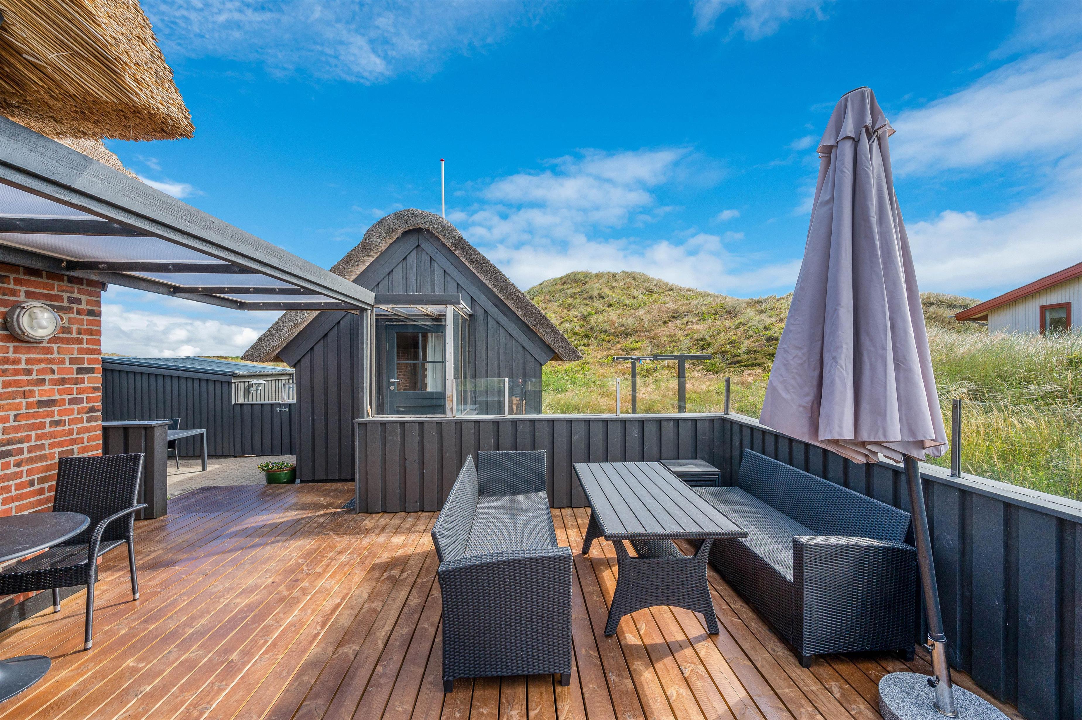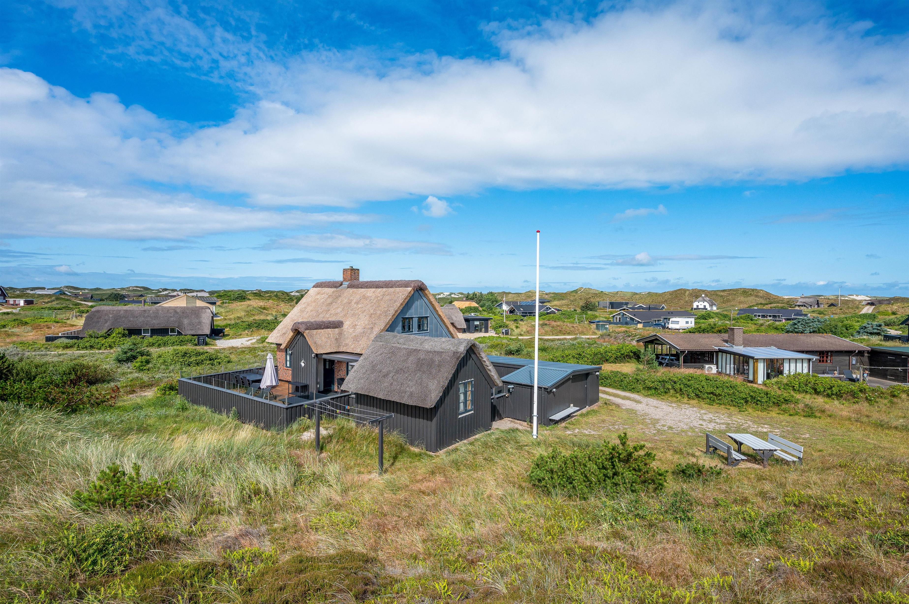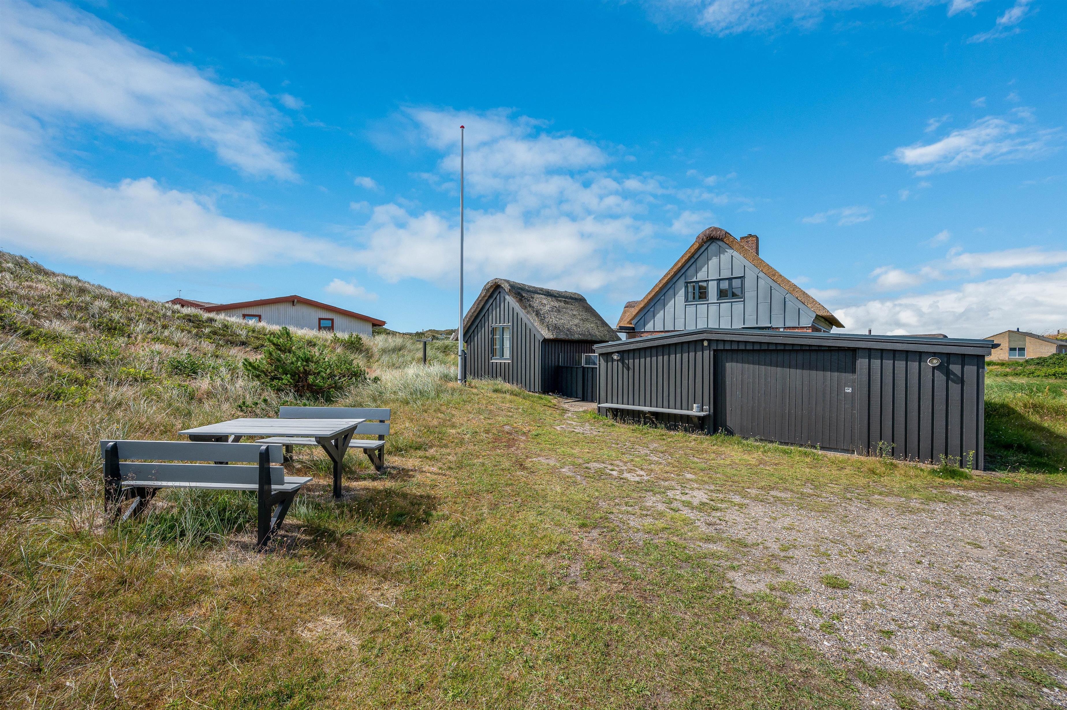 Her på Skodbovej 25 er der mange hyggekroge rundt om feriehuset. Mod øst imellem bygningerne finder I en dejlig lukket terrasse, perfekt til morgenkaffen, hvor I kan se solen stå op over Ringkøbing Fjord. Mod sydvest er der yderlig en helt lukket terrasse, hvor I kan nyde eftermiddagssolen fra liggestolene, mens børn og hunde leger. Slut dagen af med en veltilberedt grillmiddag i aftensolens skær.