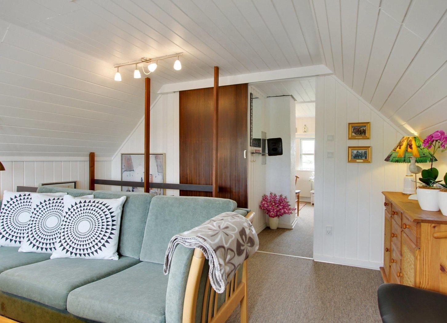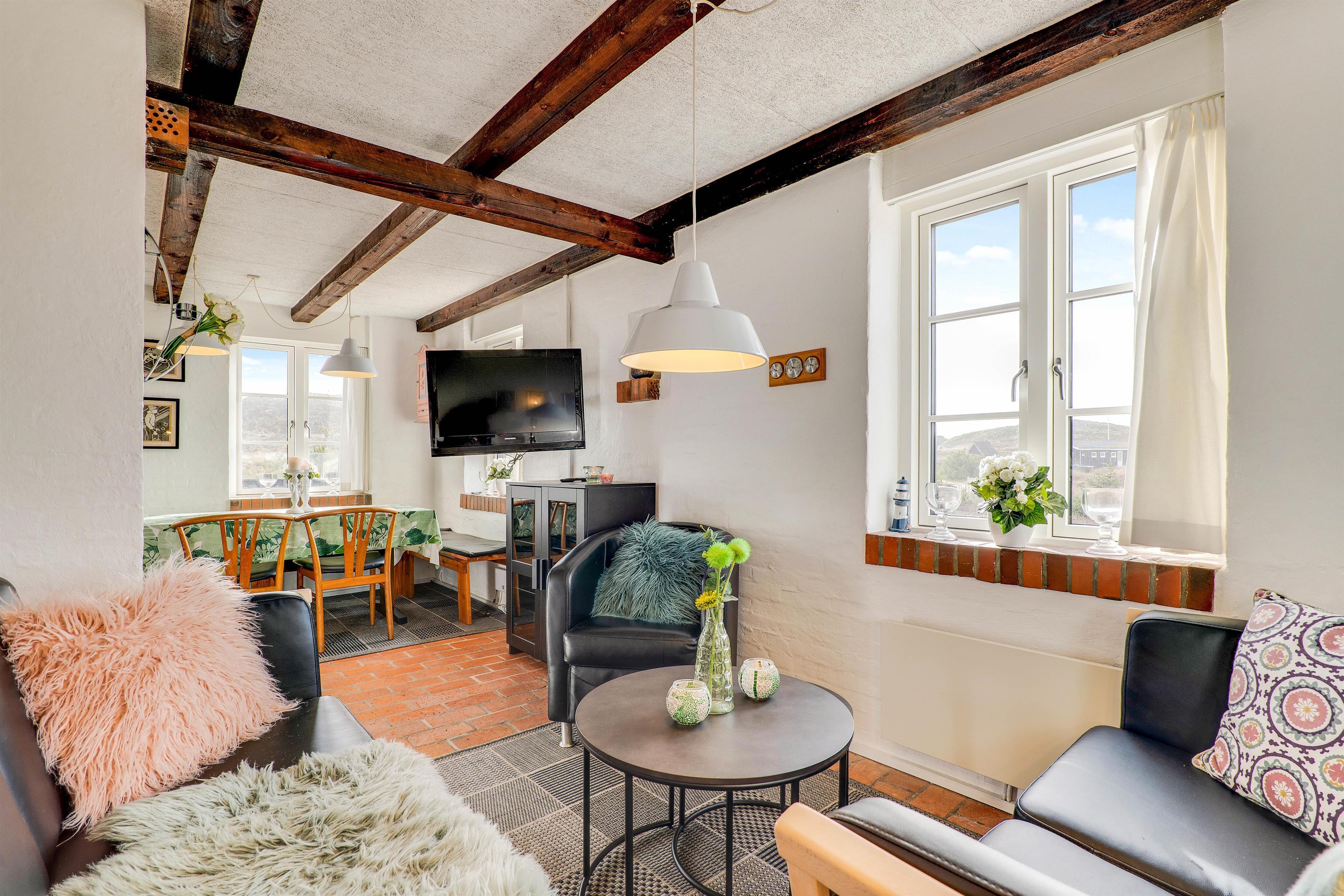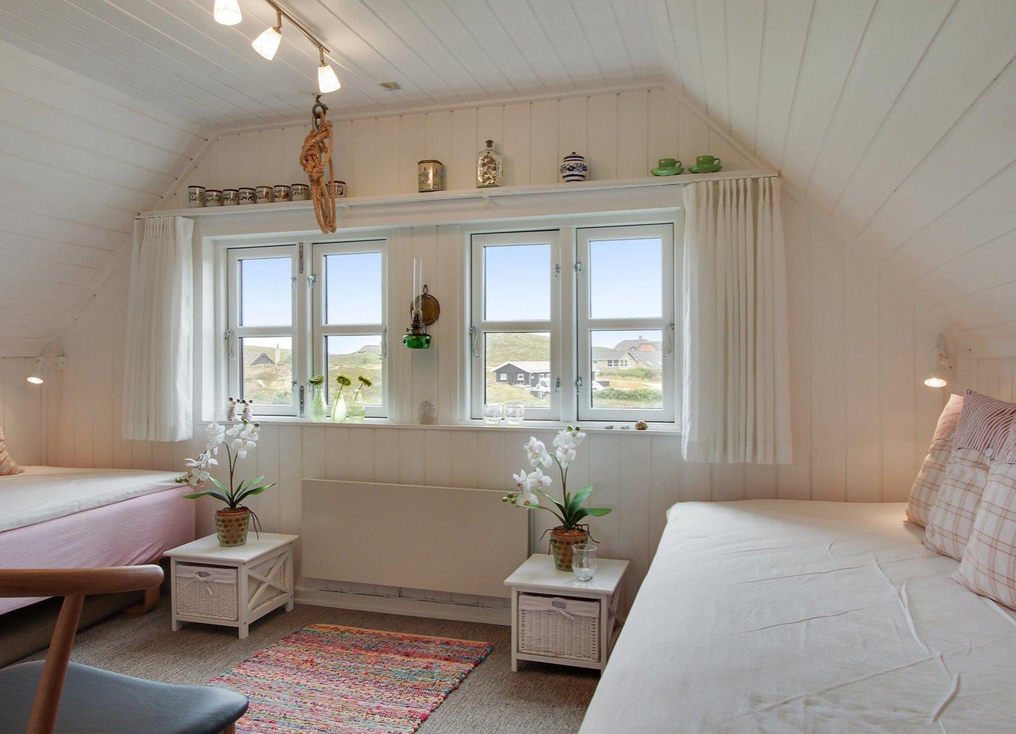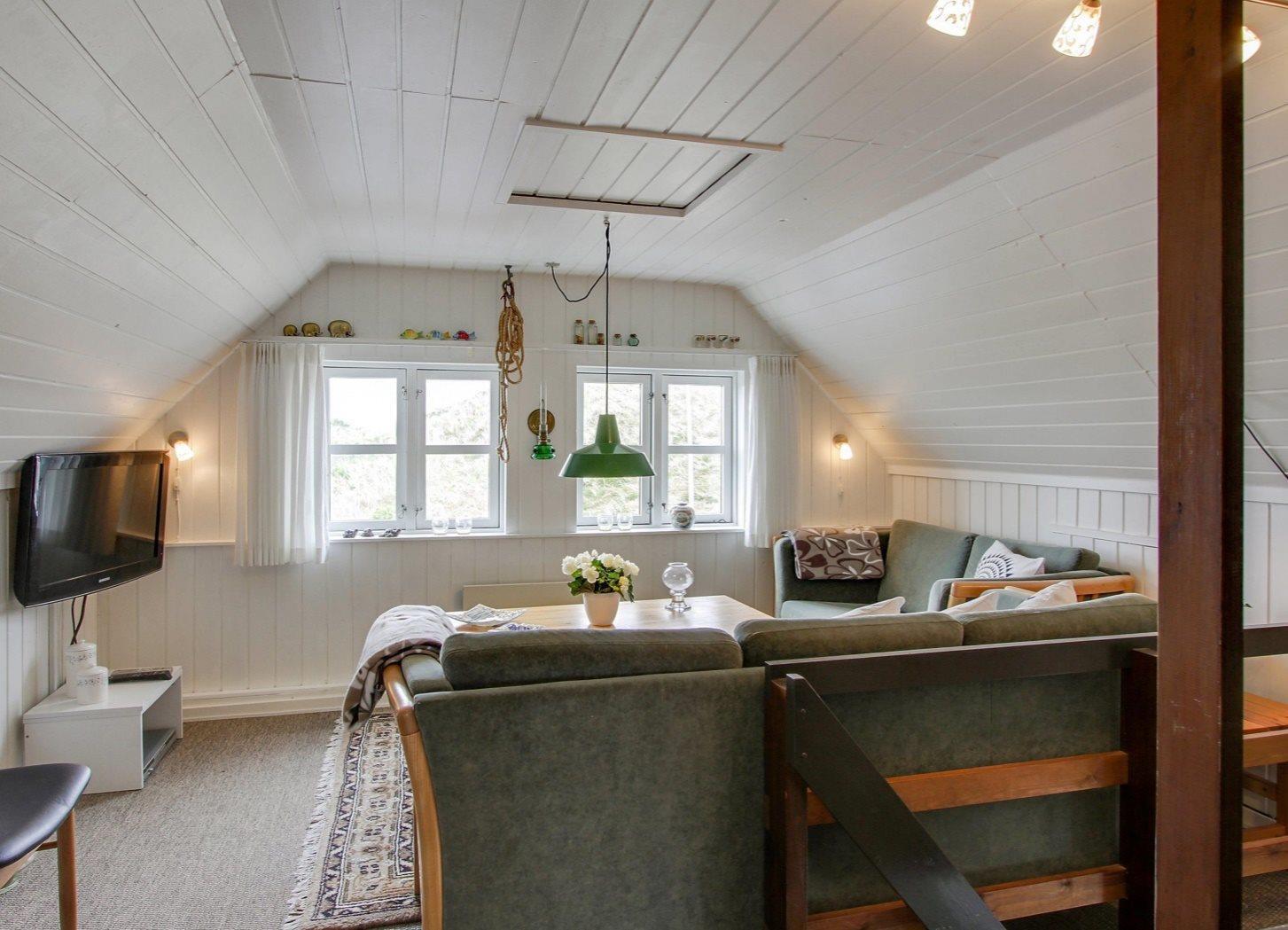 På førstesalen finder I TV-stuen, hvorfra der er en formidabel udsigt mod nordøst ud over sommerhusområdet og Ringkøbing Fjord. Et af de 3 soveværelser befinder sig også på 1. salen, og herfra har I tilsvarende en fantastisk udsigt over klitterne.