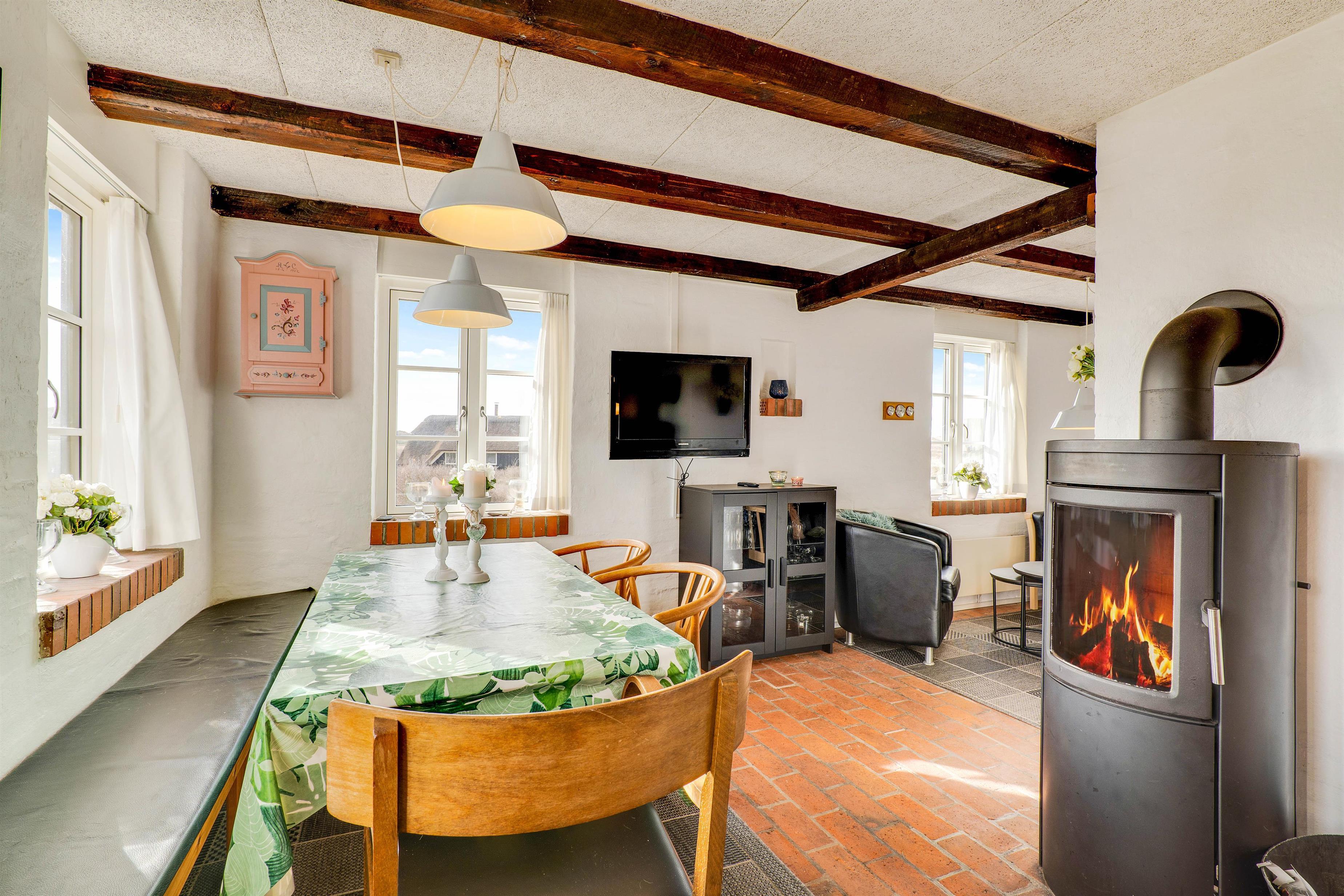 Feriehuset er hyggeligt indrettet og er i 2 plan. I stueetagen finder I bl.a. køkken og spisestue i ét. I køkkenafdelingen finder I alt, hvad I har brug for – bl.a. 60 l. fryser, 2 køleskabe, mikroovn og opvaskemaskine. Hyg jer ved langbordet med familiespil og nyd den knitrende ild i brændeovnen, mens maden bliver lavet i køkkenet.