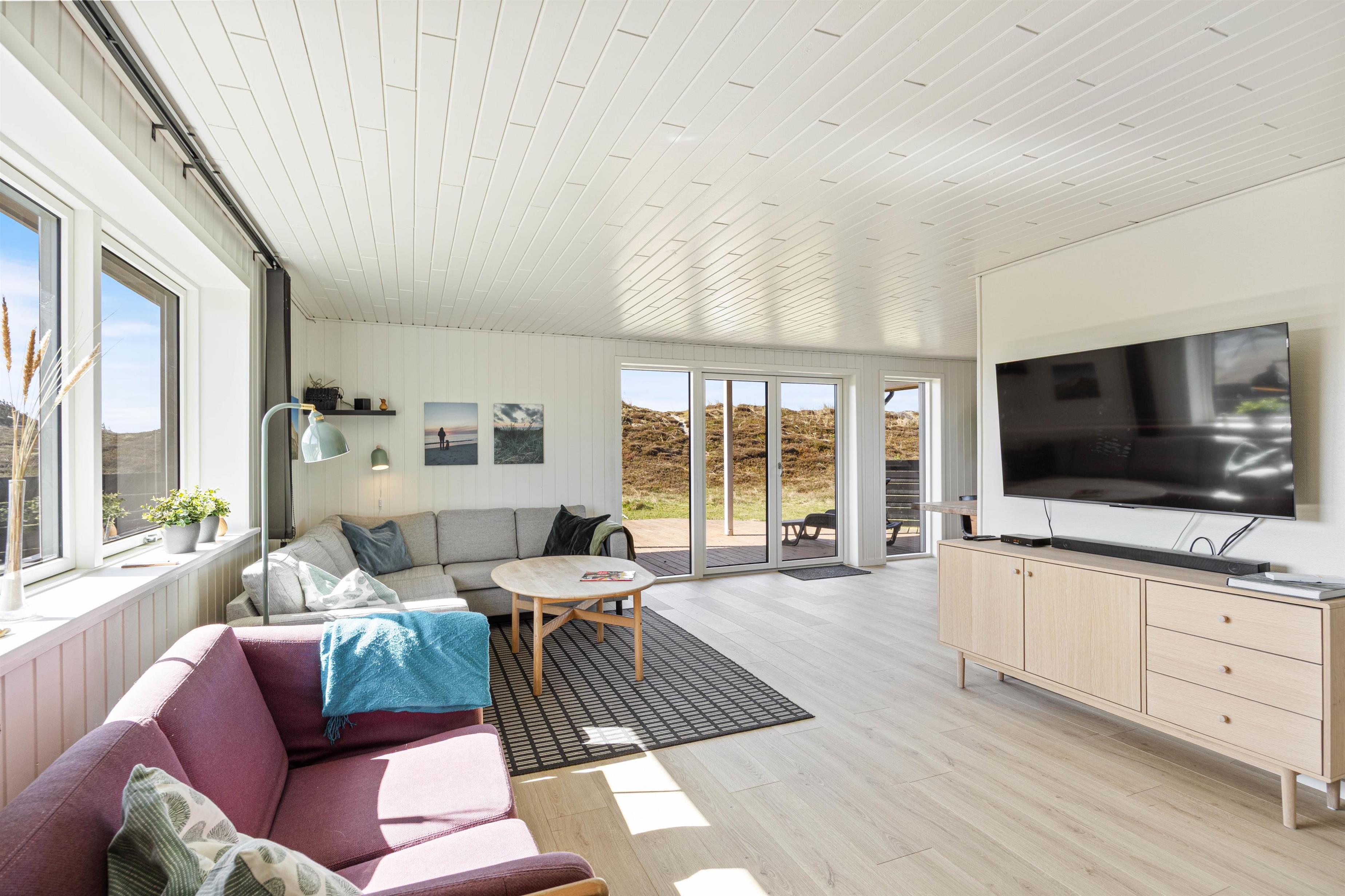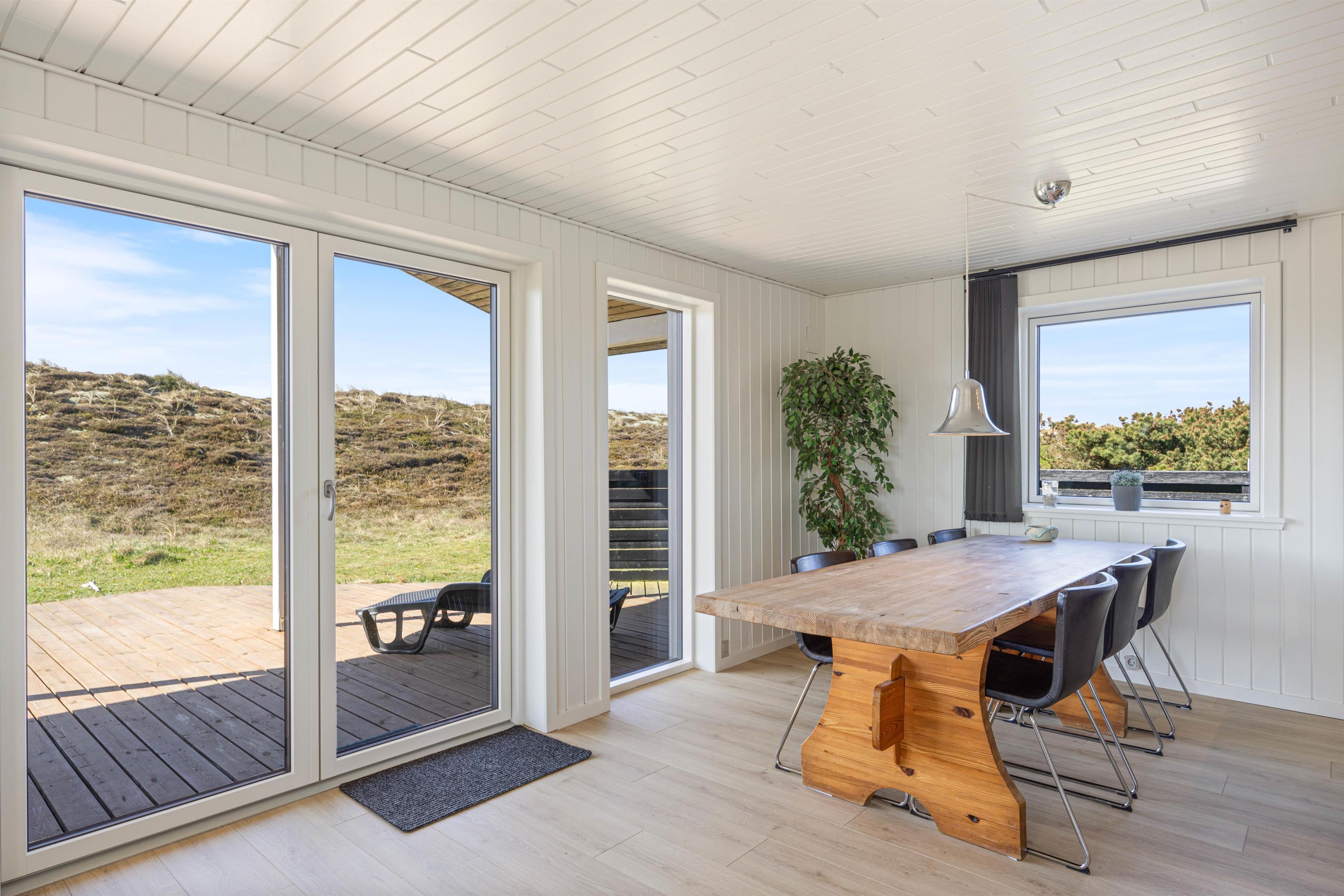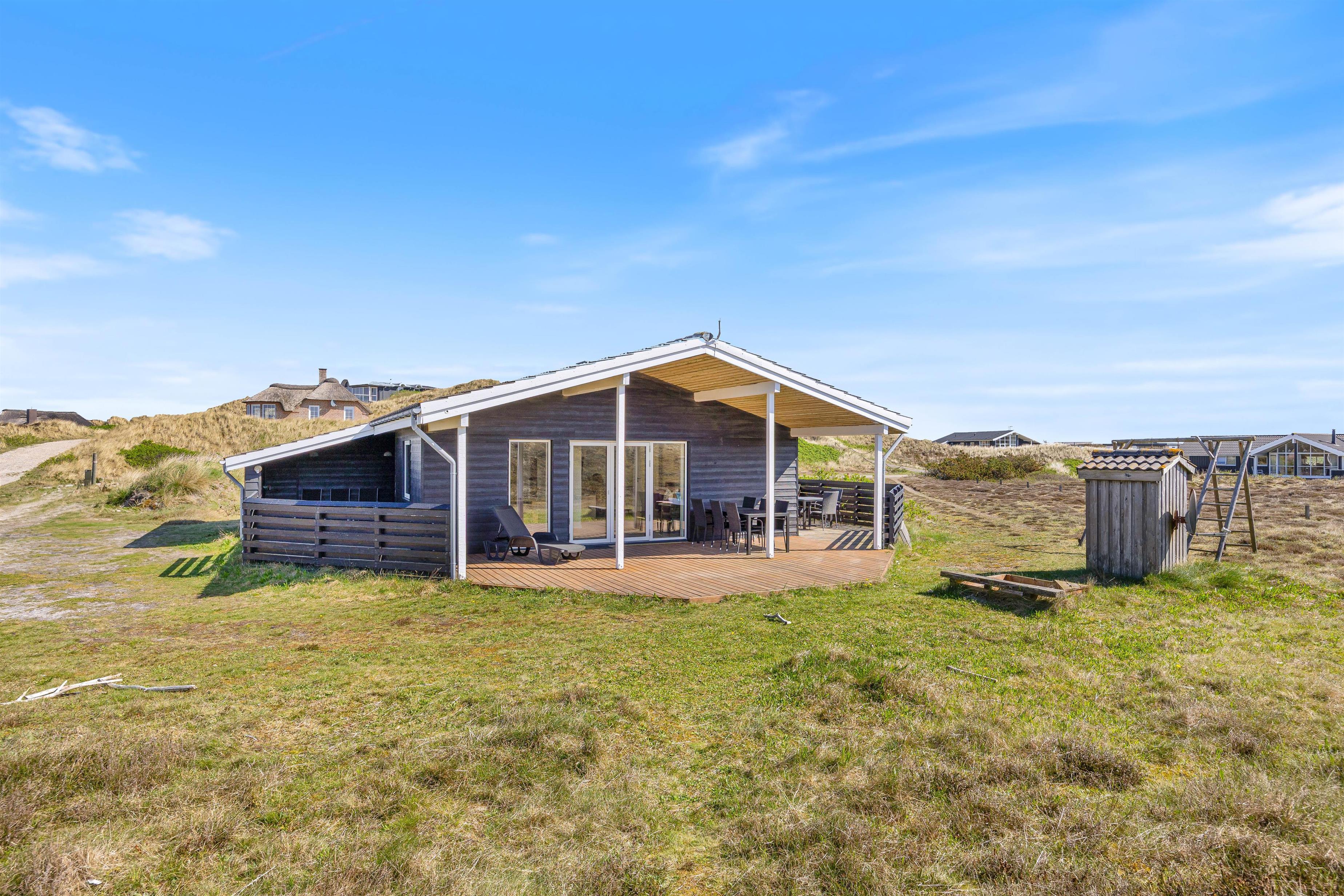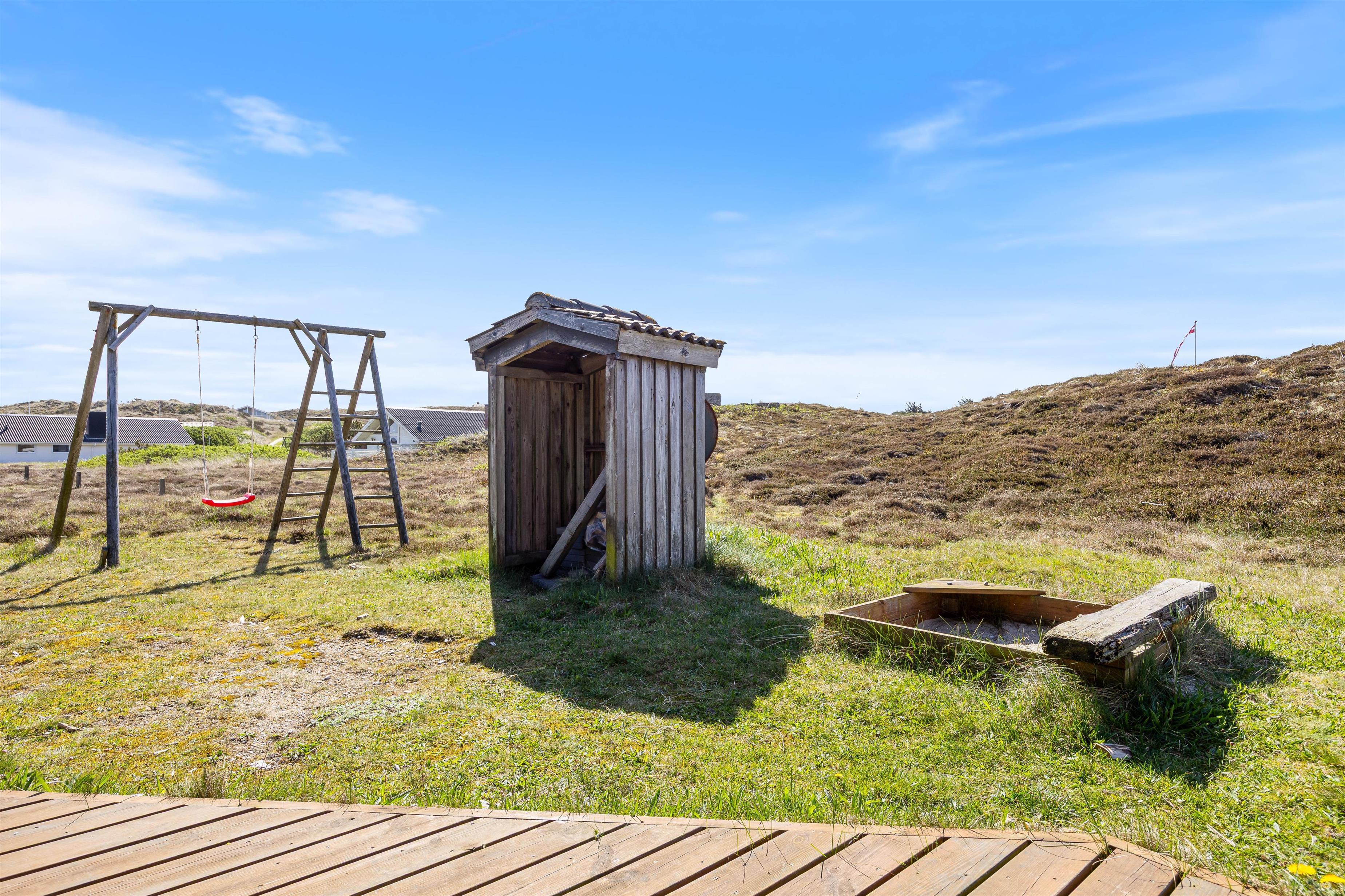 Den store delvis overdækkede terrasse giver jer mulighed for at sidde på begge sider af huset. Derved kan I altid finde det helt perfekte læ-sted, hvor I kan nyde solen og den fantastiske udsigt ud over klitlandskabet. På grunden er der både sandkasse og gynger til de mindste. En perfekt afslutning på en skøn feriedag kan være en hyggelig og veltilberedt grillmiddag på terrassen – imens I ser solen gå ned bag klitterne og farve himmelen purpurrød.