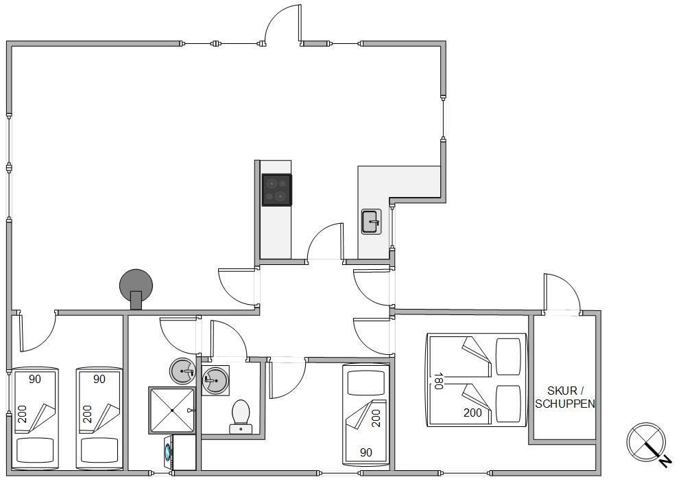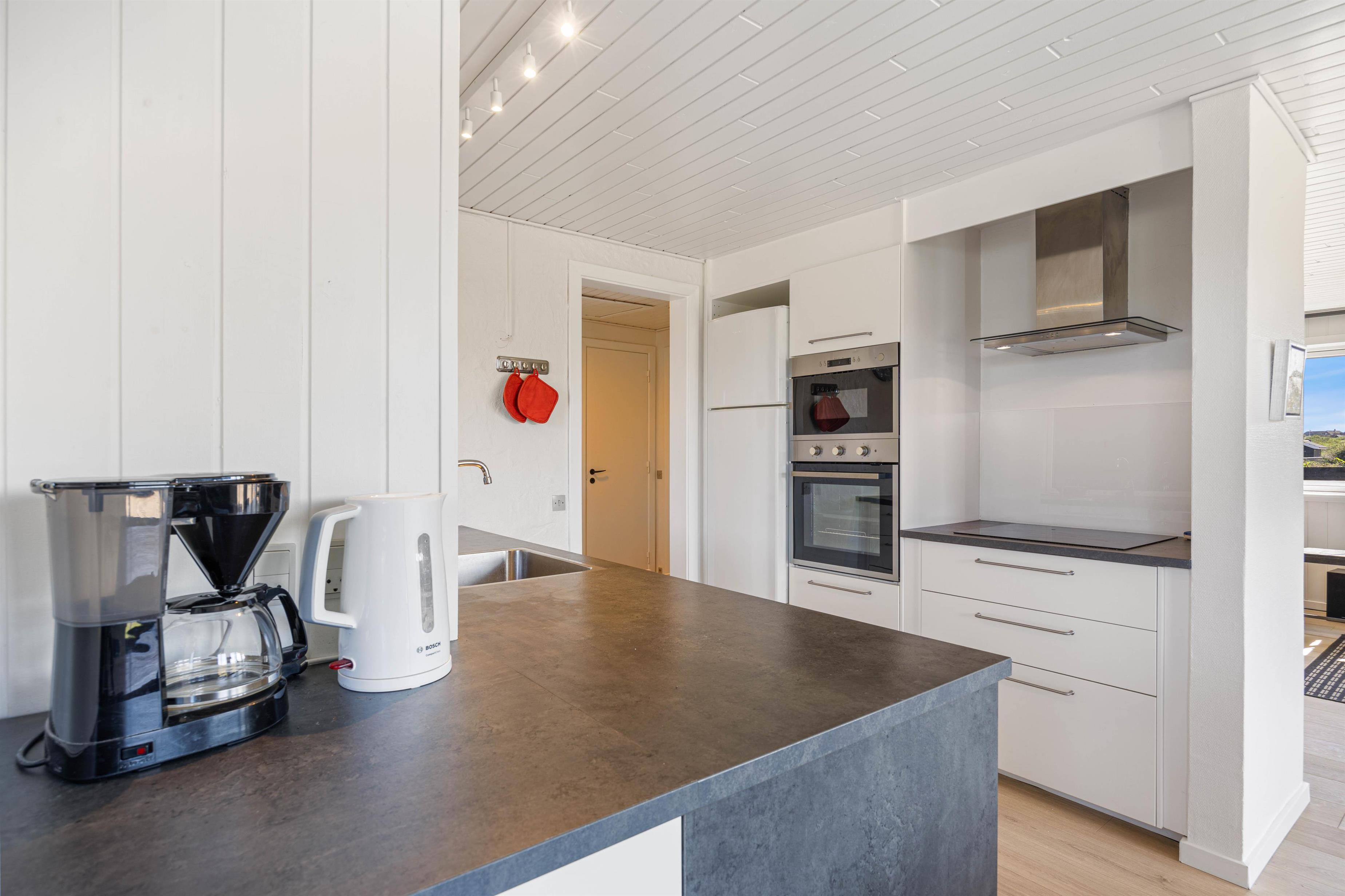 Feriehuset på Skodbjergevej 21 er blevet renoveret i 2019 med bl.a. nyt køkken, så hele rummet står virkelig flot og lyst. Det lækre køkken er udstyret med både opvaskemaskine og mikroovn. Fra køkkenalrummet er der åben ind til den hyggelige stue, som giver anledning til mange skønne stunder med familie og venner. Her kan I hygge jer med en god film i den store hjørnesofa mens brændeovnen knitrer i baggrunden.