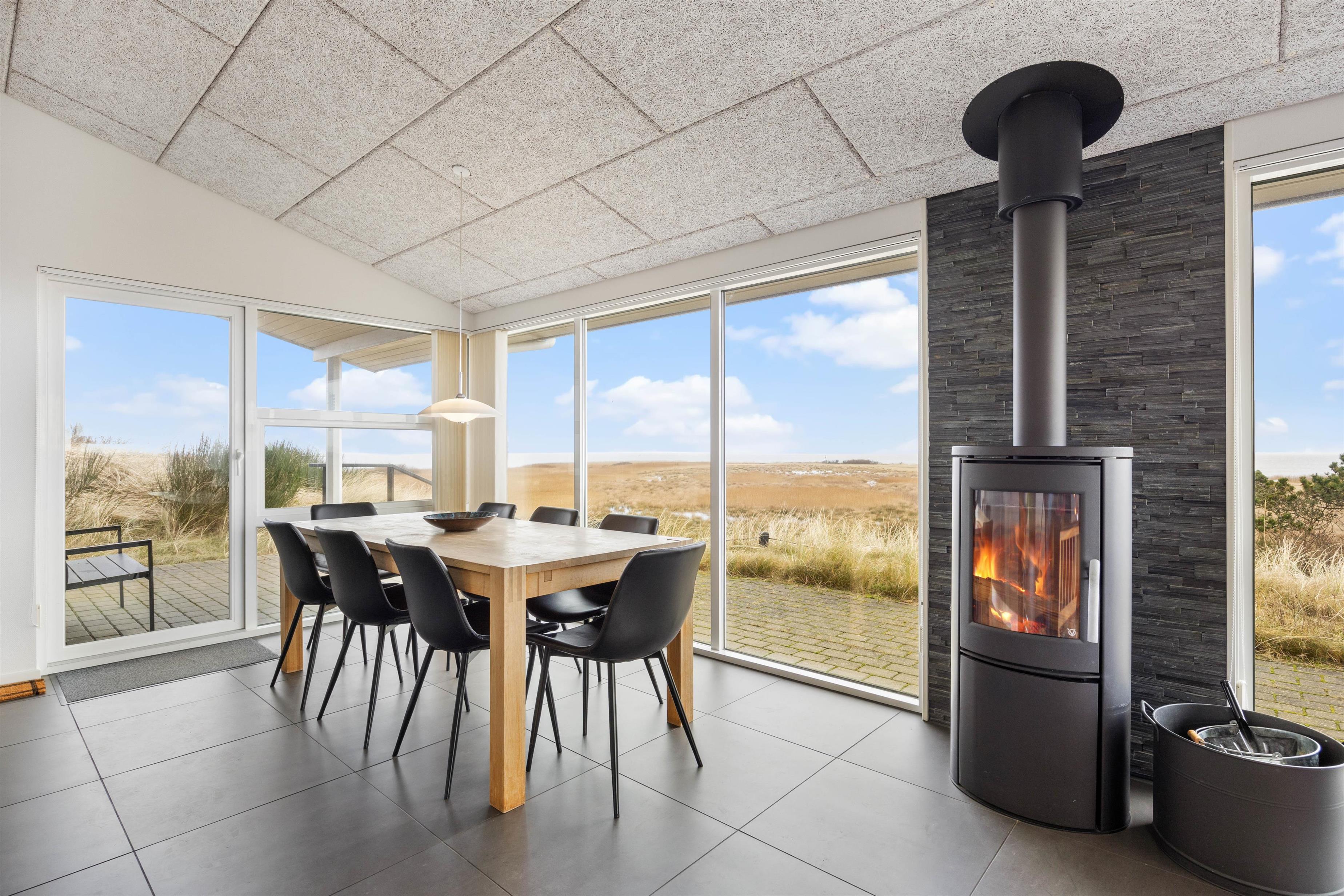 Feriehuset ligger dejligt roligt placeret ved Ringkøbing Fjord, der har en smuk natur og et rigt fugleliv. På østsiden har I en stor, skøn og åben terrasse, hvor I kan sidde ude og nyde det gode vejr og de smukke omgivelser. En del af terrassen er overdækket, en hyggekrog perfekt til en frokost i skyggen eller de lune grillaftener.