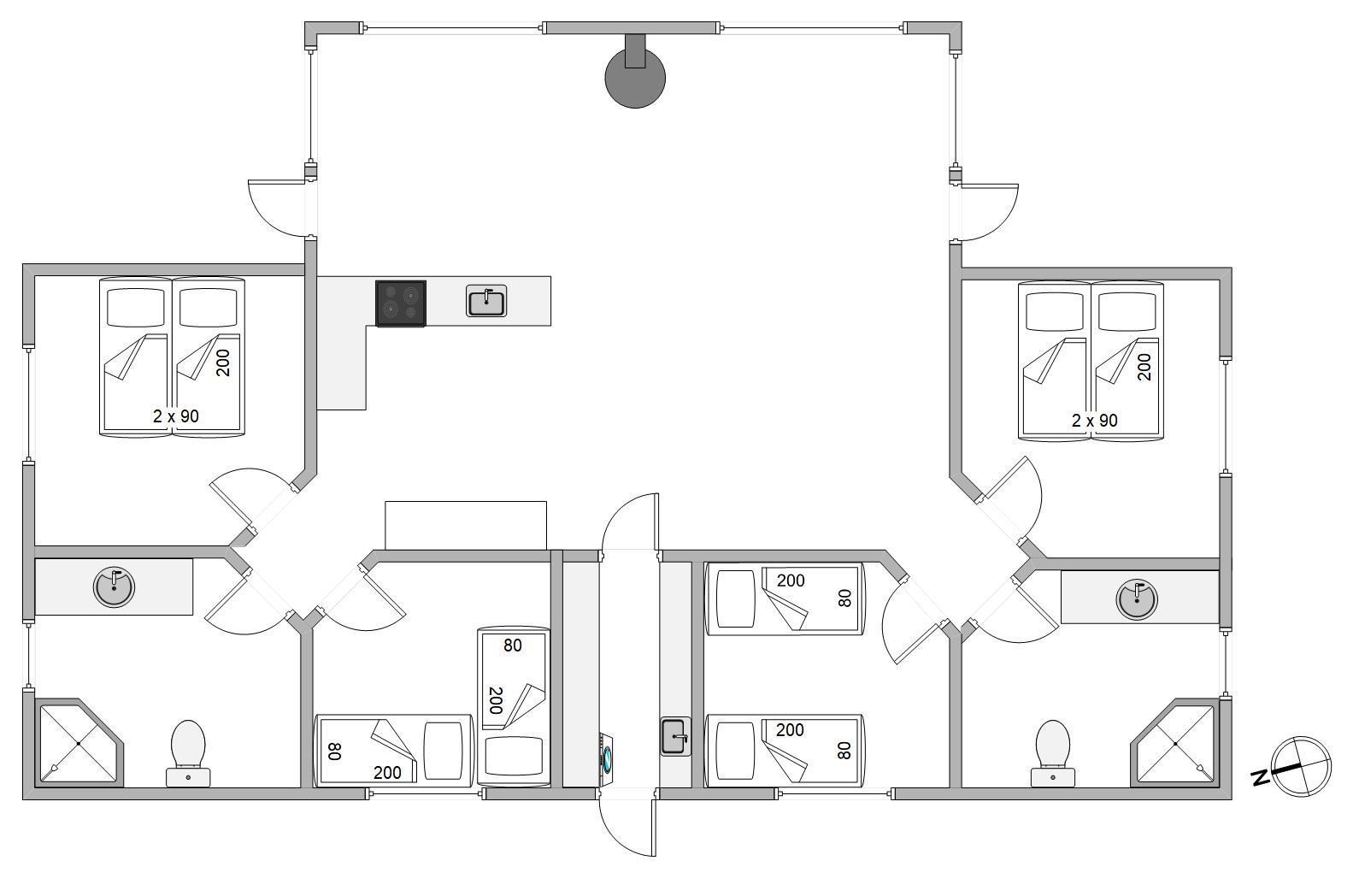 På Hareklit 22 kan op mod 8 feriegæster holde ferie i smukke omgivelser. Sommerhuset er hyggeligt og ikke mindst praktiske indrettet i rene farvenuancer og højt til loftet. Der er 2 badeværelser til i alt 4 soverum, hvilket især er rart, når man holder ferie med den store familie eller vennerne.