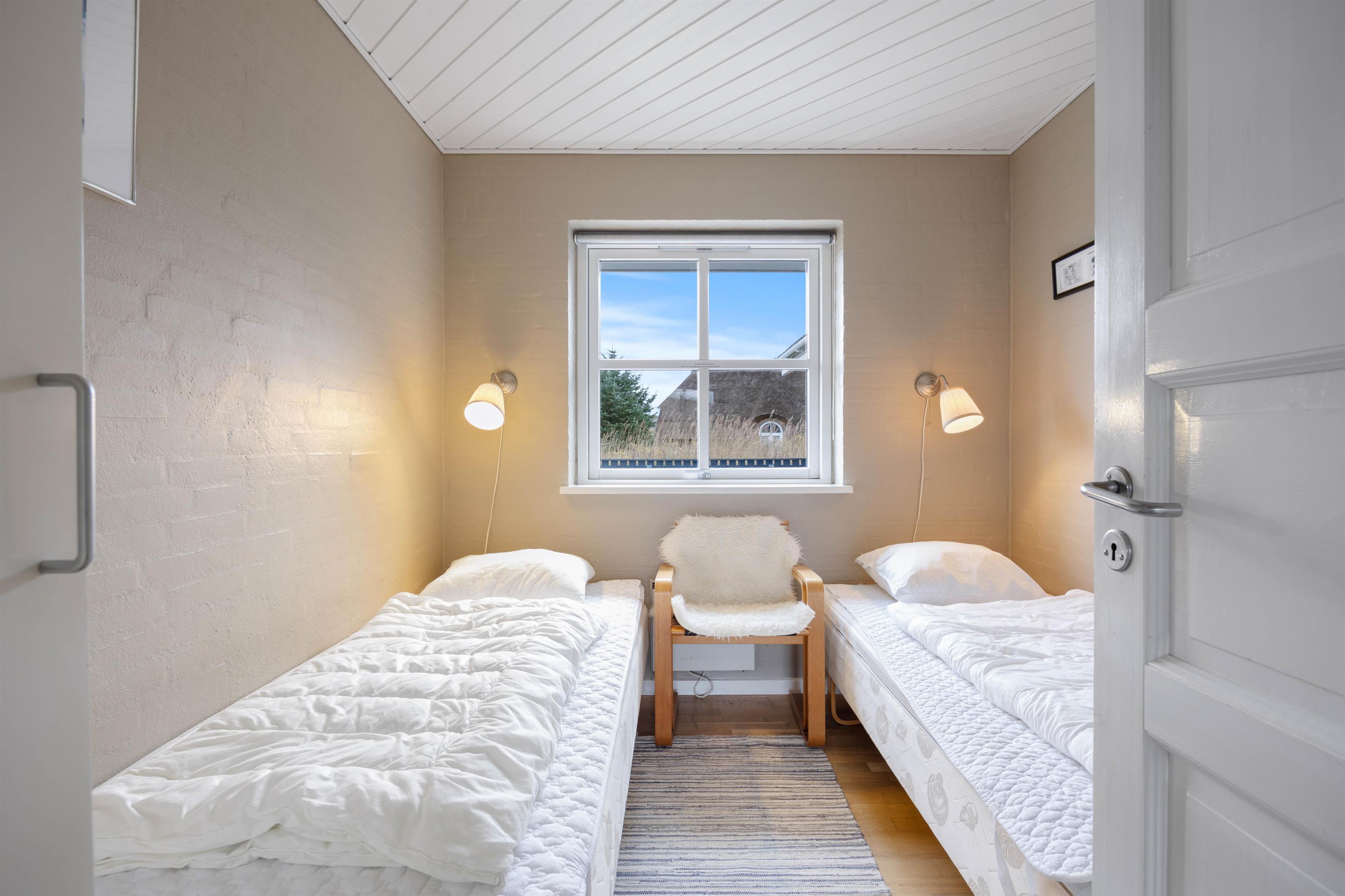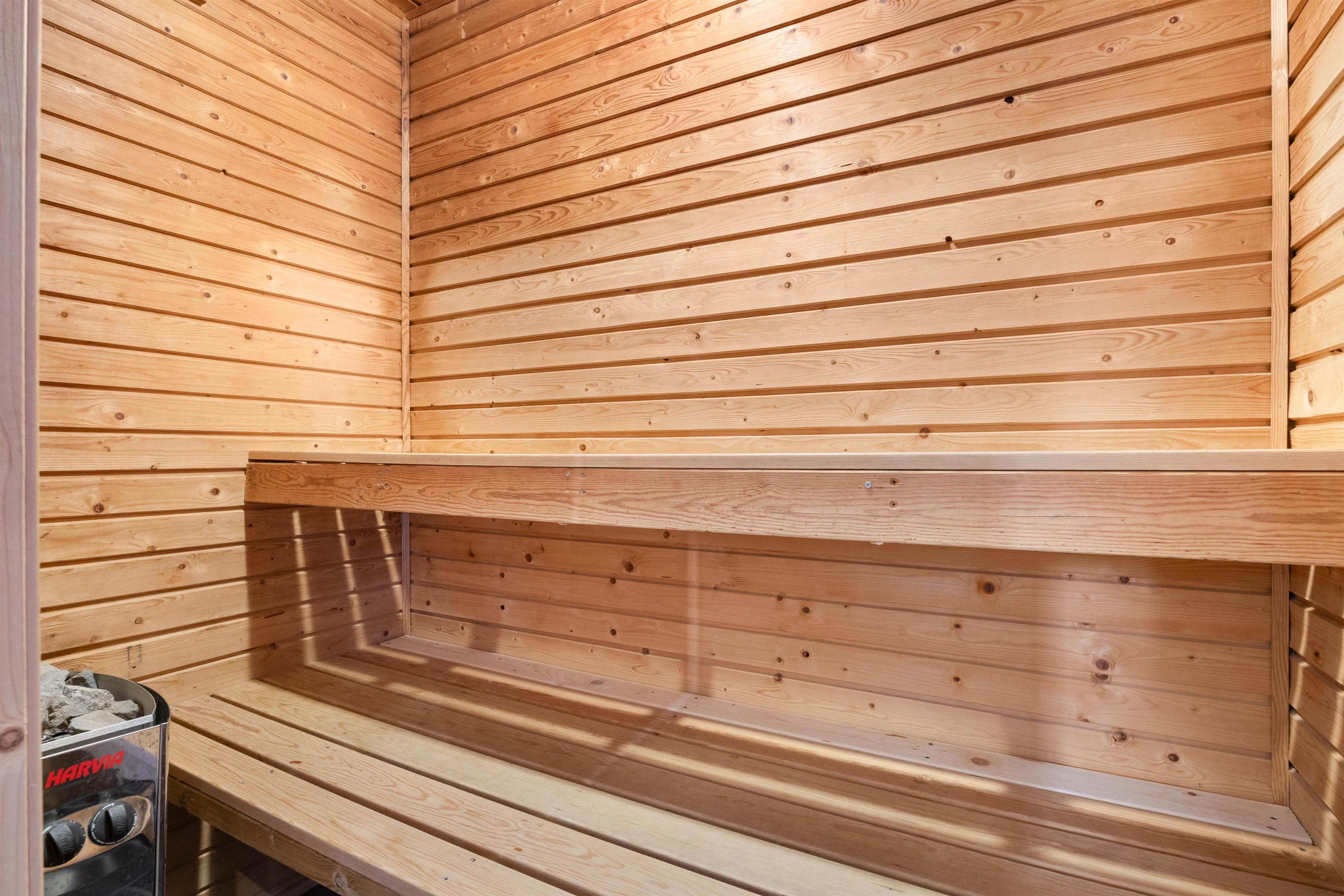 Til sommerhuset hører en dejlig wellness-afdeling med en 12 m2 stor pool, spabad og sauna. Ungerne vil elske at hoppe og lege i vandet dagen lang. Her skal I hverken tænke bekymre jer om vejret eller vind. Huset har to badeværelser og fire, gode soverum og er dermed et ideelt hus for to familier, der rejser sammen.