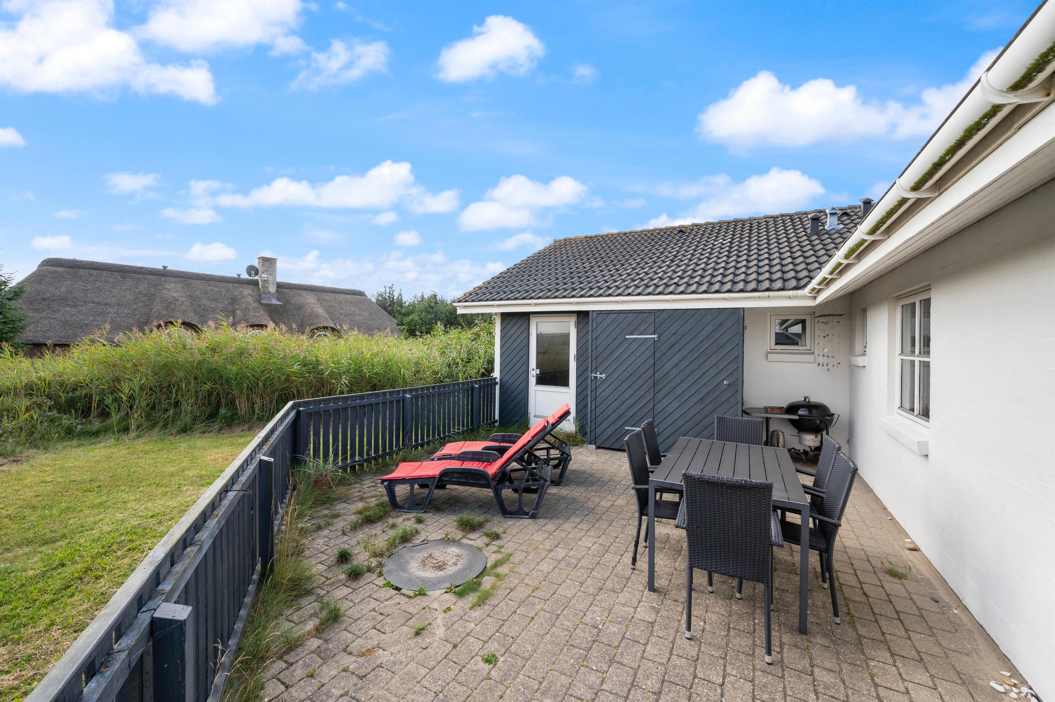 Fra opholdsstuen er der direkte adgang til en dejlig stor terrasse. Terrassen er lukket, så den er ideel til mindre børne eller hunde. Huset ligger samtidig i et dejligt, naturskønt område, som har meget at byde på. Her kan I gå lange ture i den friske luft, tage til vandet og gå langs stranden. Hvis vejret driller, er det oplagt at tage enten en tur til Hvide Sande eller Nymindegab, hvor der venter jer et hav af spændende aktiviteter, gode butikker og lækre spisest