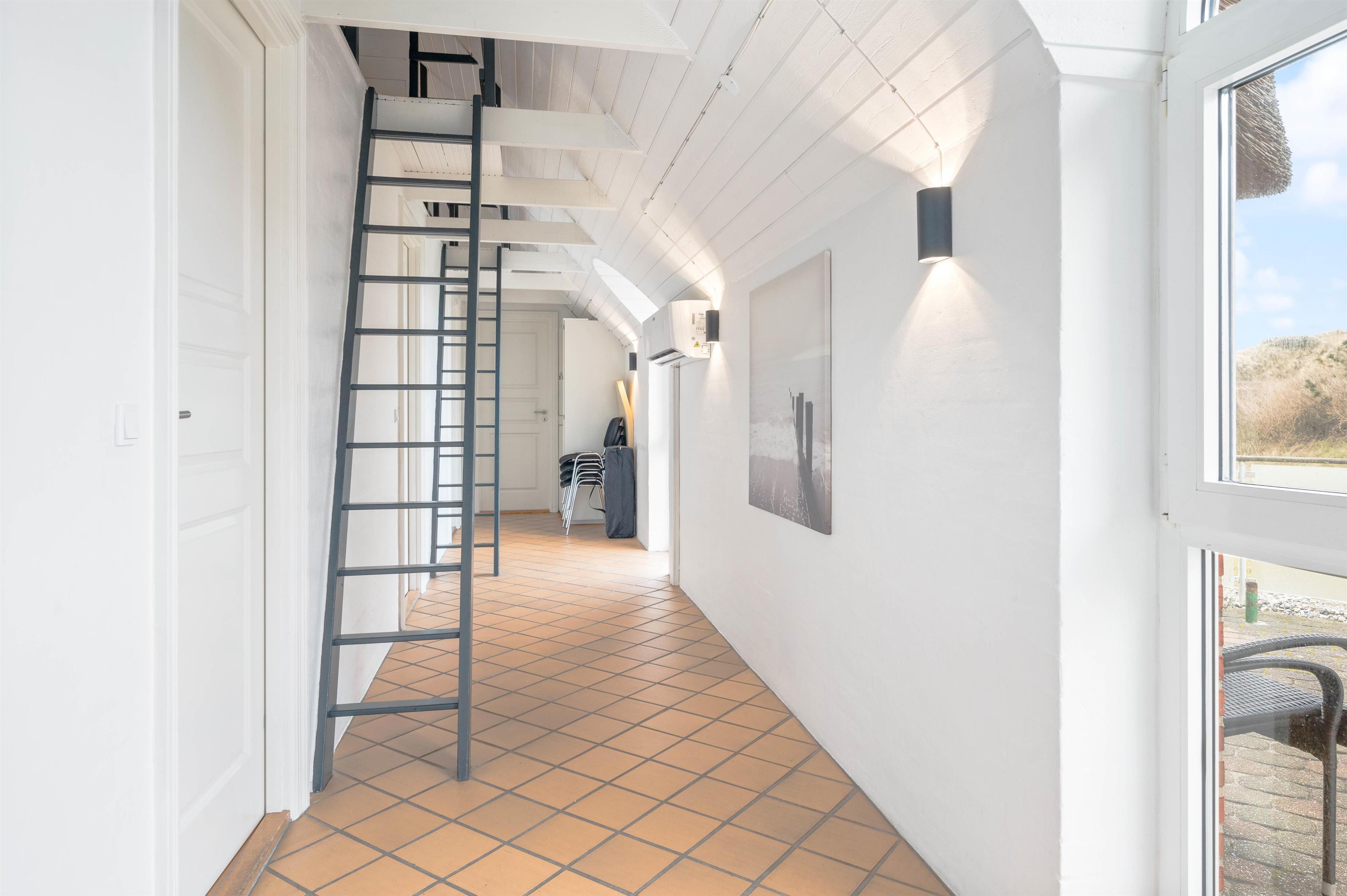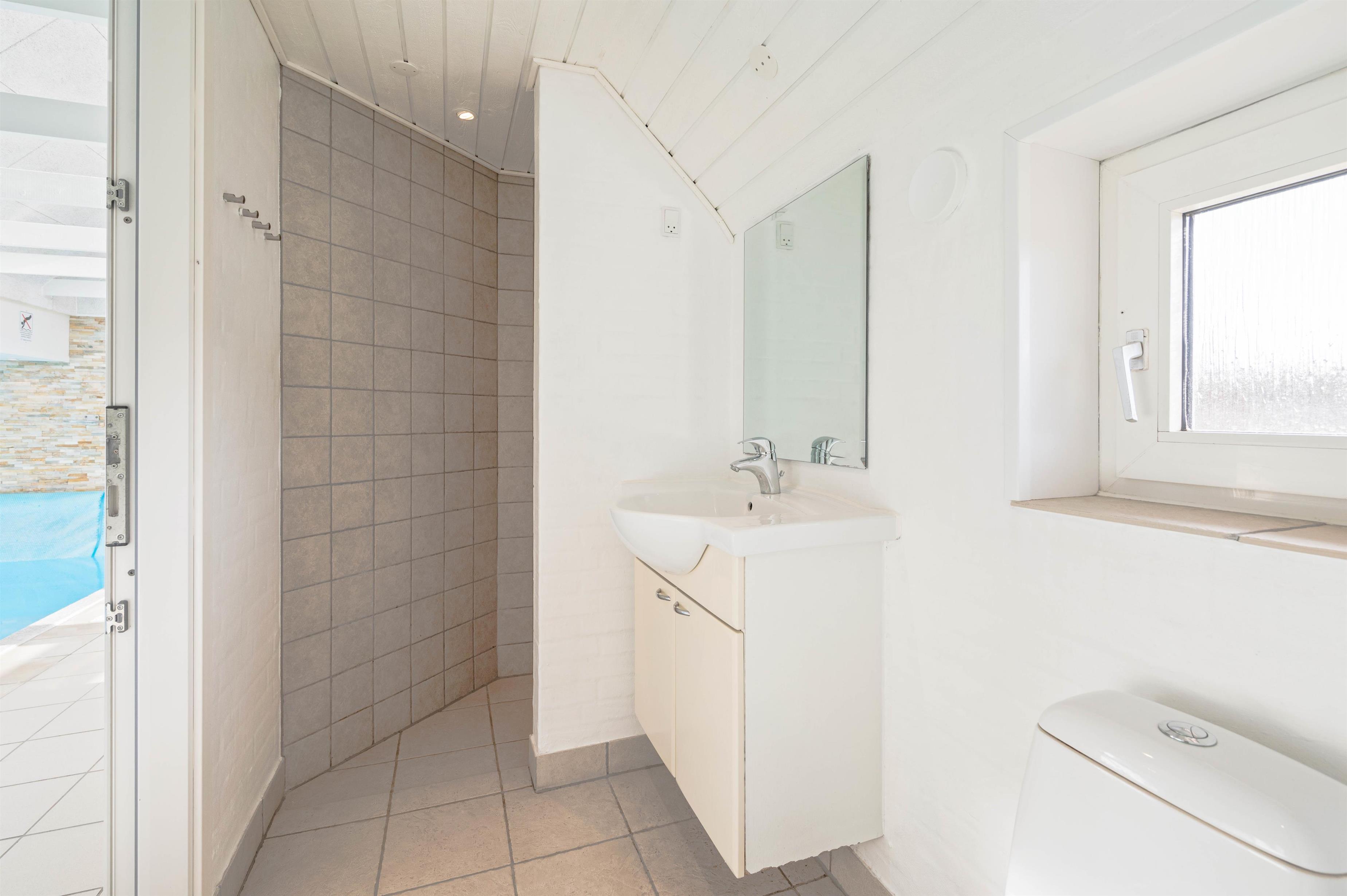 Den 25 kvadratmeter store pool ligger i forbindelse med stuen og med udgang til terrassen. Har I ikke lyst til en morgendukkert i Vesterhavet, har I her muligheden for at starte dagen i poolen, der er udstyret med en svømmetræner. Senere på dagen, mens børnene boltrer sig i vandet med leg, kan de voksne slappe af i spa og sauna, der begge er at finde i pool området.