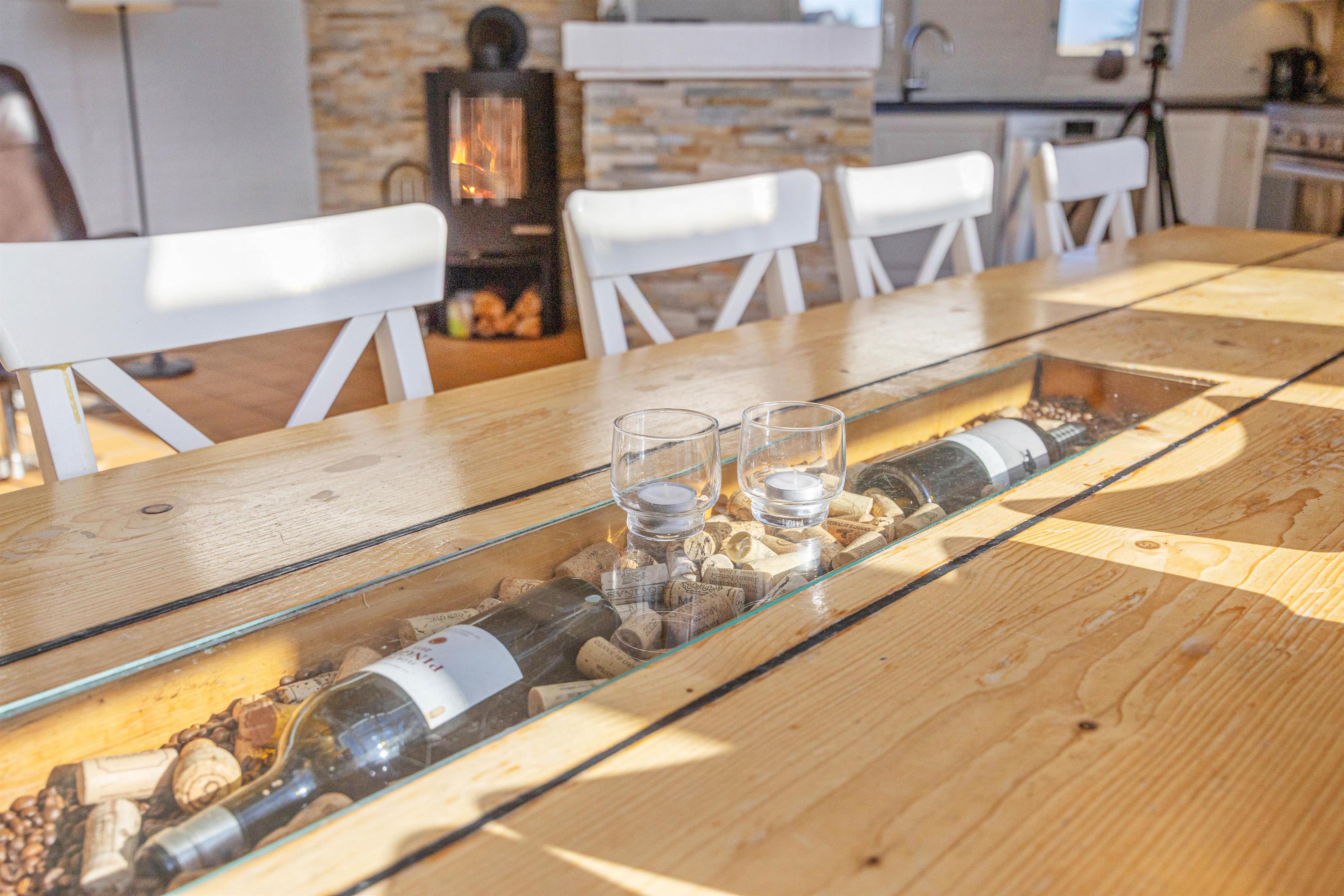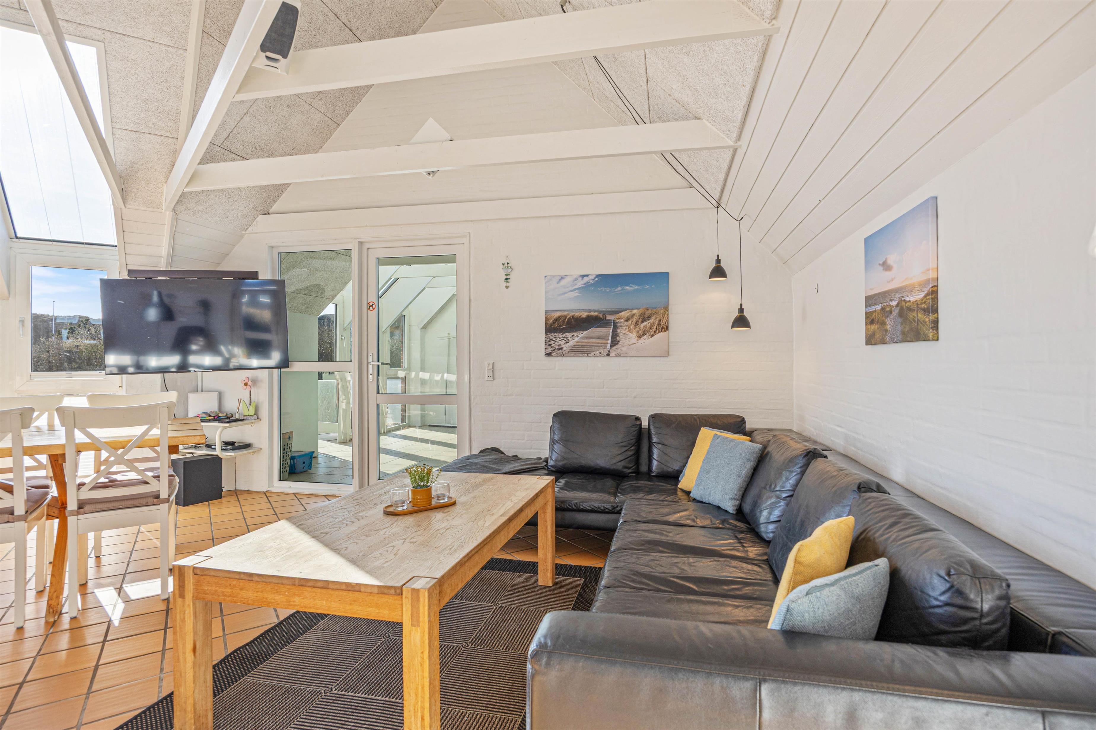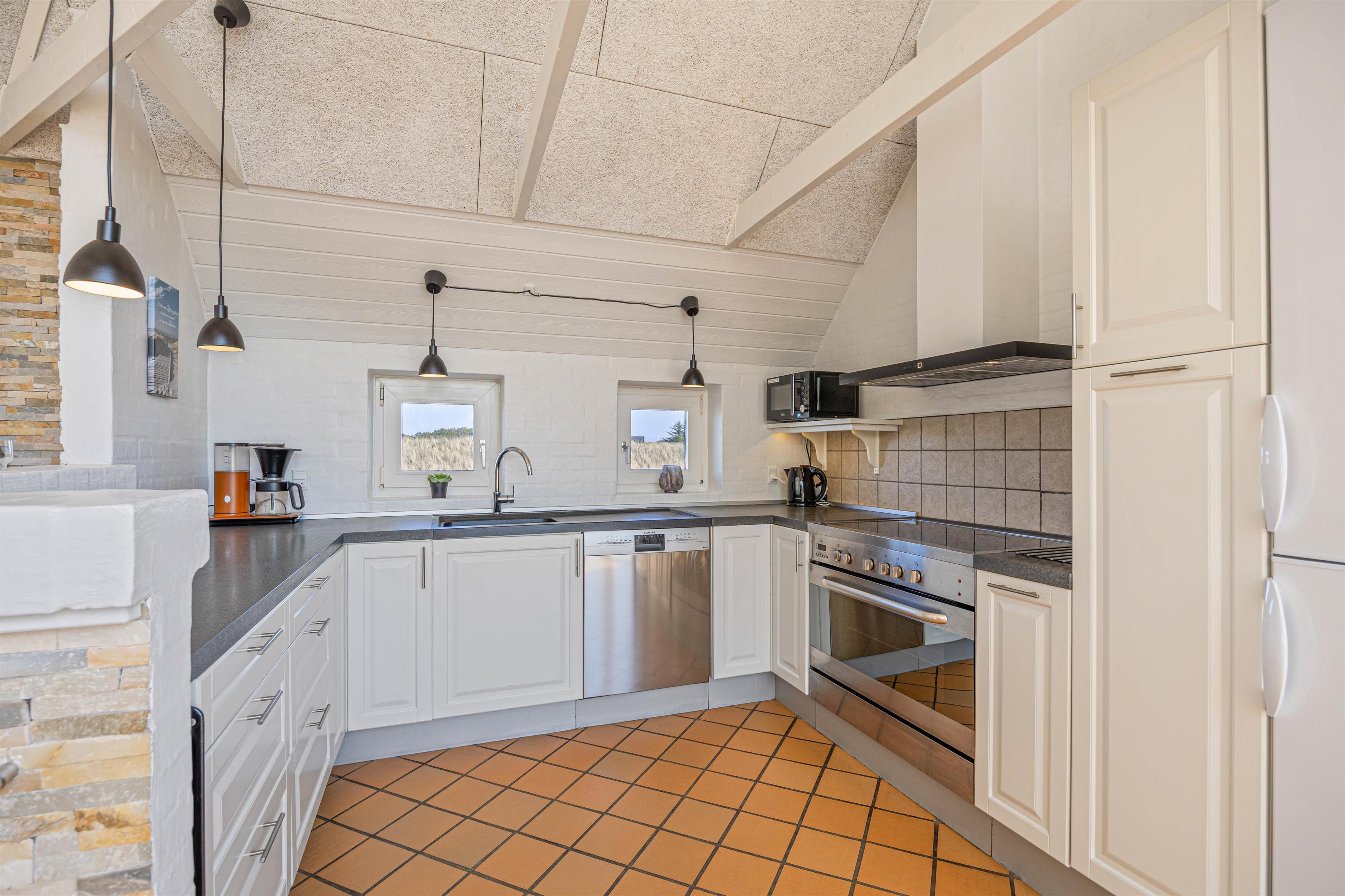Sommerhuset er renoveret i 2019, og de moderne rammer på sommerhusets 200 kvadratmeter giver god plads og anledning til leg, hygge og afslapning i alle tænkelige afskygninger. Det store veludstyrede køkken med opvaskemaskine, mikroovn og induktionskomfur ligger i åben forbindelse med den dejlige stue, der med sin smagfulde indretning tjener som samlingspunkt og indbyder til hygge foran brændeovnen. Året rundt hjælper den energibesparende varmepumpe med at holde en behagelig temperatur, og ligesom husets 2 badeværelser er også stuen udstyret med gulvvarme.