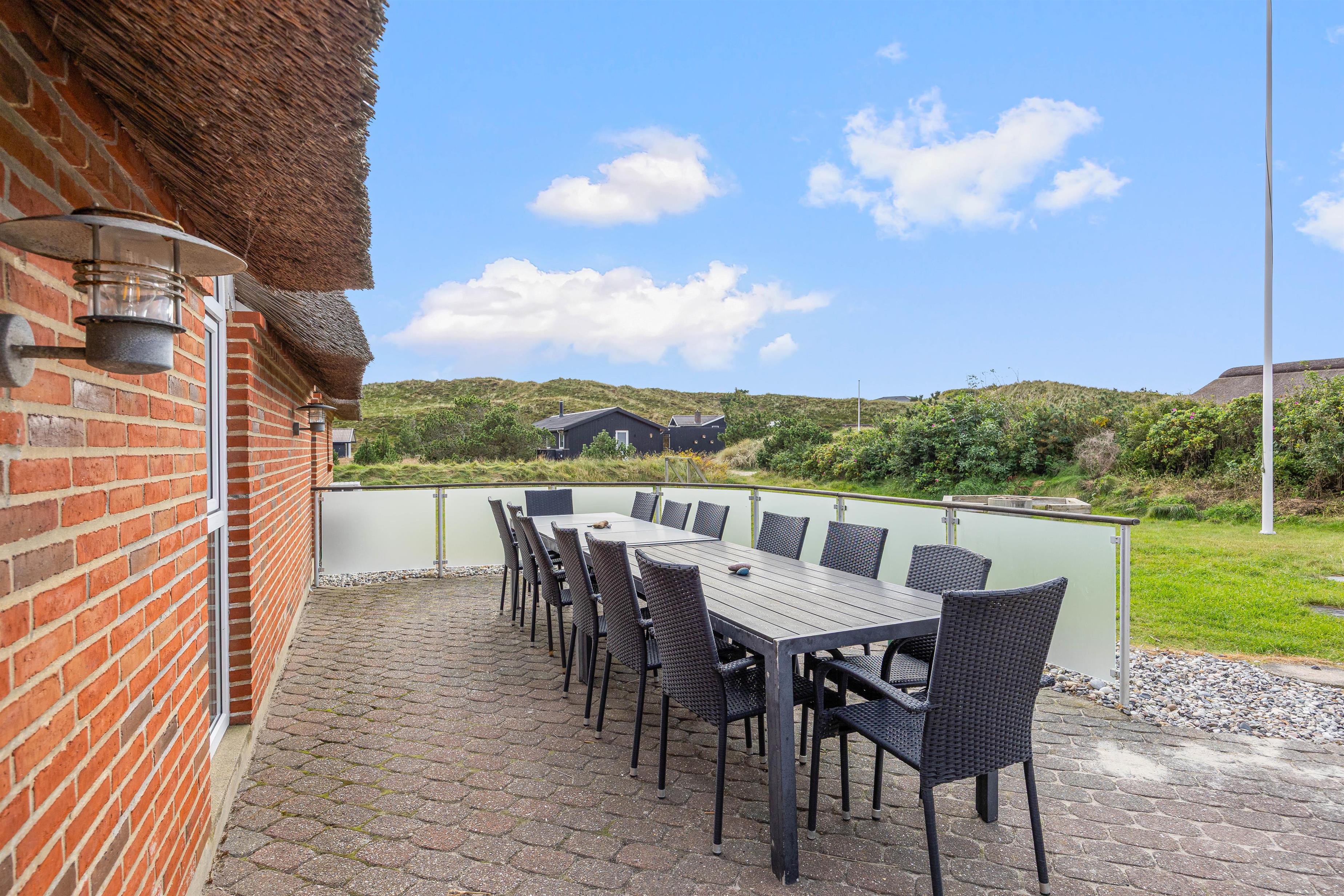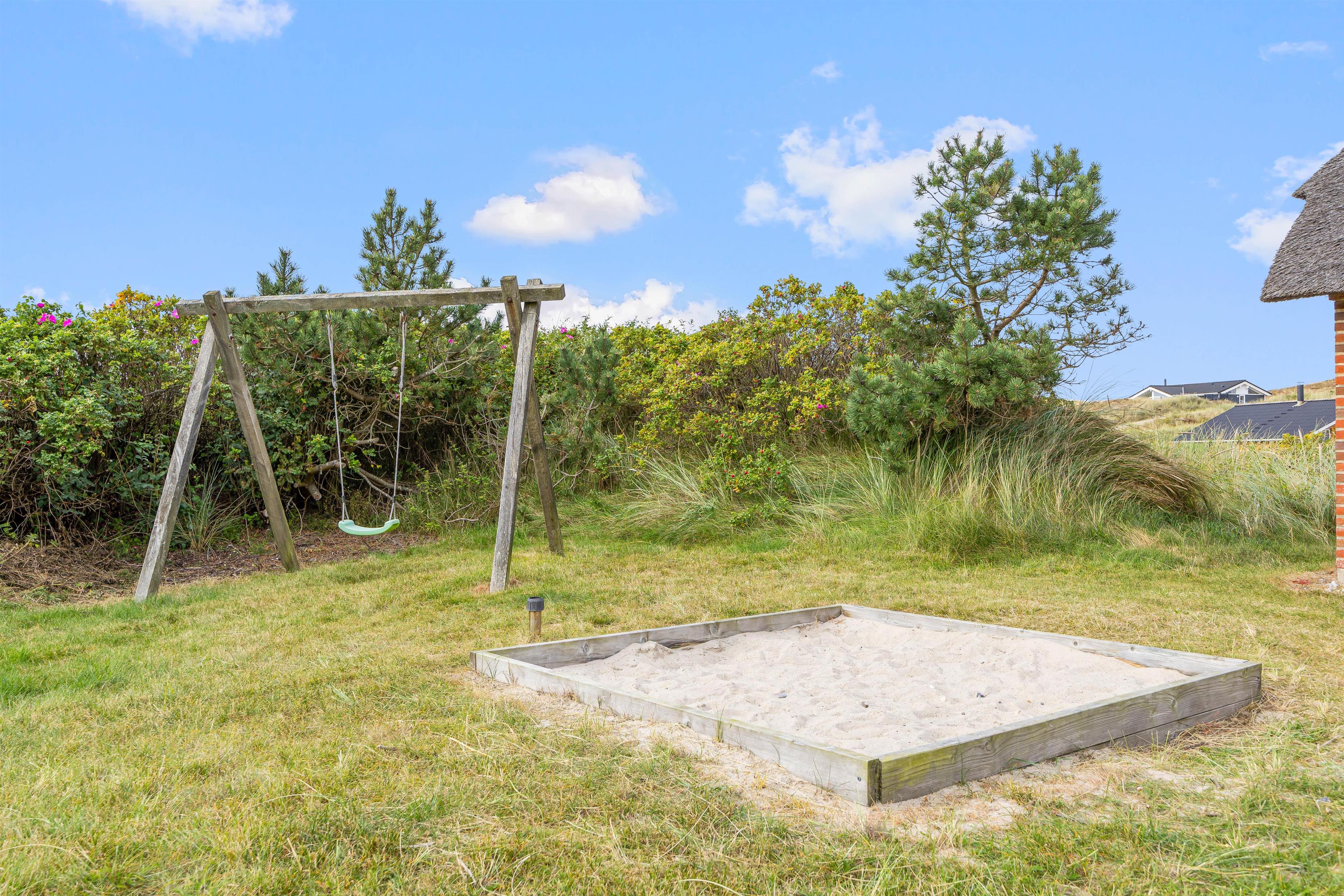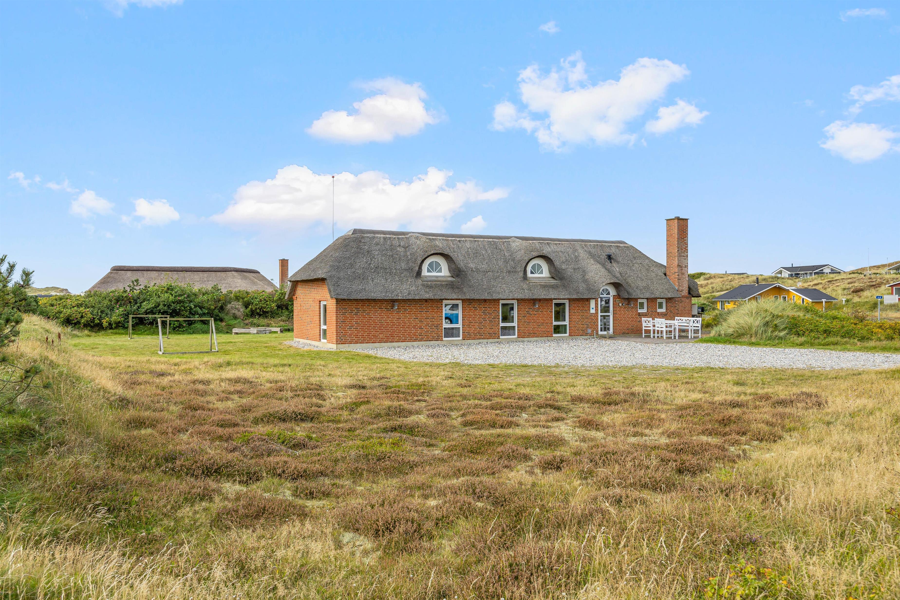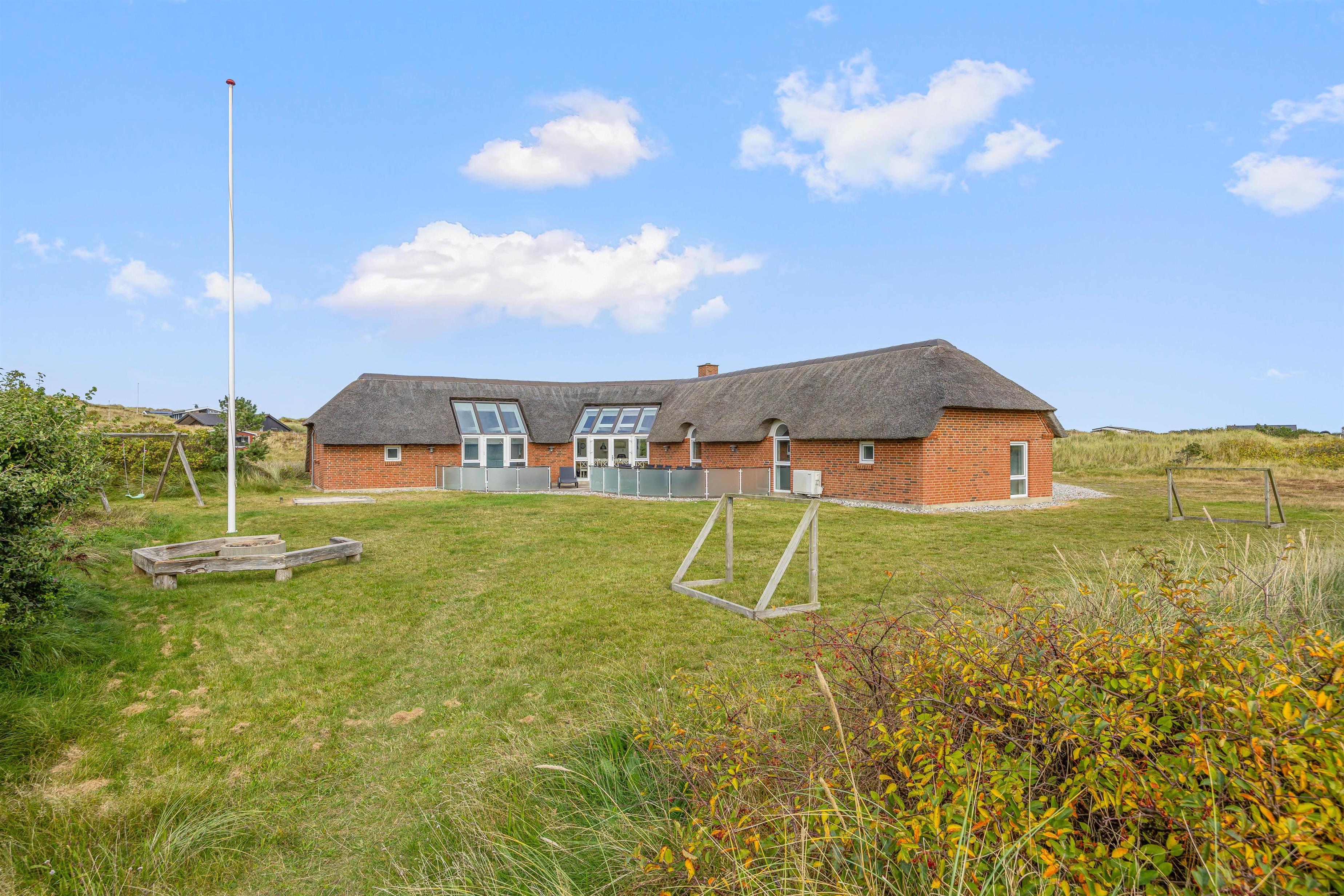 På Skodbjergevej 26 - bare 500 meter fra Vesterhavet - ligger poolhuset til 12 personer. Forkæl jer selv i spa og sauna, mens børnene boltrer sig i husets pool eller hygger sig ude med gynger, sandkasse eller fodboldspil på naturgrundens plæneareal.