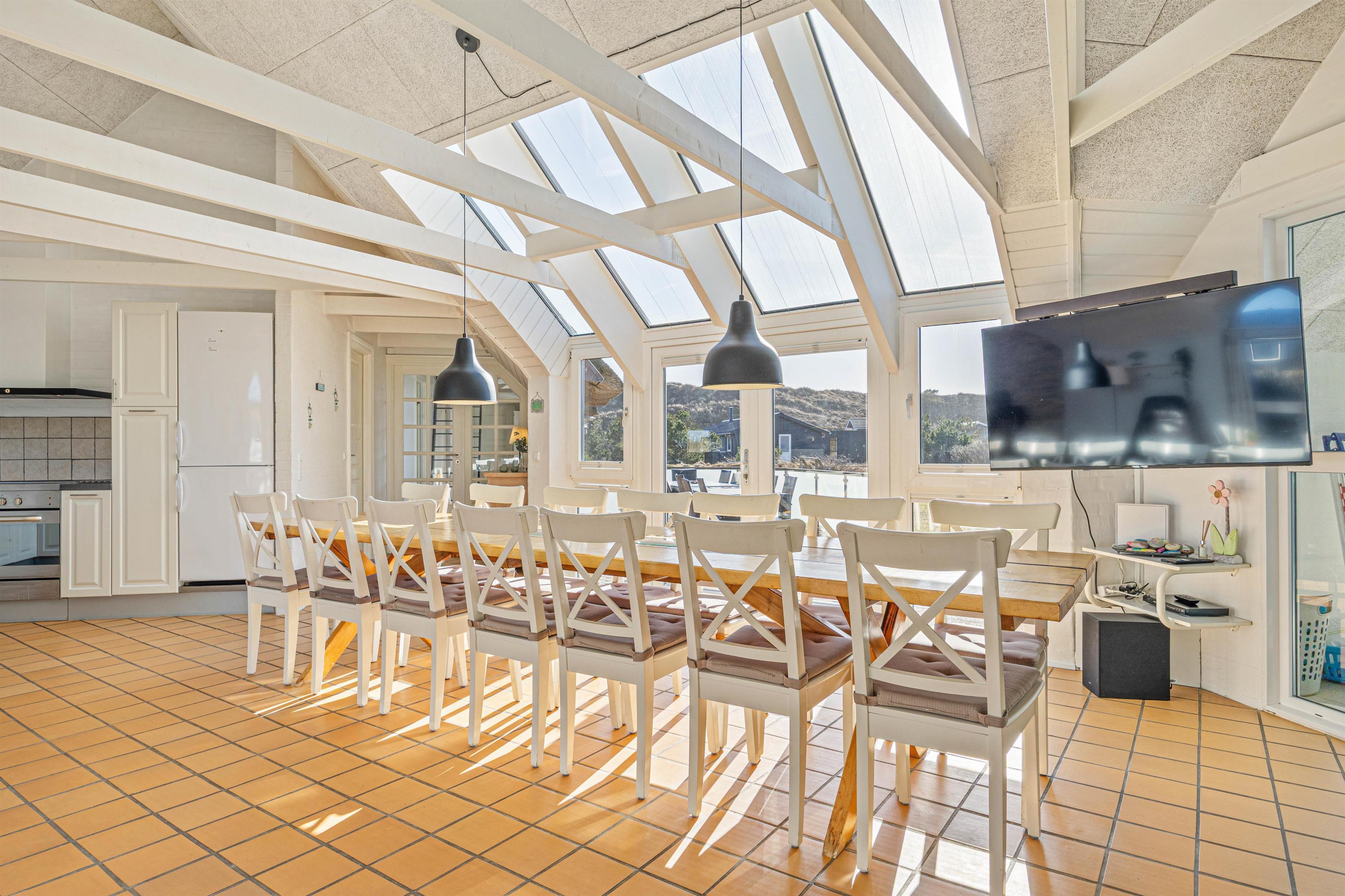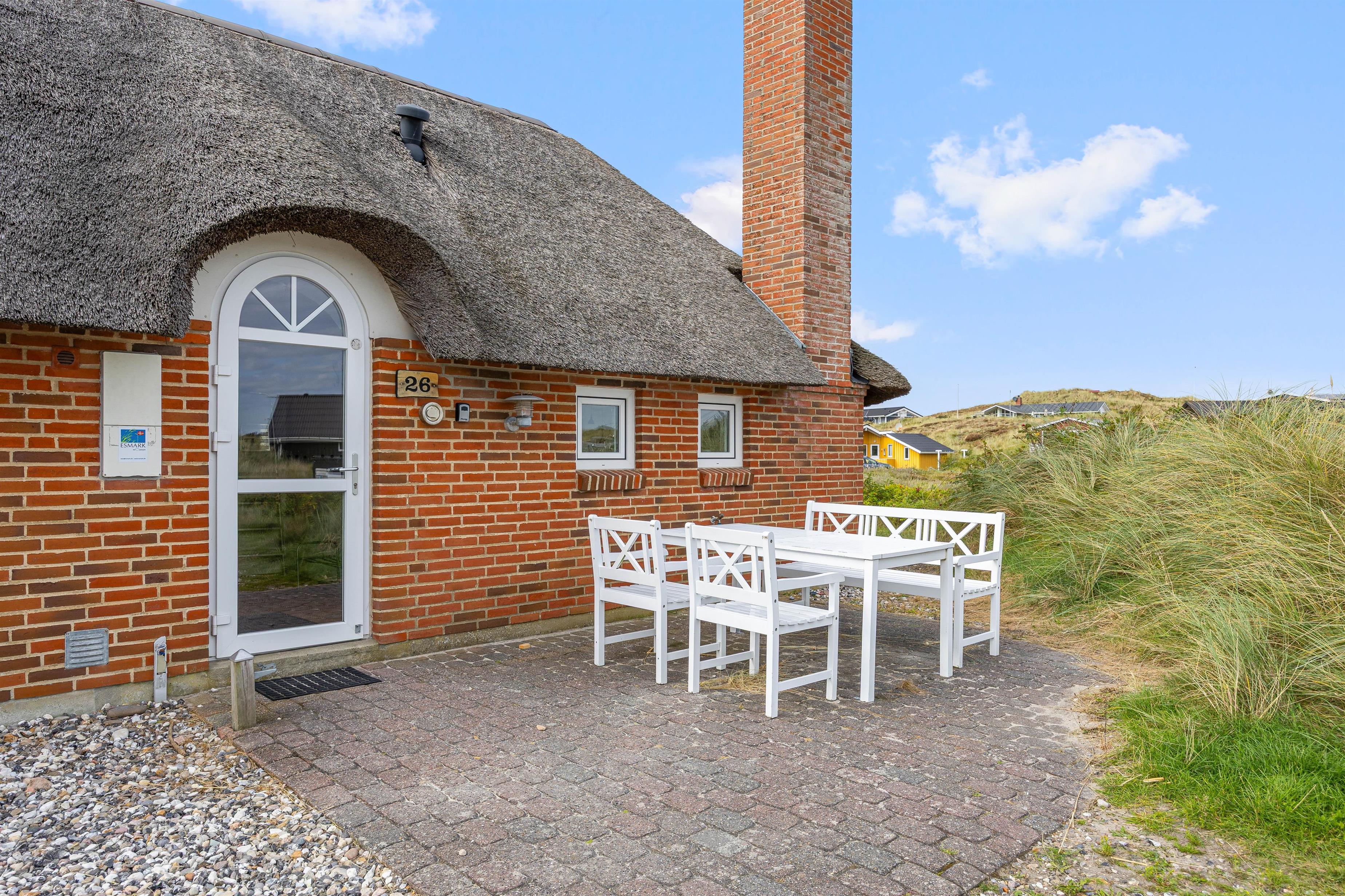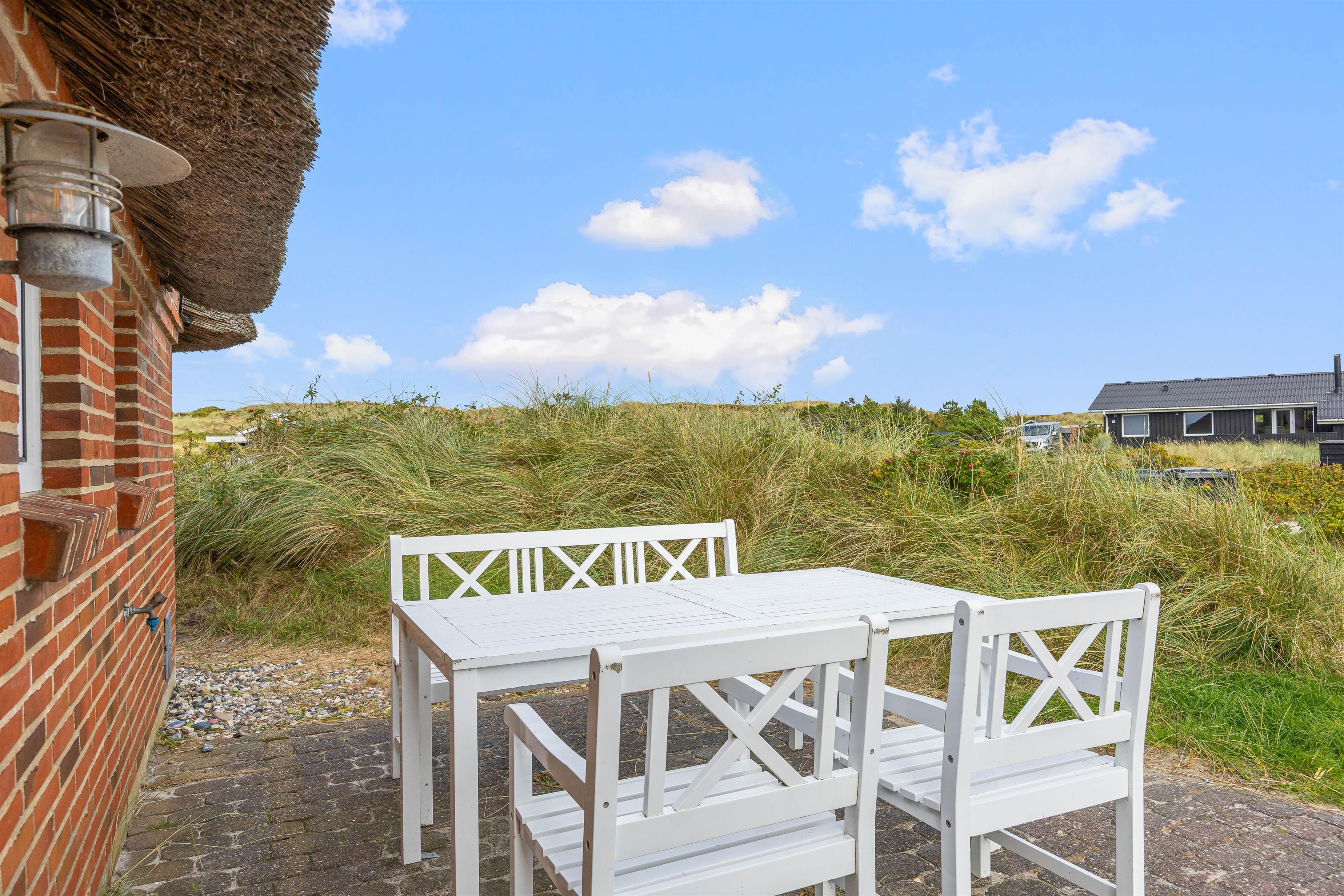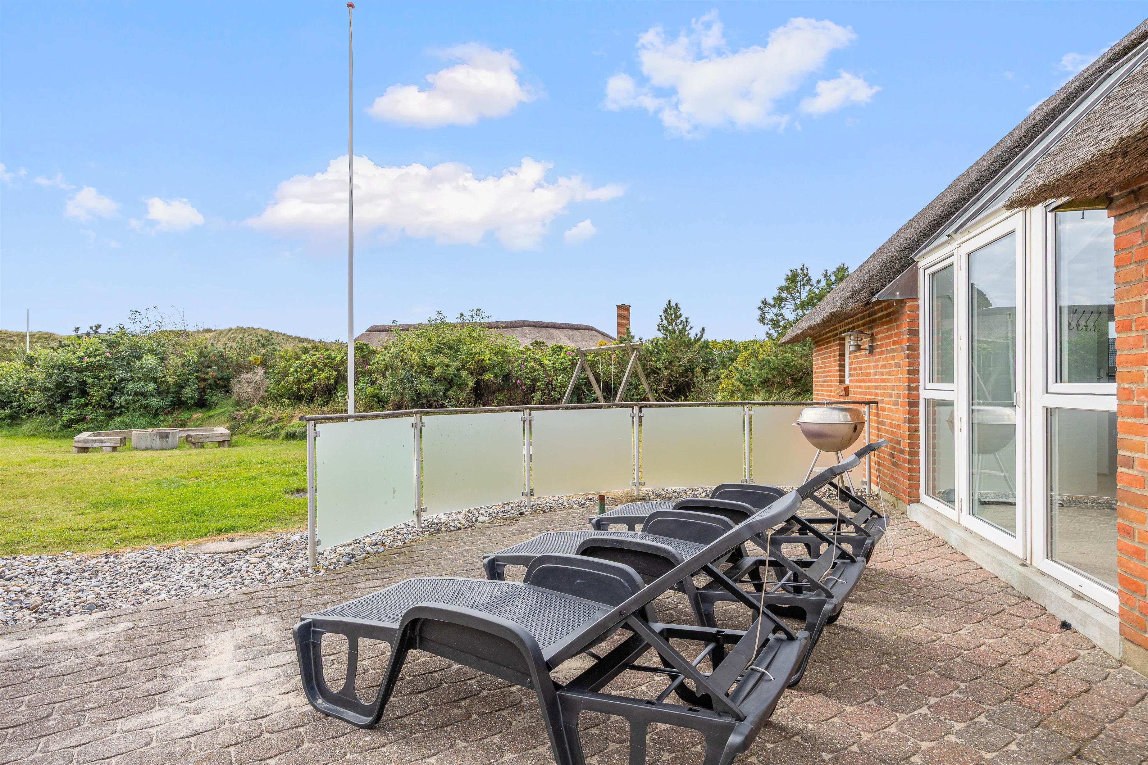 På Skodbjergevej 26 - bare 500 meter fra Vesterhavet - ligger poolhuset til 12 personer. Forkæl jer selv i spa og sauna, mens børnene boltrer sig i husets pool eller hygger sig ude med gynger, sandkasse eller fodboldspil på naturgrundens plæneareal.