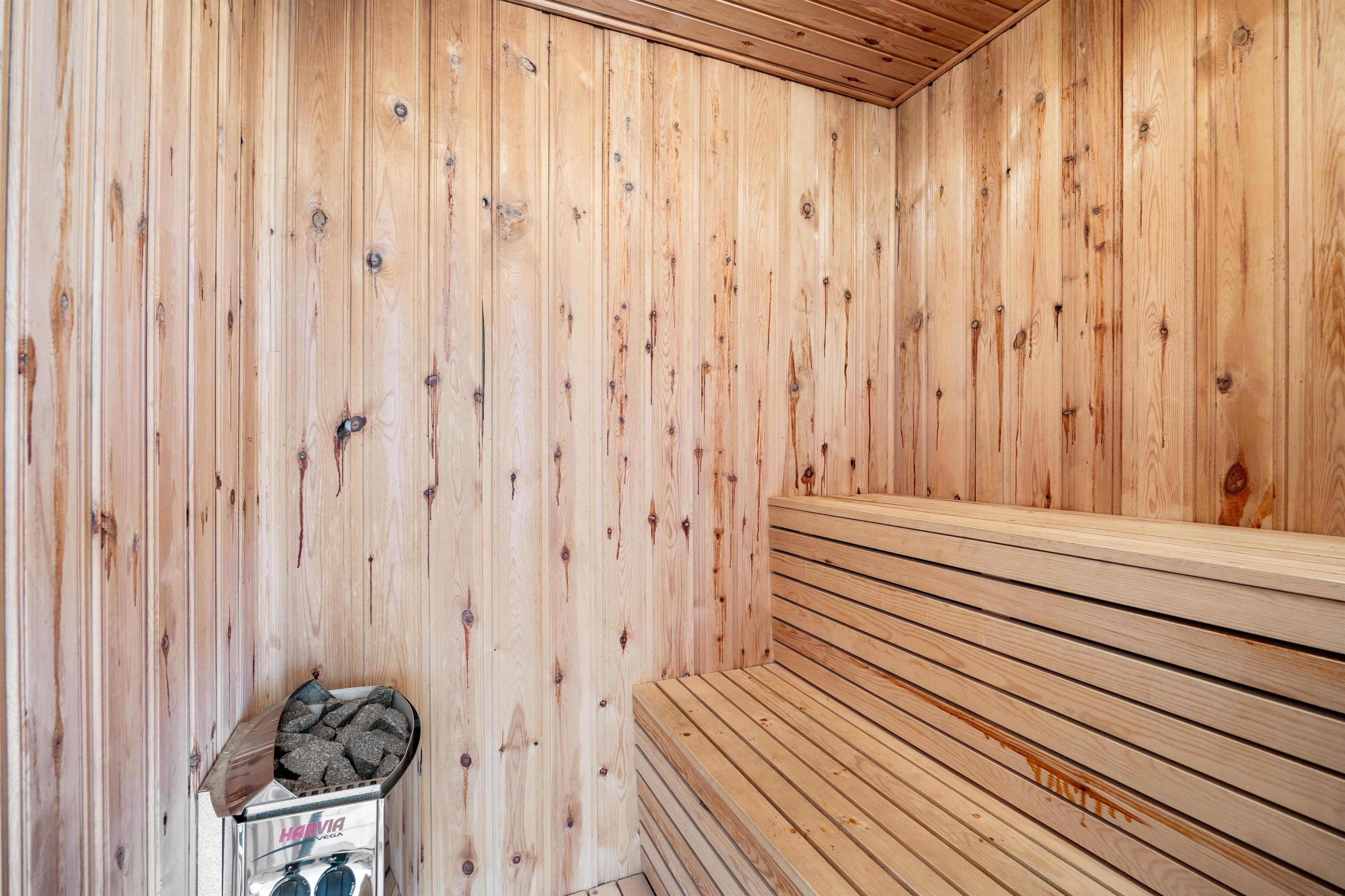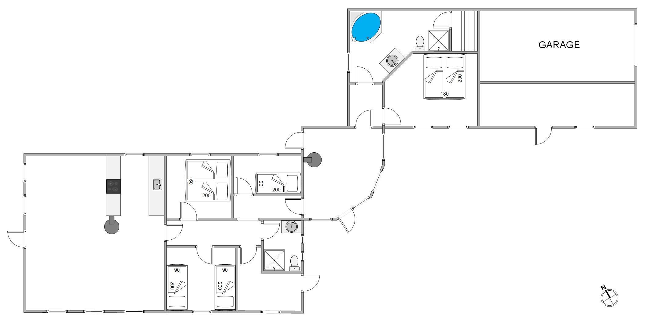 Med hele 2 badeværelser undgår man køen til tandbørstningen. I det ene badeværelse er der desuden en lille wellness afdeling med spa og sauna. Her kan der rigtig slappes af og løsnes op for ømme muskler efter en lang dag i klitterne eller ved stranden.