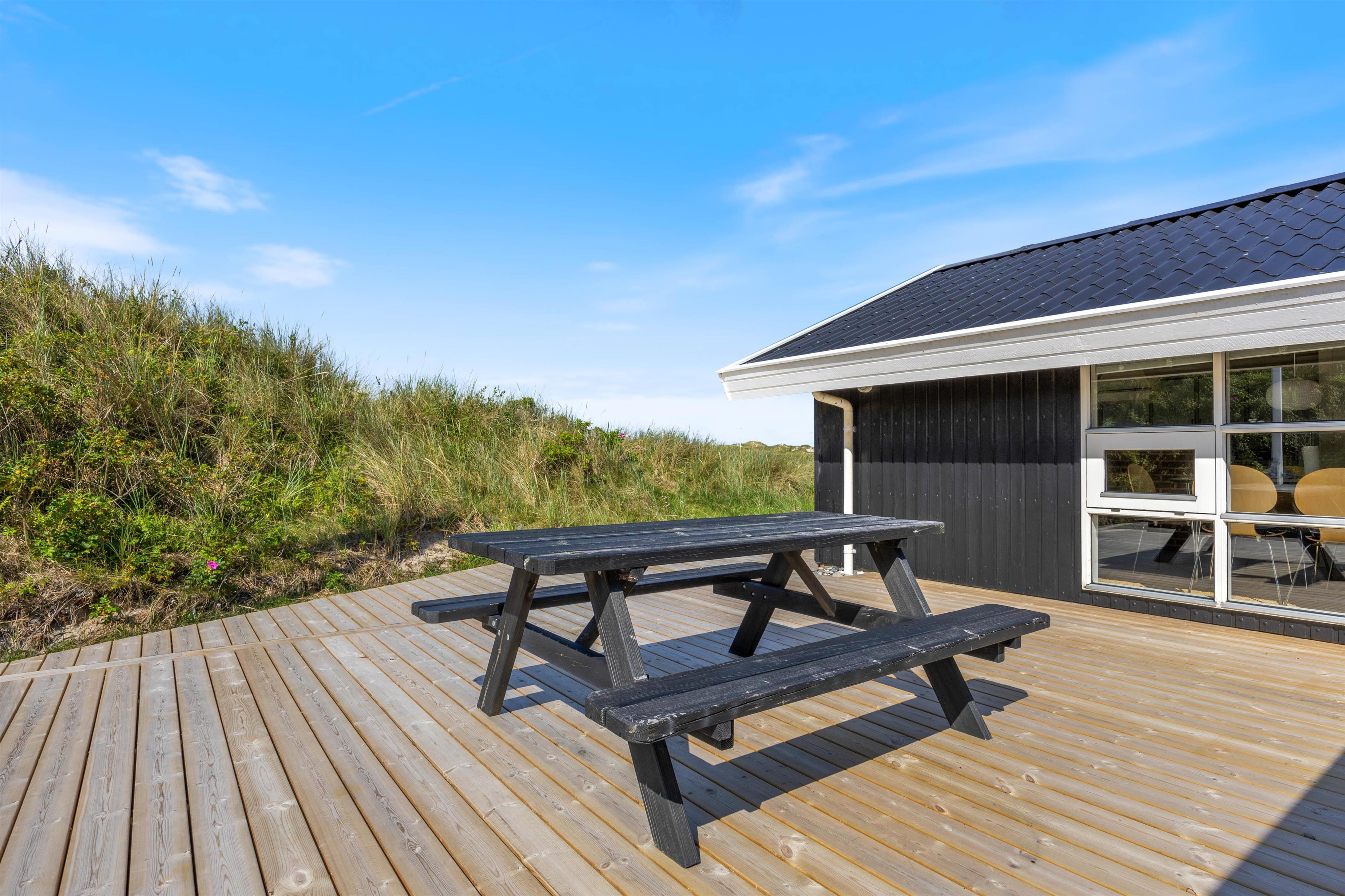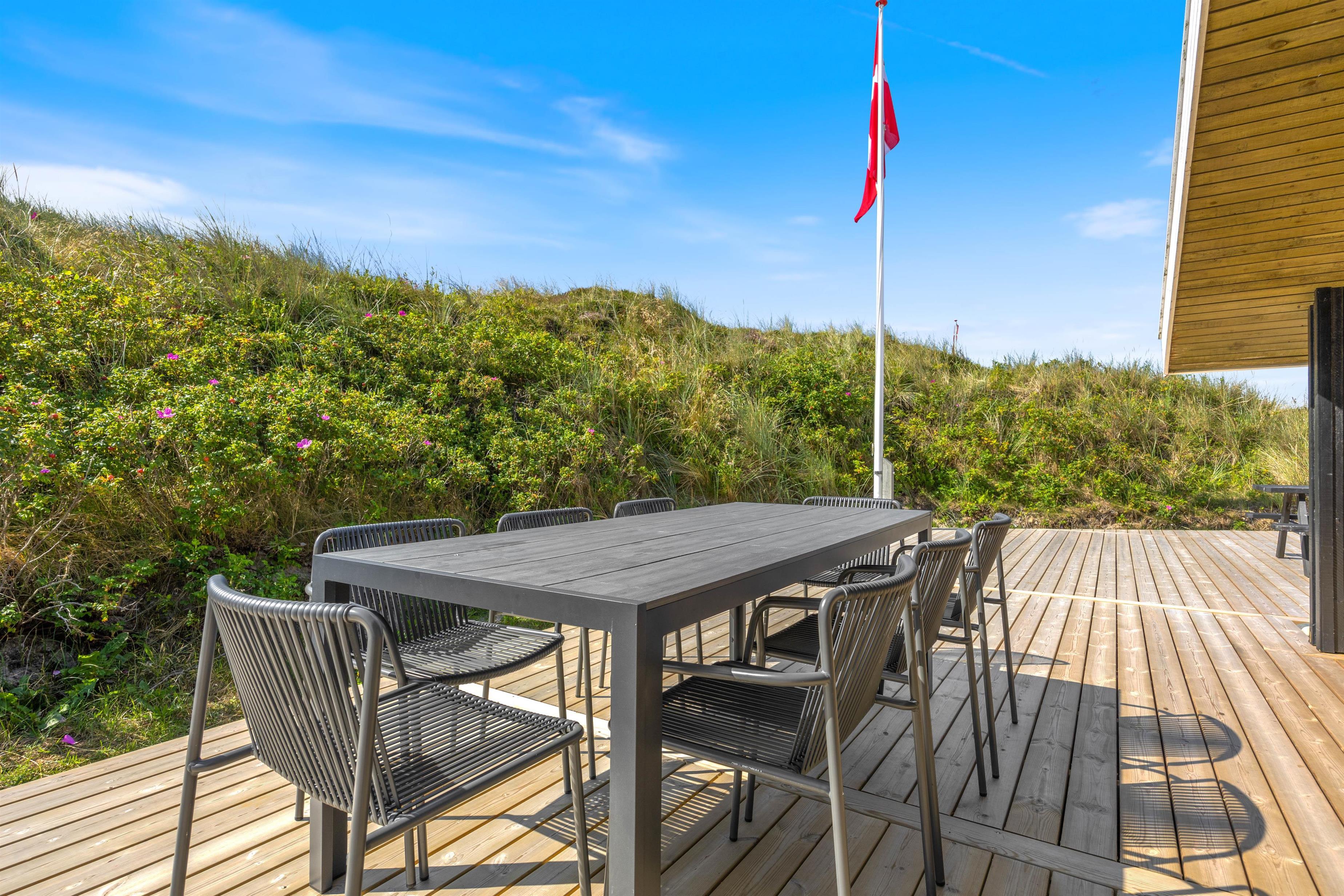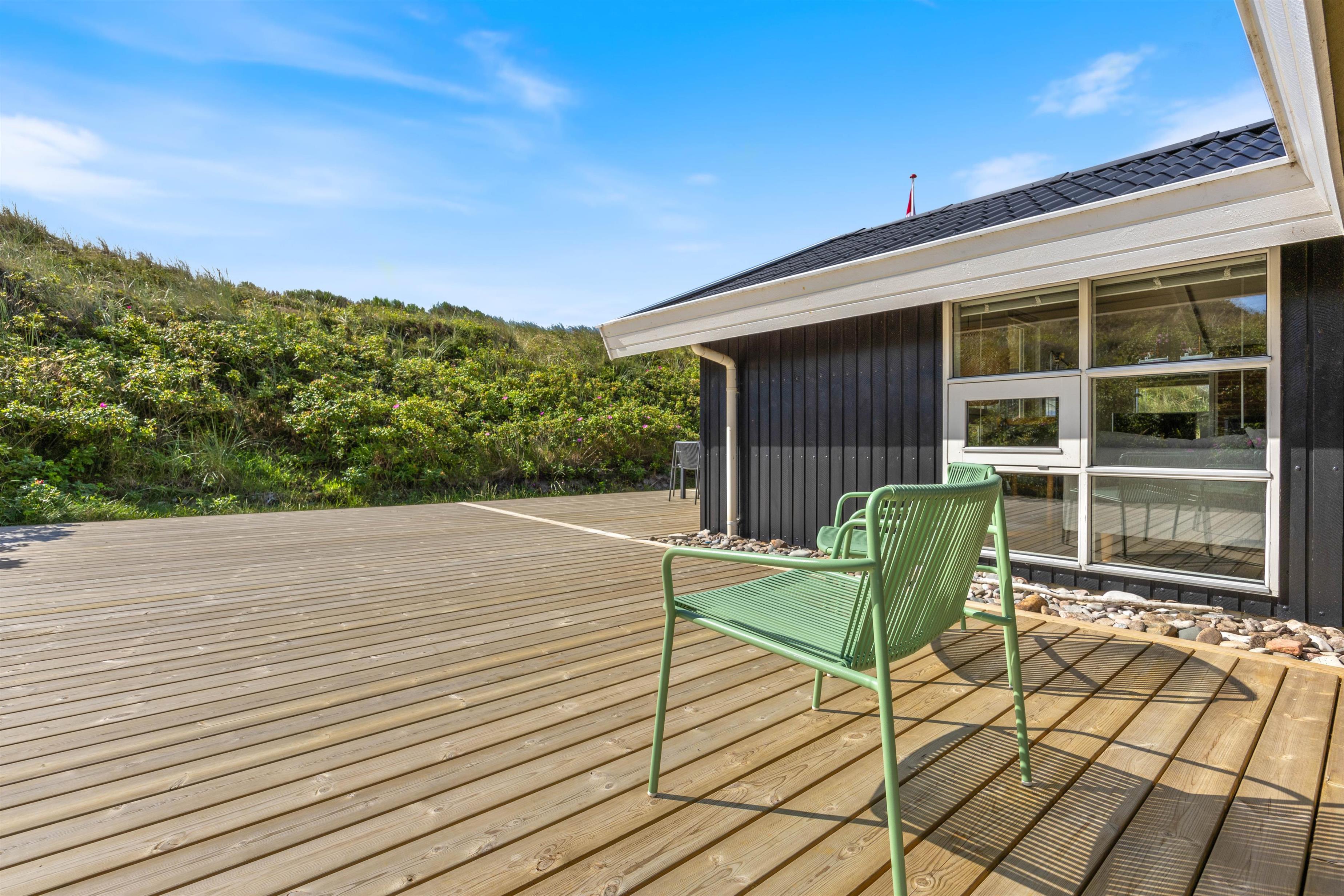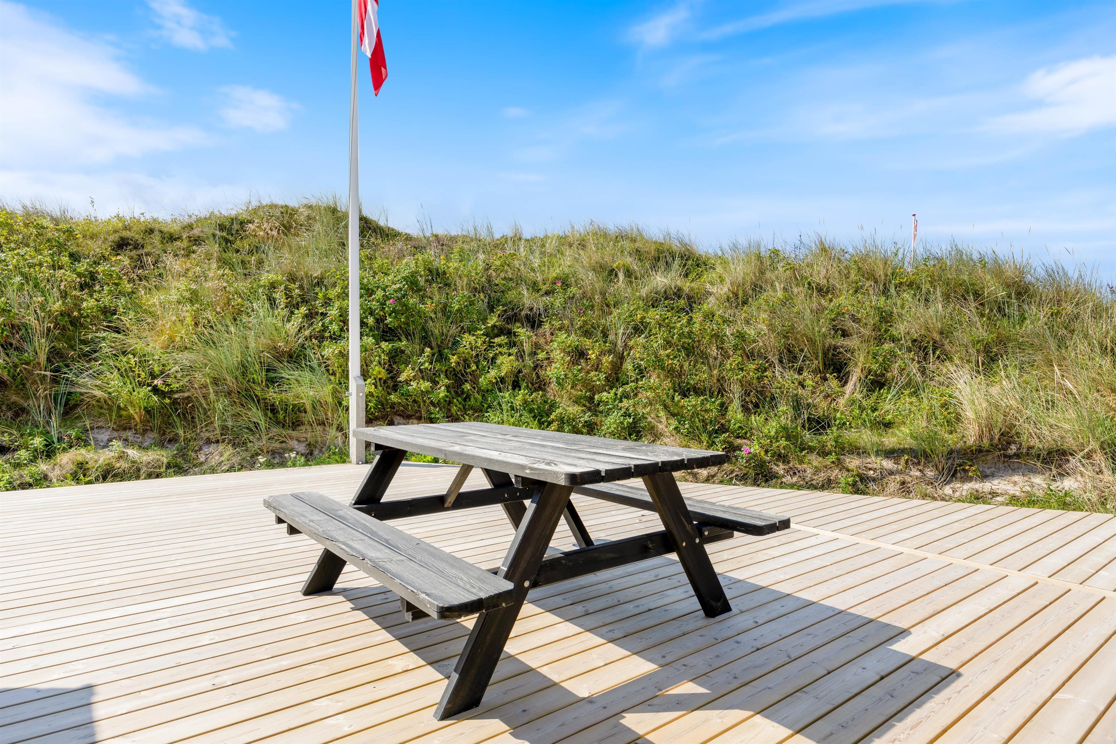 Med en beliggenhed kun 500 meter fra Vesterhavet har I mulighed for ubegrænset ophold på henholdsvis terrasse og ved stranden. Tag eventuelt madkurven med ned på stranden, og nyd frokosten der. Når I kommer hjem, kan I tænde for saunaen og spabadet og nyde, hvordan varmen giver fornyet energi til krop og sjæl. På terrassen kan I nyde solen i dagtimerne, og tænde op i grillen til aften, så I kan nyde et lækkert grillmåltid sammen, imens skyggerne bliver lange.