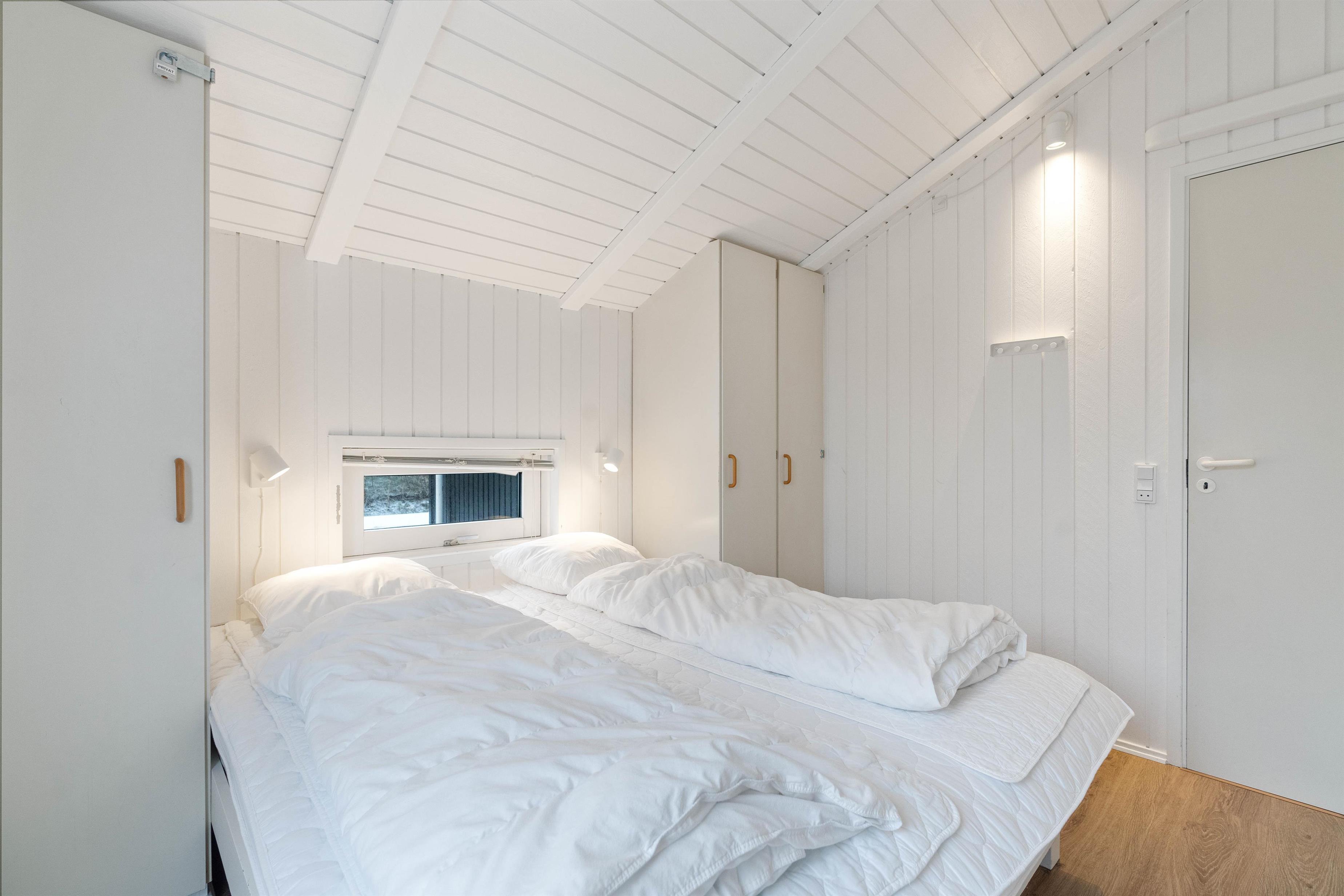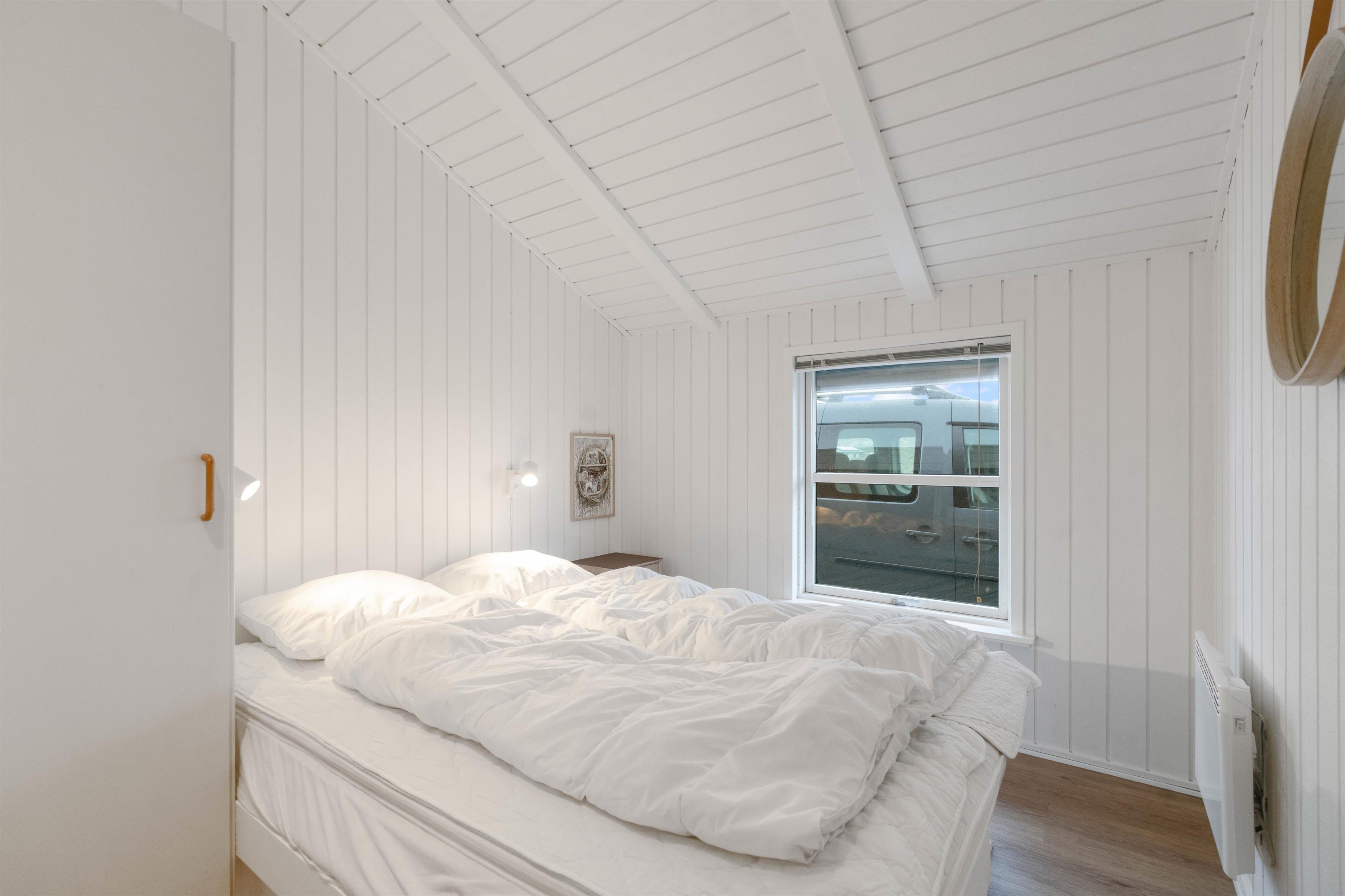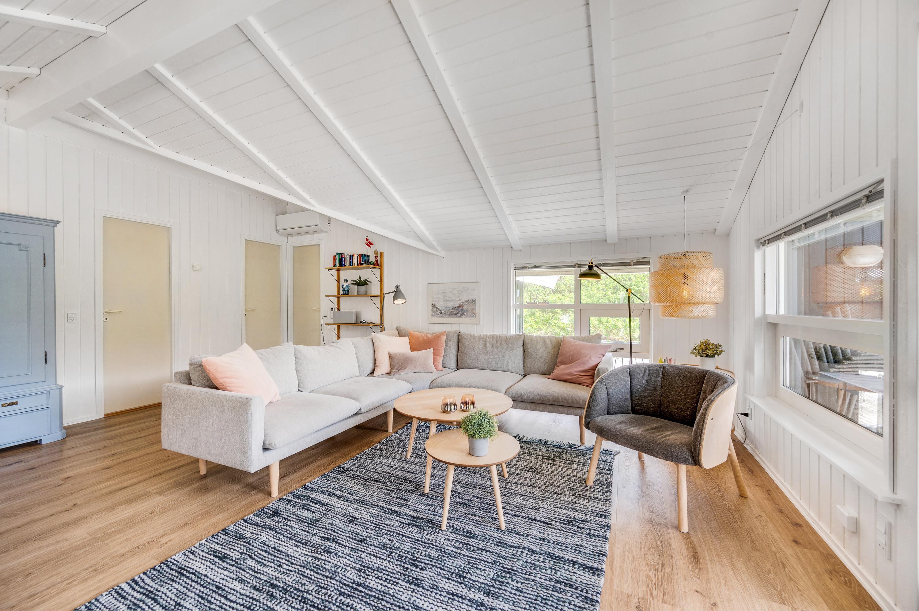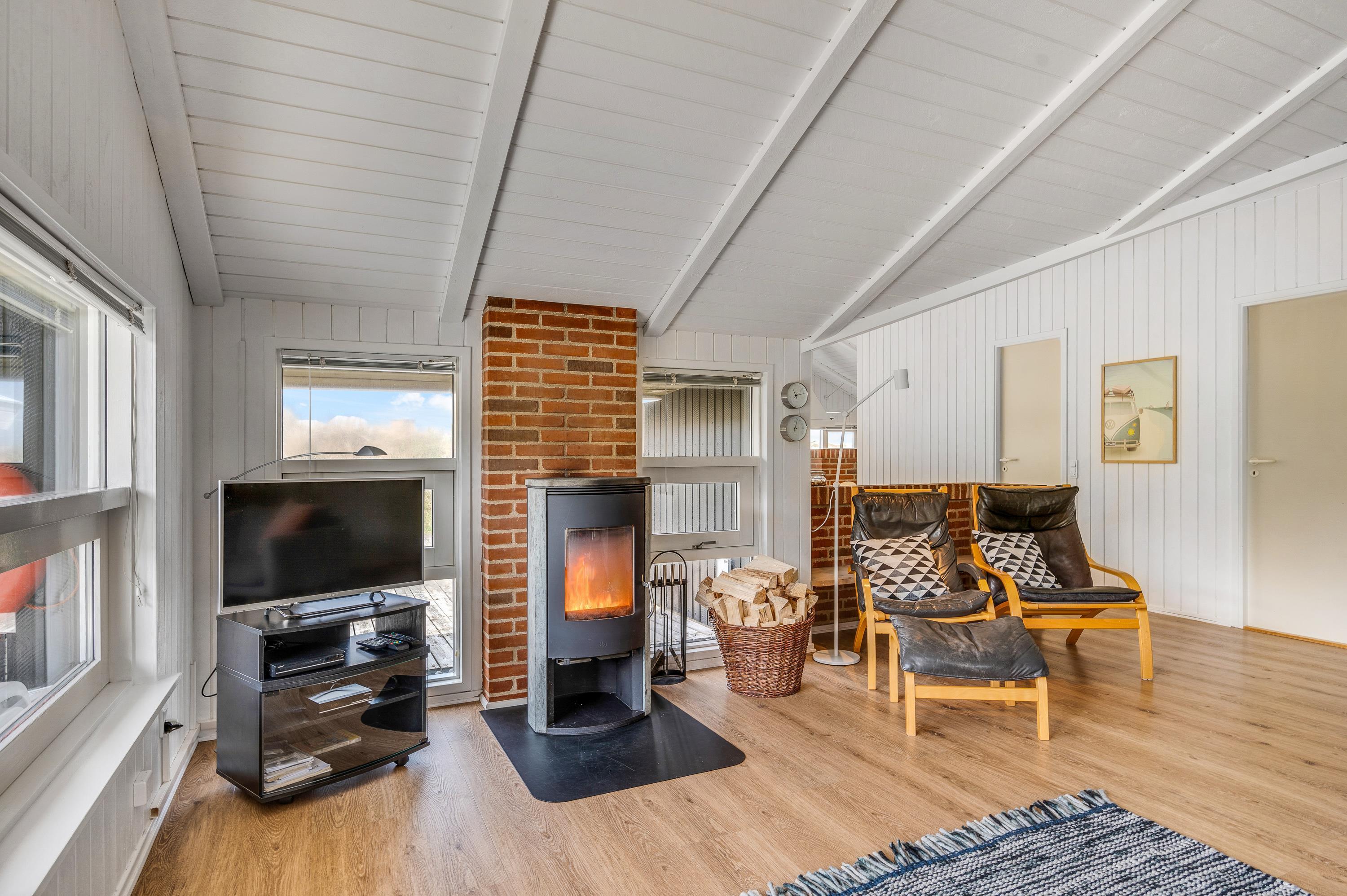 På Sandvej 1 mærker I den fine feriestemning straks, I træder ind i det hyggelige sommerhus. De lyse vægge og lofter i kombination med trægulvene og mursten skaber en lys og rummelig atmosfære. I det lyse køkken/alrum kan I spise sammen, eller spille et brætspil imens det næste måltid forberedes i det åbne køkken. I stuen kan I hygge jer i sofaen foran ilden i brændeovnen. Herfra kan I også følge med i, hvad der sker på terrassen. Sommerhuset har et dejligt stort og lyst badeværelse med spabad og sauna samt vaskemaskine. Der er en energibesparende varmepumpe, som hurtigt og effektivt sørger for et behageligt indeklima og en god temperatur.