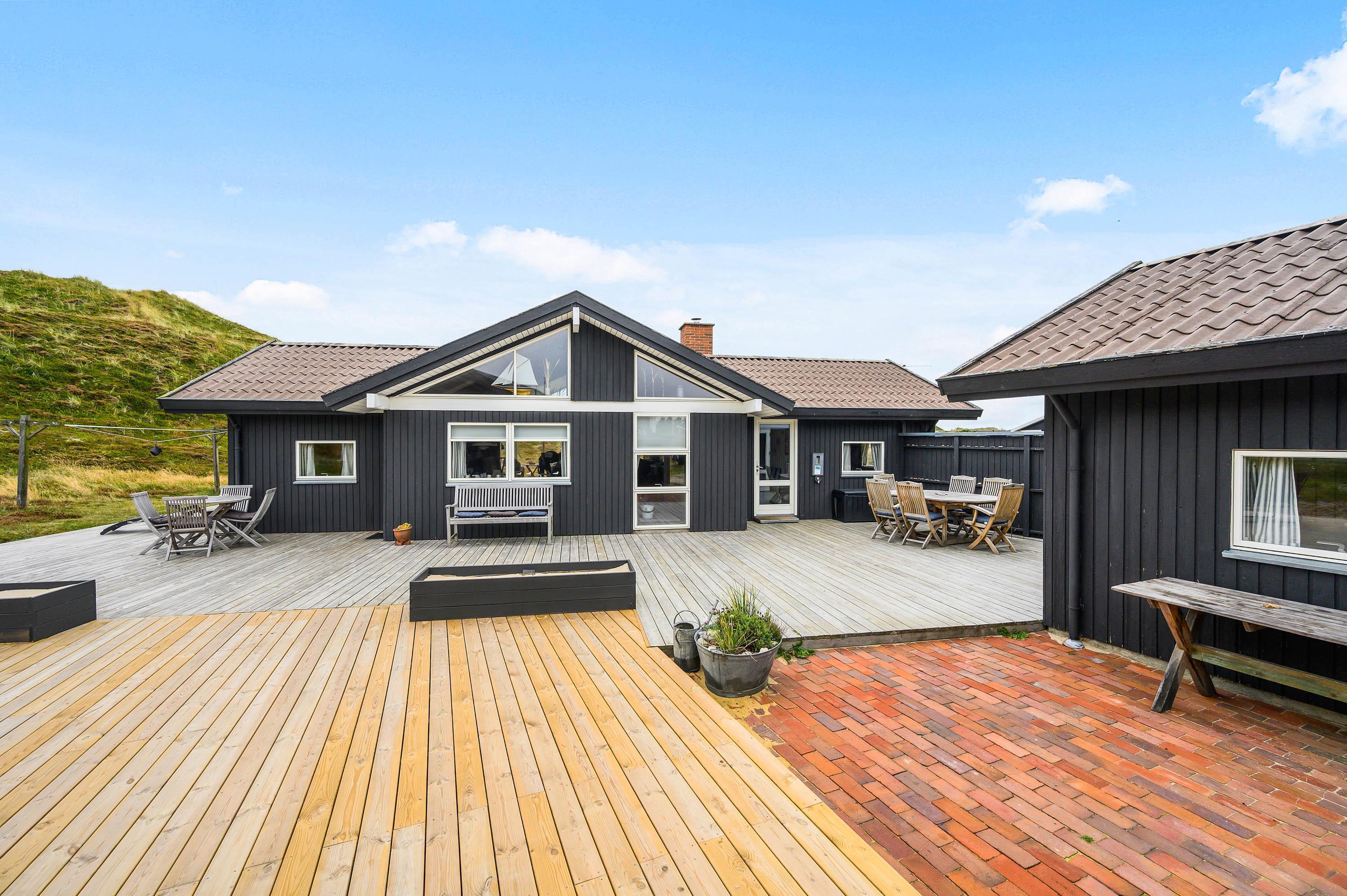 Omkring feriehuset har du flere gode terrasser, og på den måde har du rig mulighed for at sidde ude og nyde ferien.