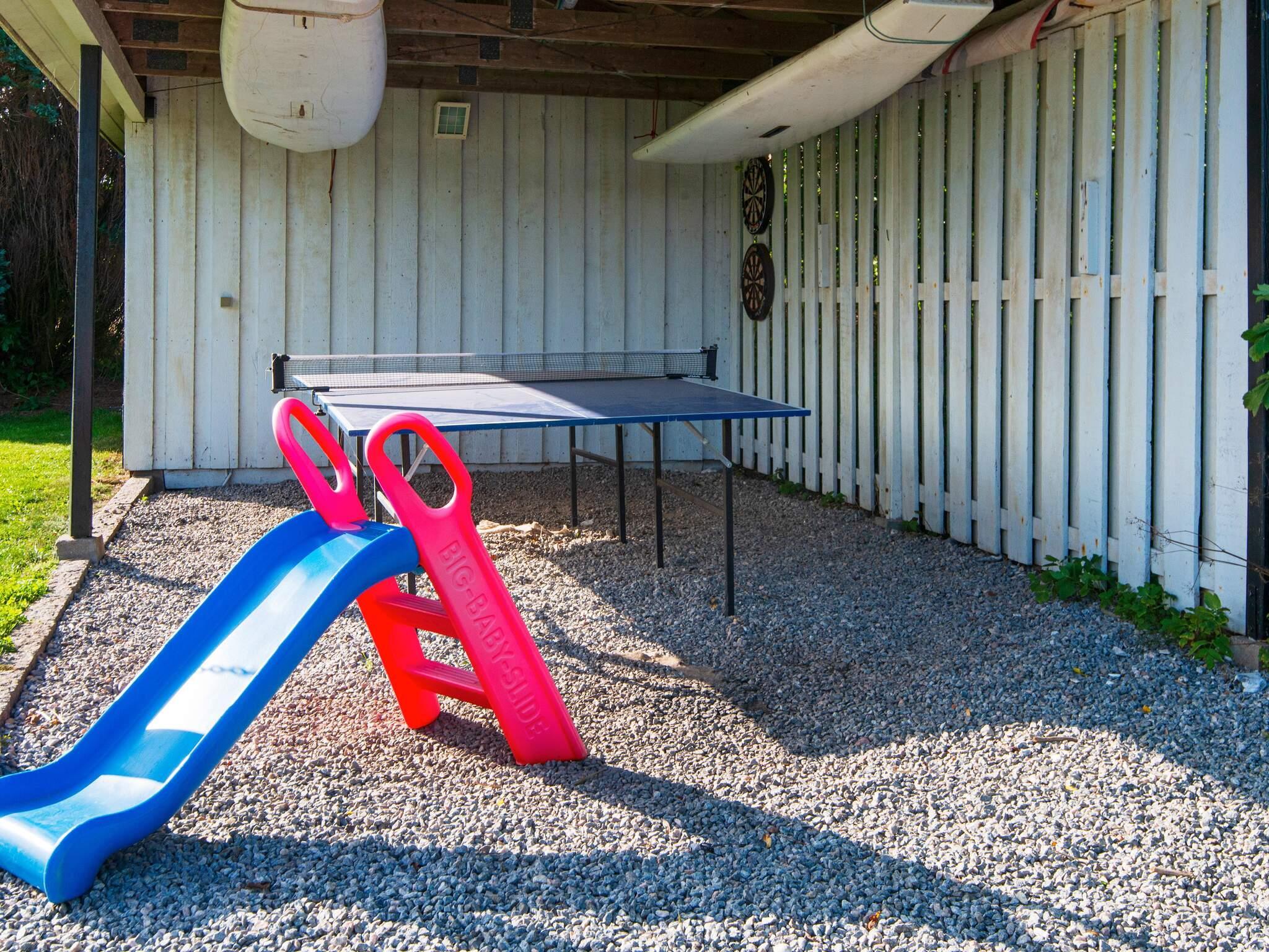 På den åbne grund kan børnene muntre sig med både sandkasse og gynge. Der er terrasser både foran og bagved huset, der indbyder til sommeraktiviteter for hele familien. Her kan I sidde og nyde duften af grillkullene, mens udsigten over havets bølgegang nydes.