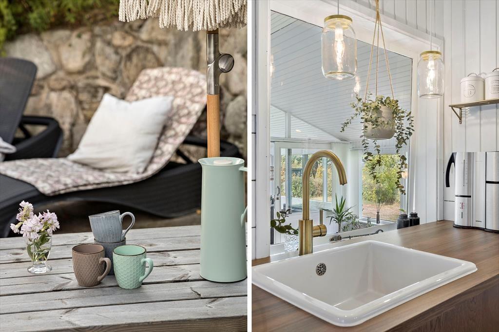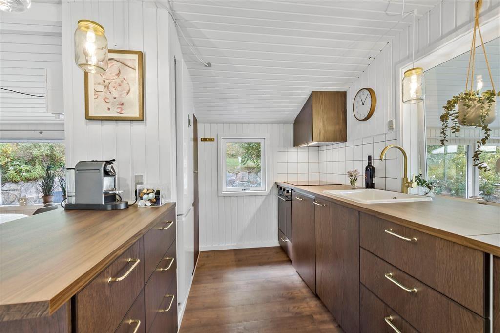 Velkommen indenfor til et sommerhus, hvor hygge og ferieglæde mødes på den mest naturlige måde. Huset er moderne indrettet med sans for kreative detaljer, og allerede i den charmerende udestue kan du mærke, hvordan roen sænker sig. Her kan du nyde livet det meste af året – tænde radiatoren på de kølige dage eller åbne døren til huset og lade varmen fra brændeovnen eller varmepumpen brede sig. Fra køkkenet kan du samtidig holde øje med, hvad der foregår i udestuen, mens du tilbereder måltider.