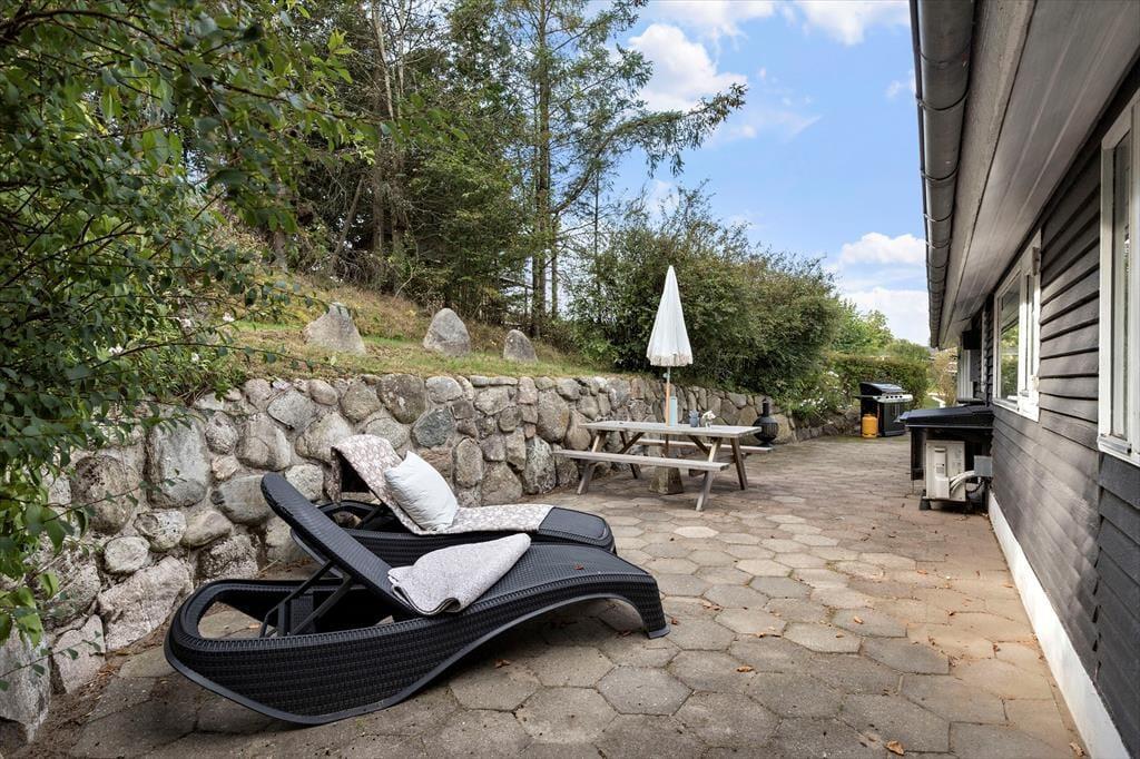 Grunden omkring sommerhuset er både charmerende og alsidig. Den er bakket i den ene side, hvor annekset ligger, og plan på den anden side, hvilket skaber gode muligheder for leg og afslapning. Med lidt held og på de rette tider af året kan du skimte havet i horisonten. Mellem huset og annekset ligger den dejligste solgård, hvor du kan nyde solen i læ og samvær med familie og venner i rolige og private omgivelser.