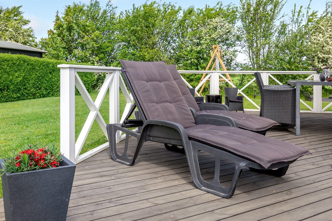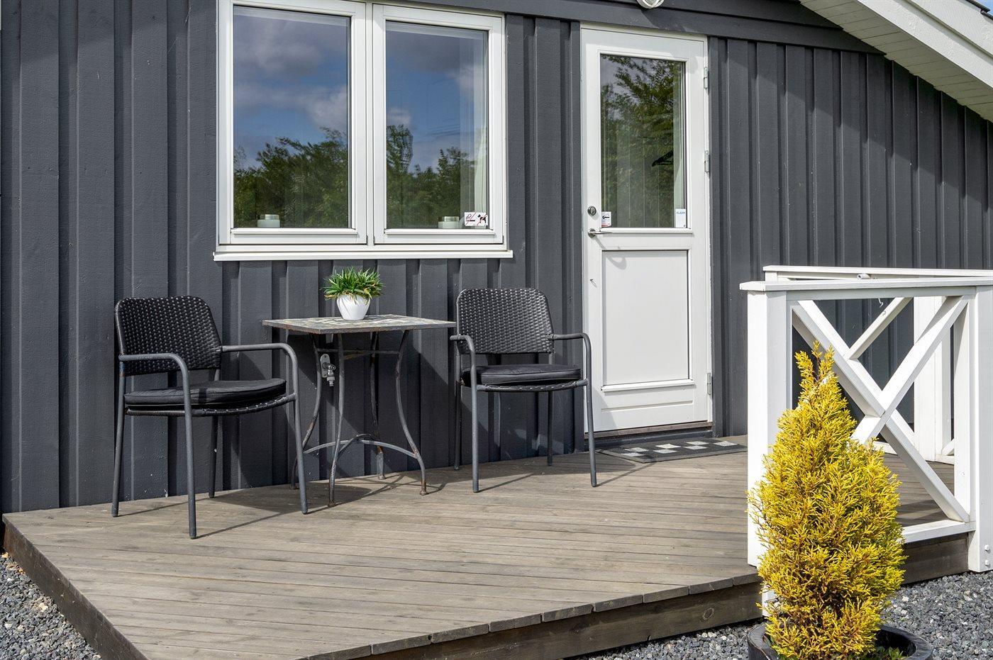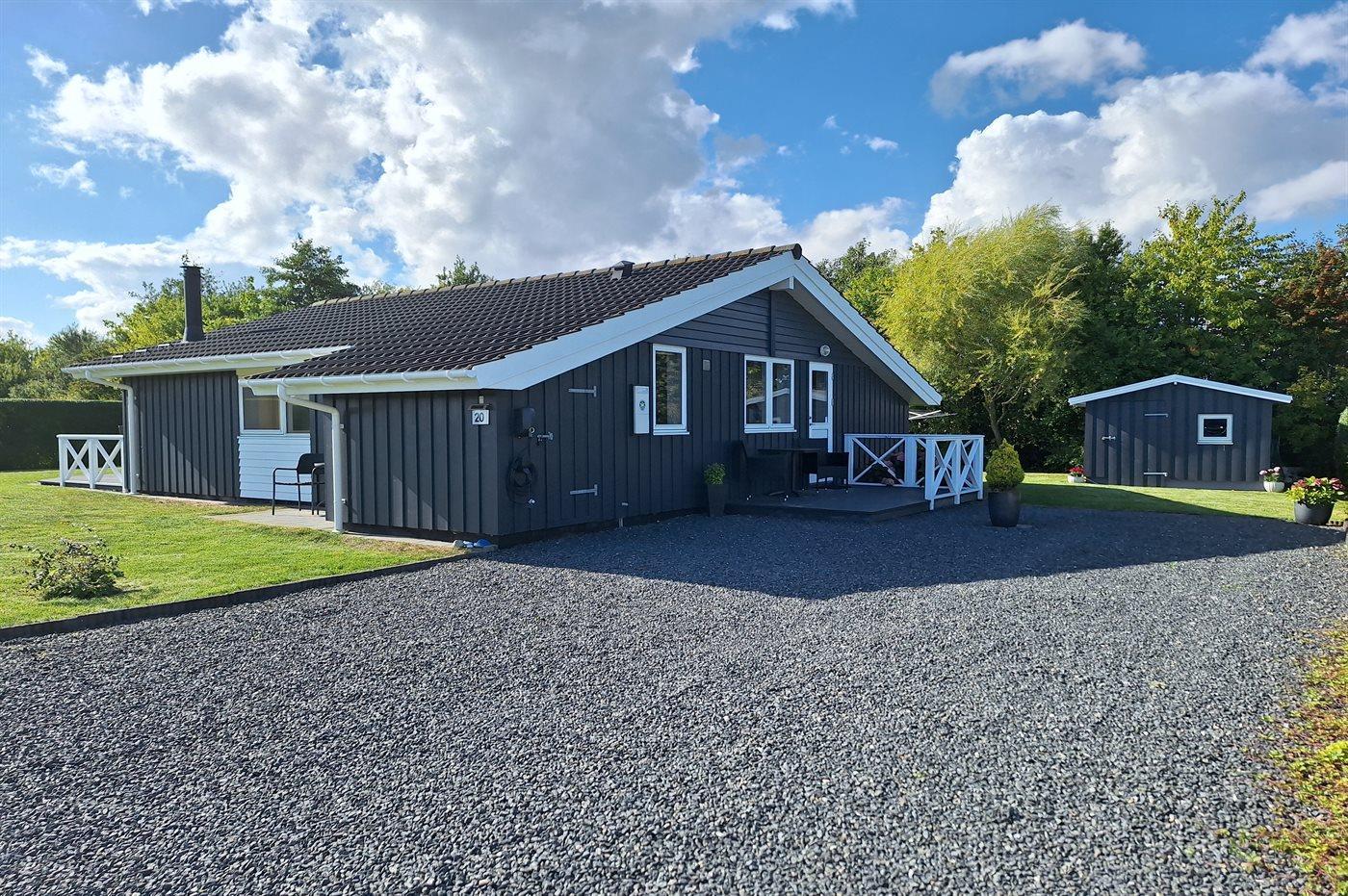 Ferieboligen er beliggende på en 1099 m² stor naturgrund. Der er 700 m til havet. Nærmeste forretning er beliggende i en afstand af 400 m. Til ferieboligen hører 62 m² terrasseareal. Desuden er der 6 m² overdækket terrasse. Gynge. Sandkasse. Grill til rådighed. Der er installeret stik til opladning af elbil. Parkering ved ferieboligen.