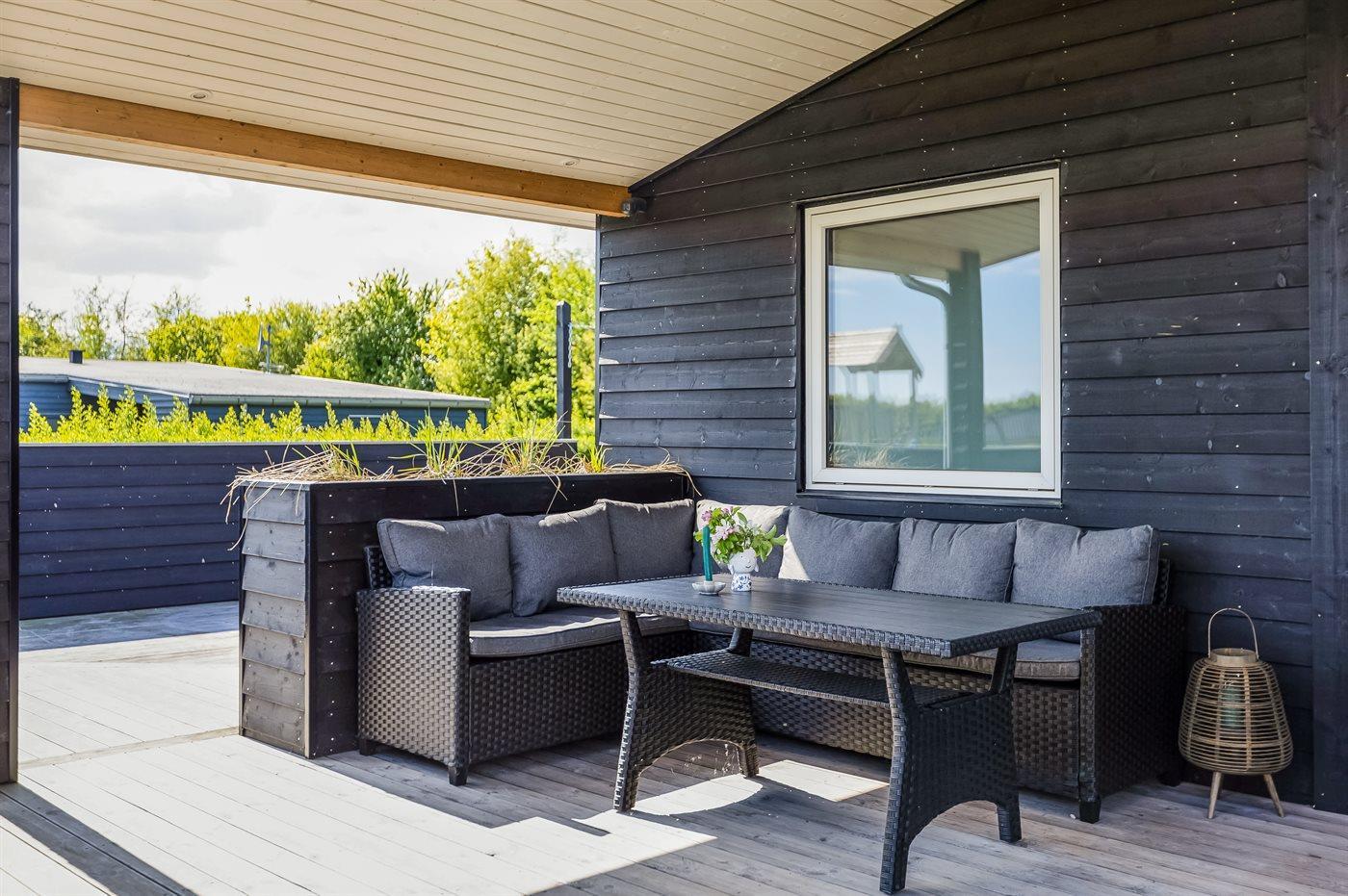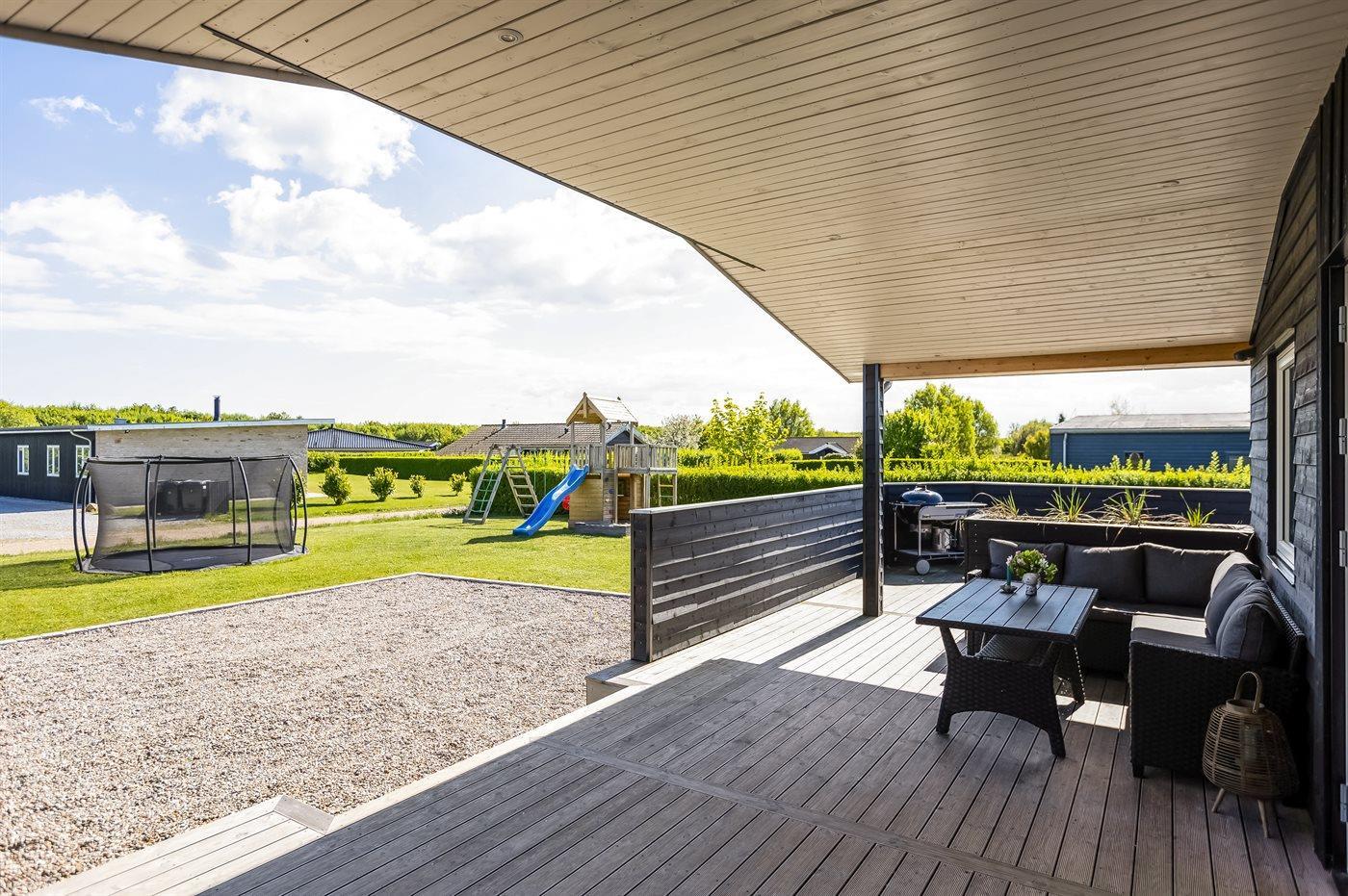 Ferieboligen er beliggende på en 1080 m² stor naturgrund. Der er 700 m til havet. Nærmeste forretning er beliggende i en afstand af 2000 m. Der er en golfbane i en afstand af 14000 m. Til ferieboligen hører åbent terrasseareal. Desuden er der overdækket terrasse. Gynge. Sandkasse. Trampolin. Legetårn. Grill til rådighed. Parkering ved ferieboligen.
