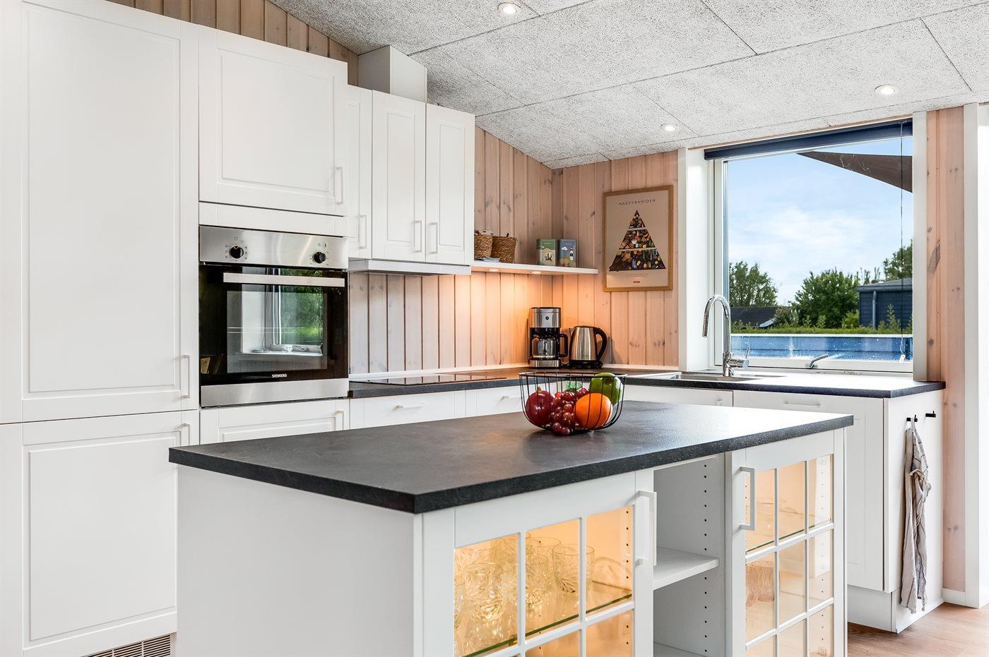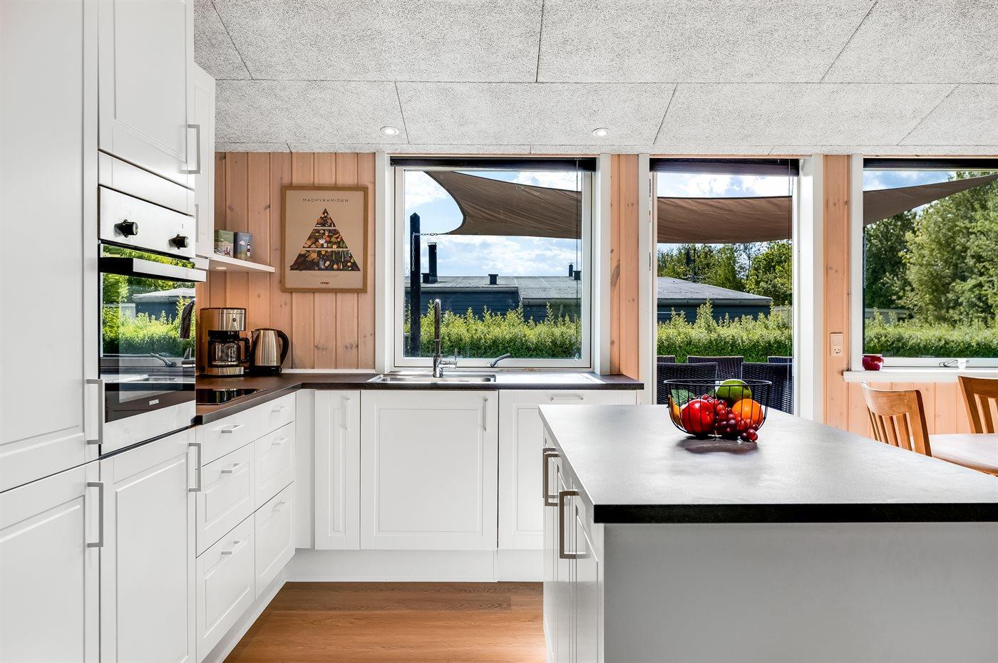 Køkkenet er udstyret med 1 køleskab. Der er 4 induktionskogeplader, varmluftovn, mikrobølgeovn samt opvaskemaskine.