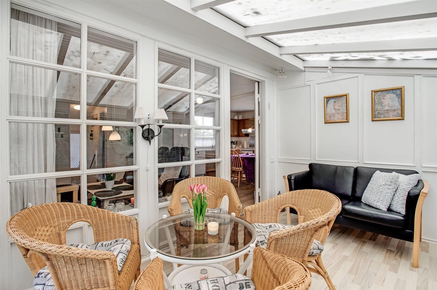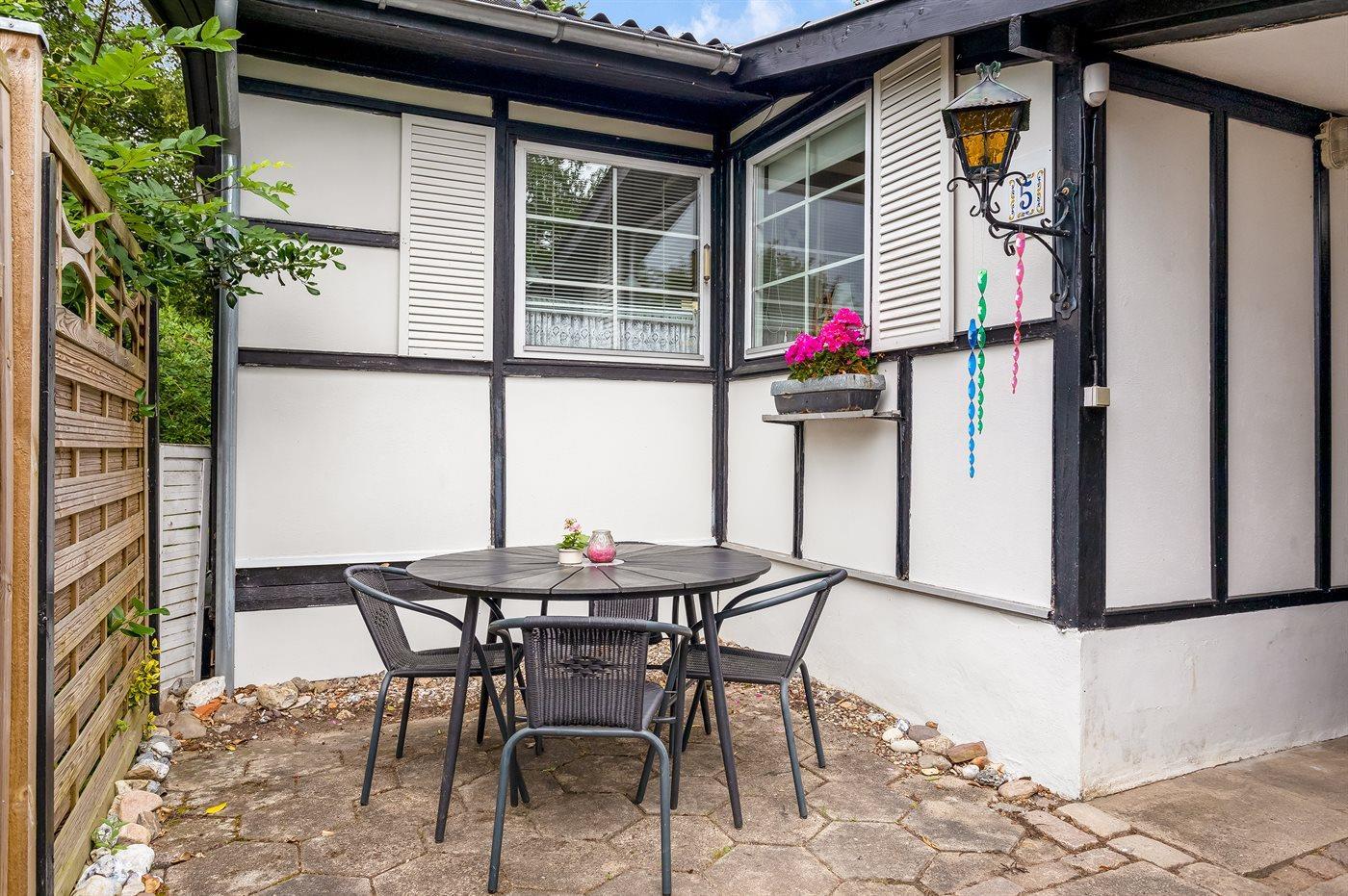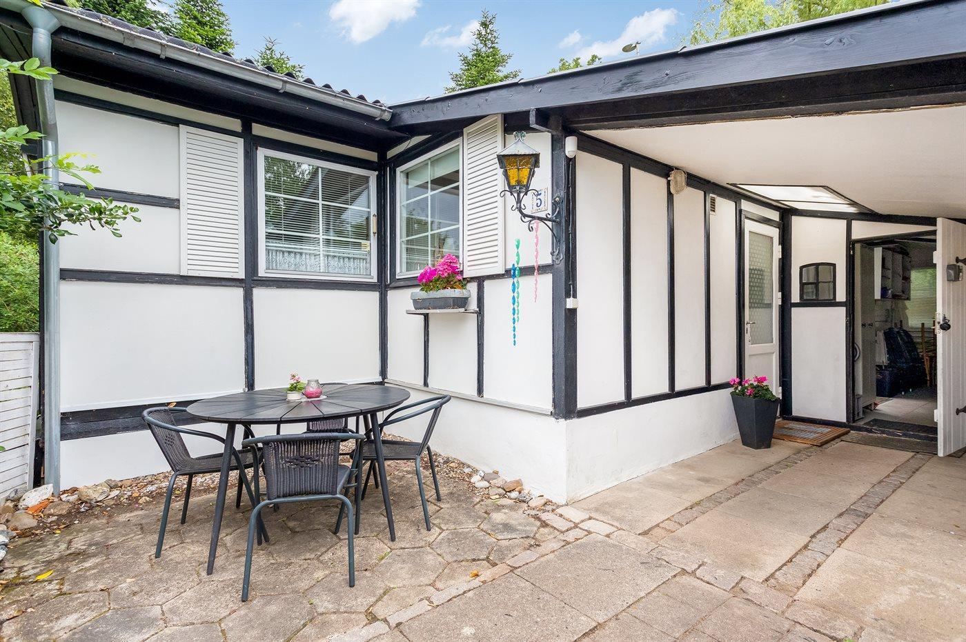 Hyggeligt ældre sommerhus med brændeovn og terrasse kun 300 m fra havet i Skovmose.