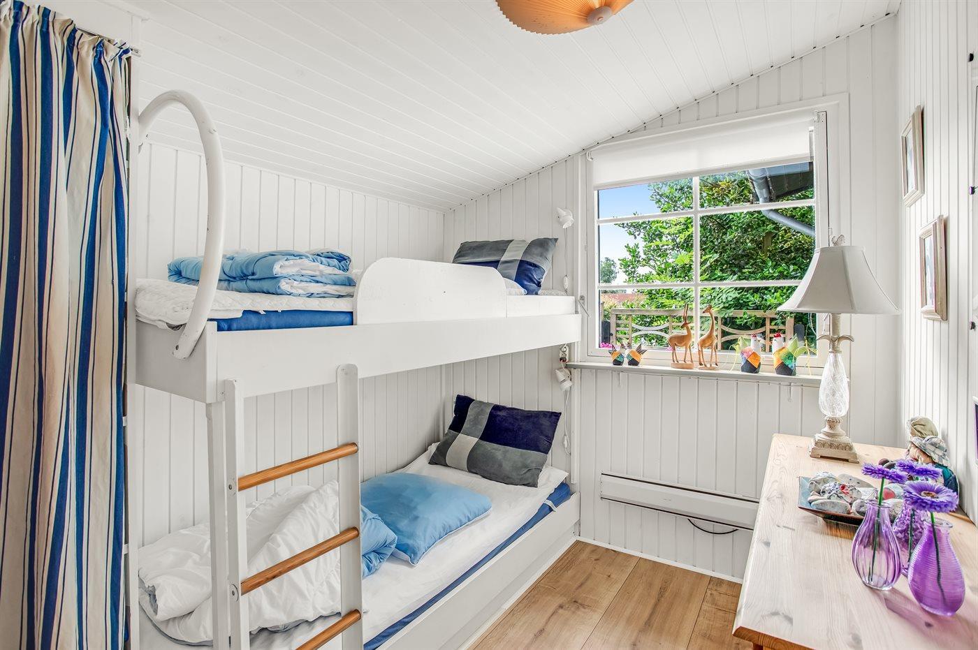 Der er i alt 2 soveværelser. Sovepladserne fordeler sig på: 2 sovepladser i dobbeltseng. 2 sovepladser i køjeseng.