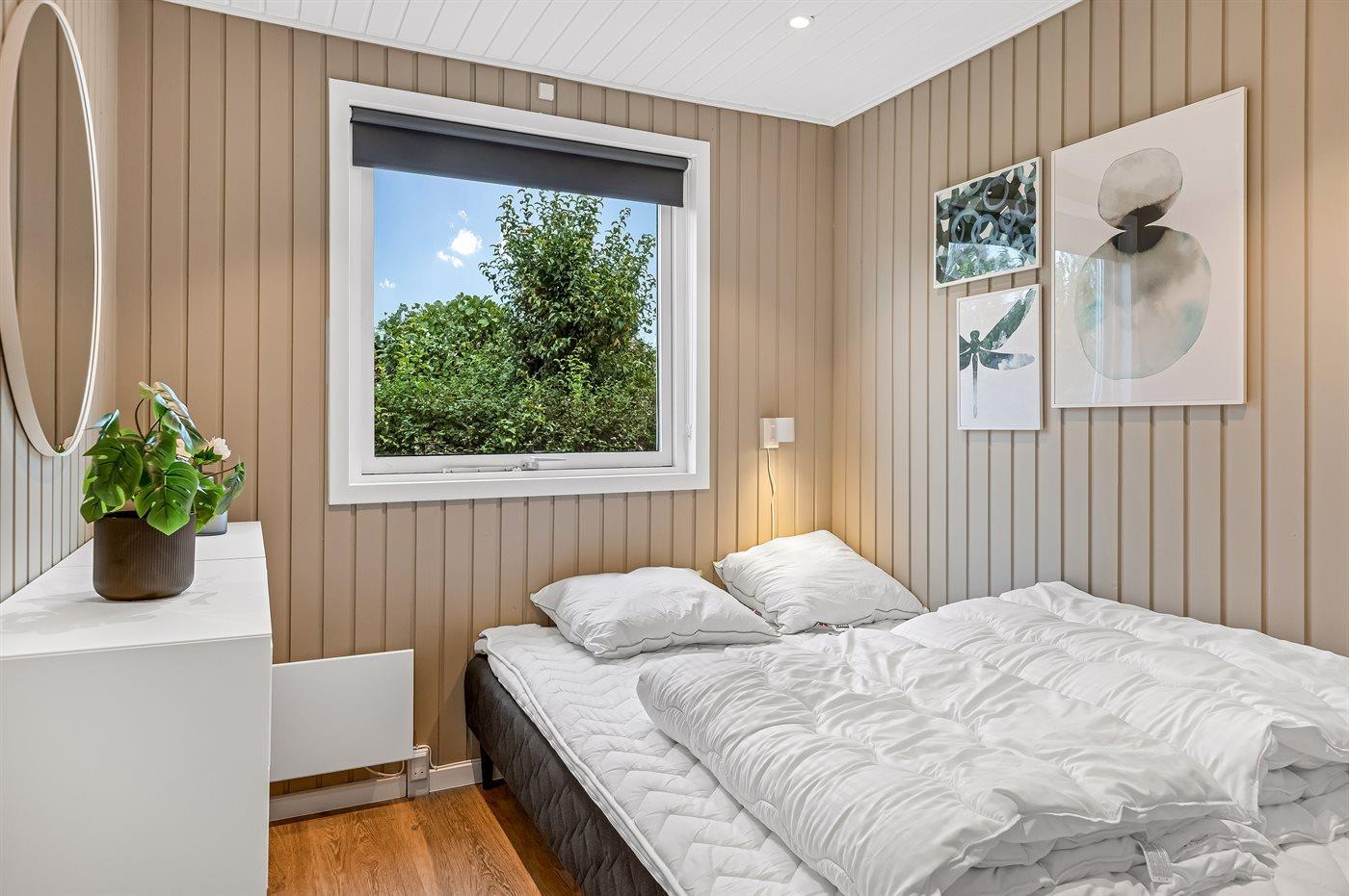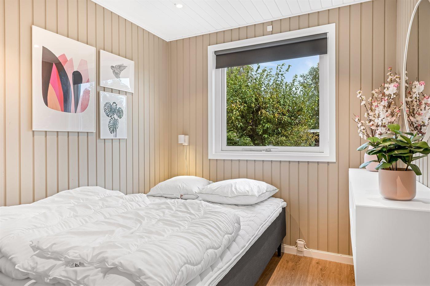Der er i alt 4 soveværelser. Sovepladserne fordeler sig på: 4 sovepladser i dobbeltsenge. 2 sovepladser i enkeltsenge. 2 sovepladser i køjeseng.